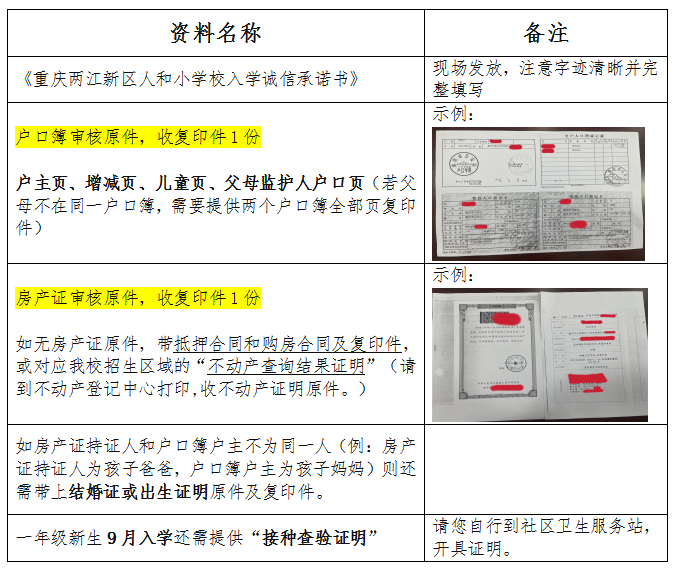(2)请家长陪同孩子带上户口簿、房产证等证明材料的原件及复印件。