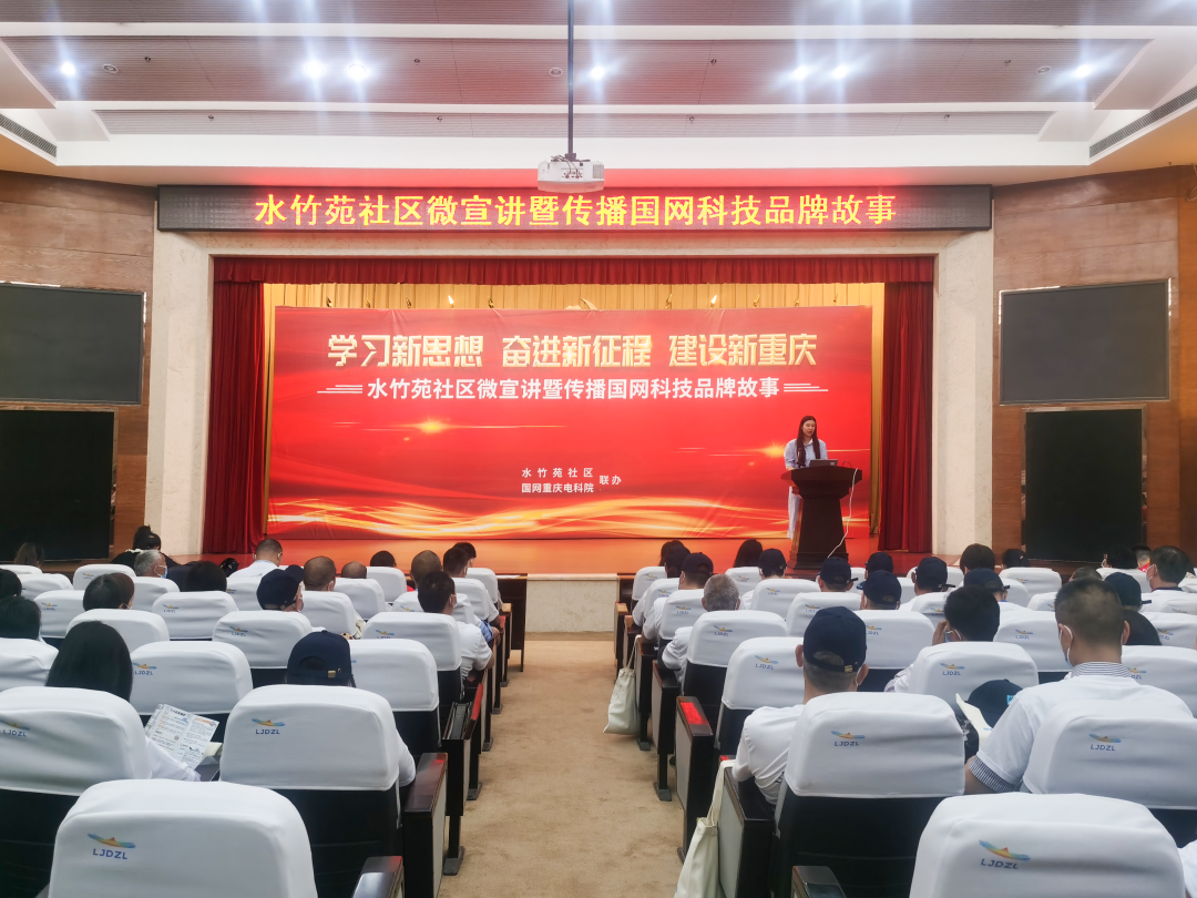 为深入贯彻落实党的二十大精神,近日,国网重庆市电力公司电力科学研究院联合重庆两江新区大竹林街道水竹苑社区开展“宣讲党的二十大精神 传播国网科技品牌故事”主题活动,来自国网重庆电力“红岩联电”青年宣讲团的5名成员先后进行微宣讲,吸引大竹林街道辖区百余名党员现场聆听。