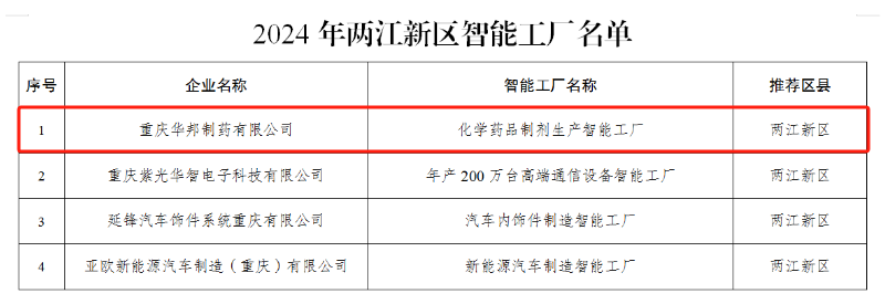重庆华邦制药有限公司是一家集化学药物研发、生产、销售于一体的制药企业。华邦制药在全国医药领域率先建立了制药工厂智能化产线,覆盖了制药行业外用制剂、口服固体制剂、注射剂等典型剂型,实现了制药行业多种生产工艺剂型的全流程数字化管理。