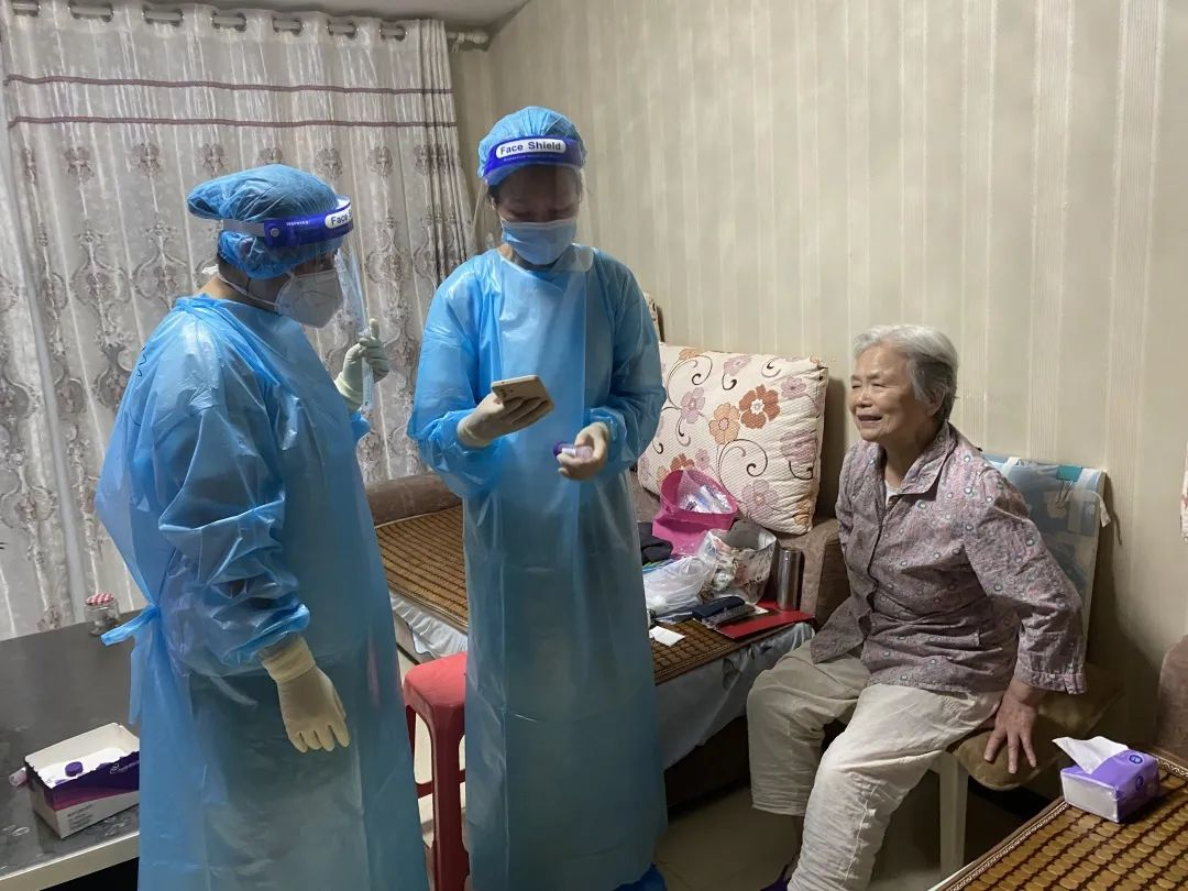 下午6点,汪家桥社区组织志愿服务队,为行动不便的老人和残疾人士等提供上门核酸服务,张霞再次成为上门服务队伍的一员。