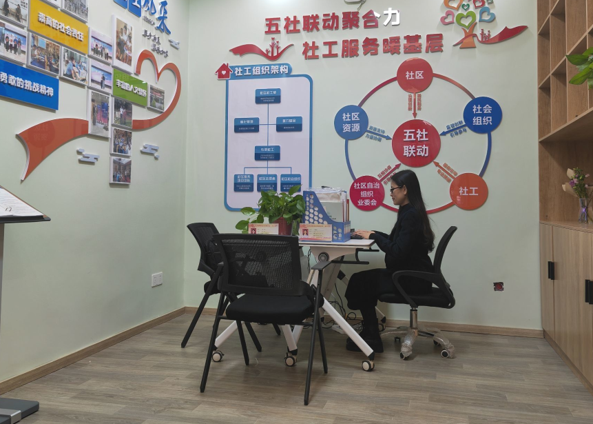 同时,社工室还特别重视社区工作人员心理健康问题。社工室通过关心关爱、心理学培训、心理健康疏导等多种方式做好工作人员的心理健康工作。与此同时,在处置各类繁杂工作中,使用专业的心理知识也能帮助社区工作者更好地化解居民矛盾。