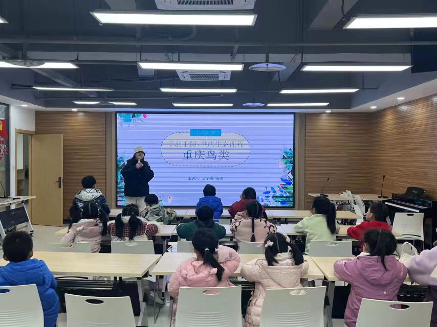 此次活动通过图片辨鸟、叫声识鸟、视频观鸟等方式,从鸟类概况讲起,在讲解不同鸟类的生活习性及形态的基础上,加深了孩子们对鸟类的理解。孩子们还首次了解到家乡重庆除了是“雾都”“桥都”外,更是“鹰飞之城”。这个全球唯一建立在猛禽迁徙通道之下、平行岭谷之上的超大型城市,每年都有数以十万计的猛禽从重庆上空迁飞而过,这不仅激发了孩子们对自然观察活动的兴趣,也让他们意识到保护鸟类的重要性。