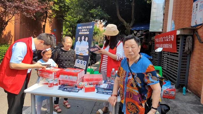 5月8日,银竹苑社区联合辖区社会养老机构开展“献礼母亲节”公益活动,5名社区社会志愿者为辖区70岁以上老年人赠送医疗健康服务。活动在银竹苑二区健身器材旁进行,吸引了100余名70岁以上老年居民前来参加活动。