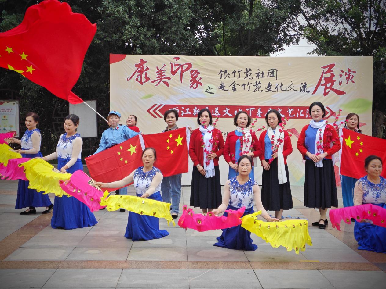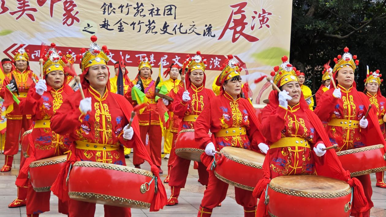 11月14日下午,银竹苑社区组织社区热爱舞蹈、歌唱、乐器、曲艺等文体活动的居民,到金竹苑社区本勋广场开展社区社团文化交流展演活动。活动现场聚集了200余名群众观看表演。