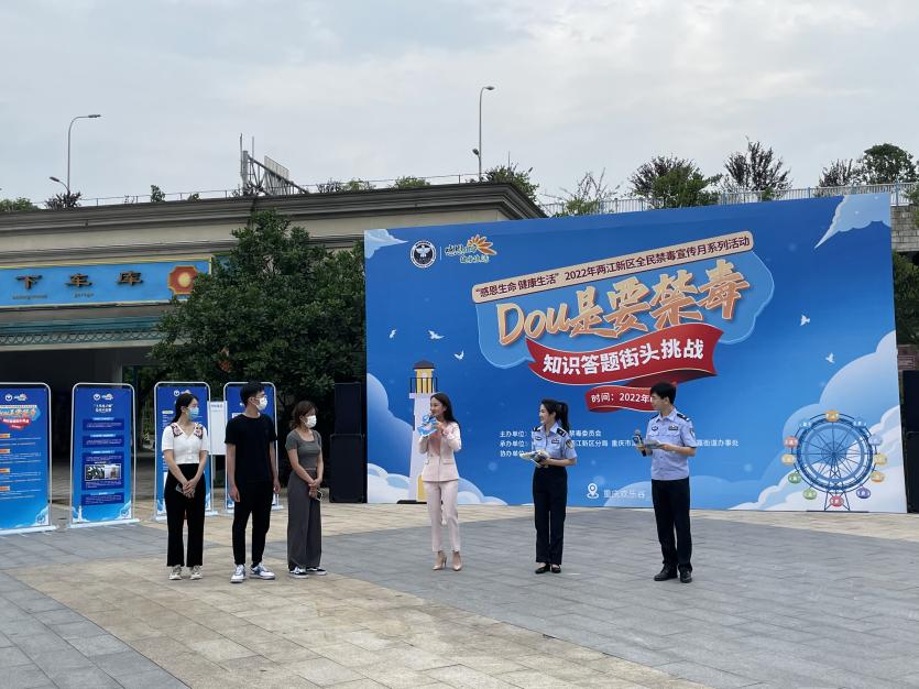 6月10日下午,礼嘉街道联合两江新区公安分局在礼嘉欢乐谷开展“Dou是要禁毒”知识答题街头挑战赛网络直播禁毒宣传活动,参与活动400余人次。