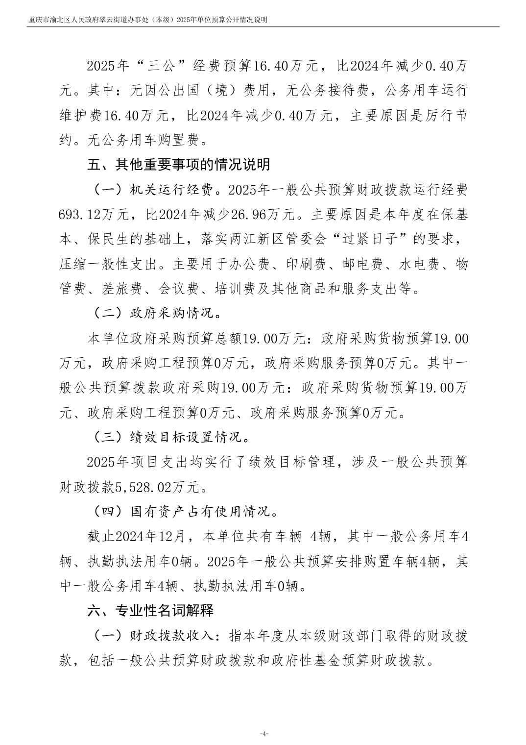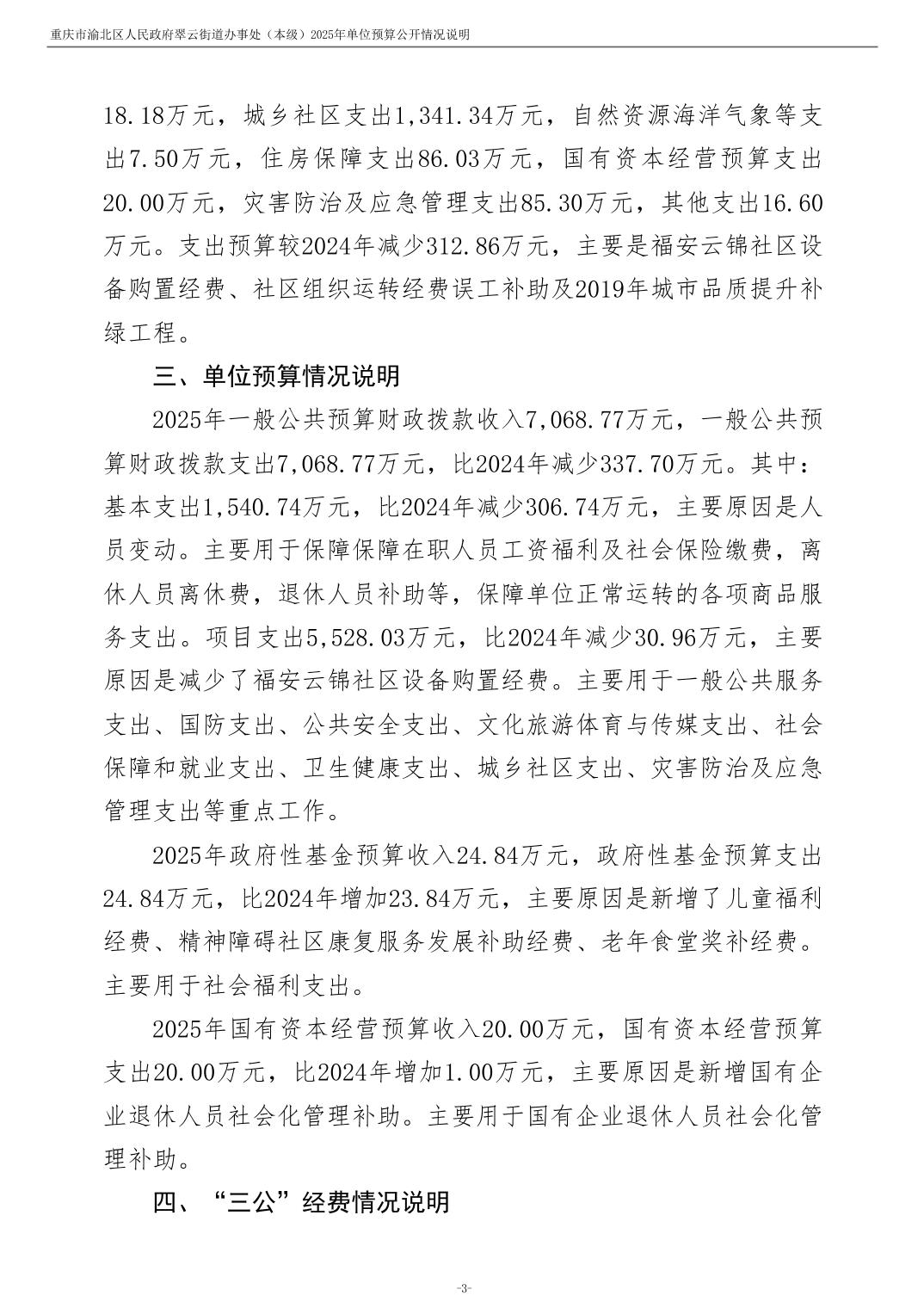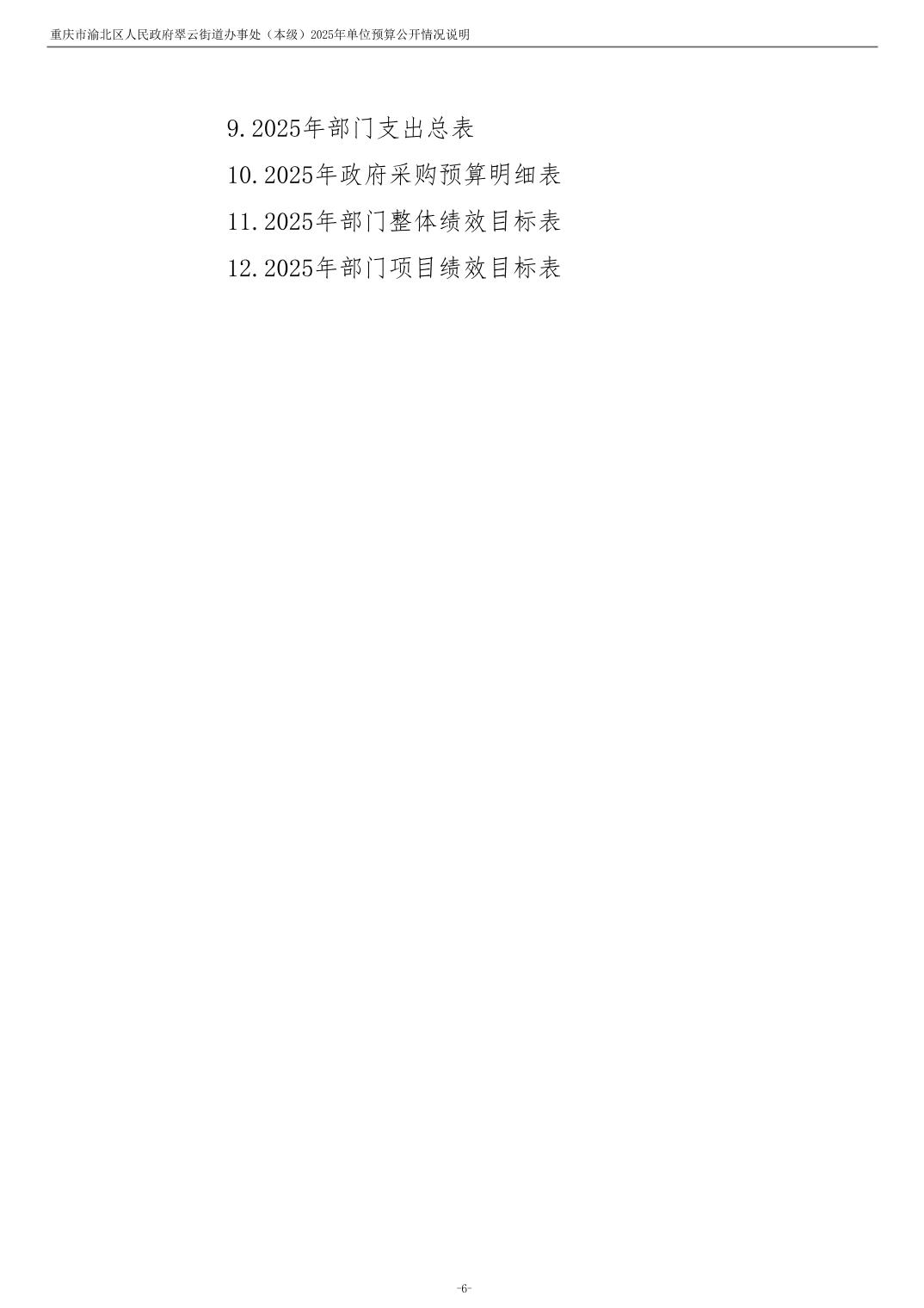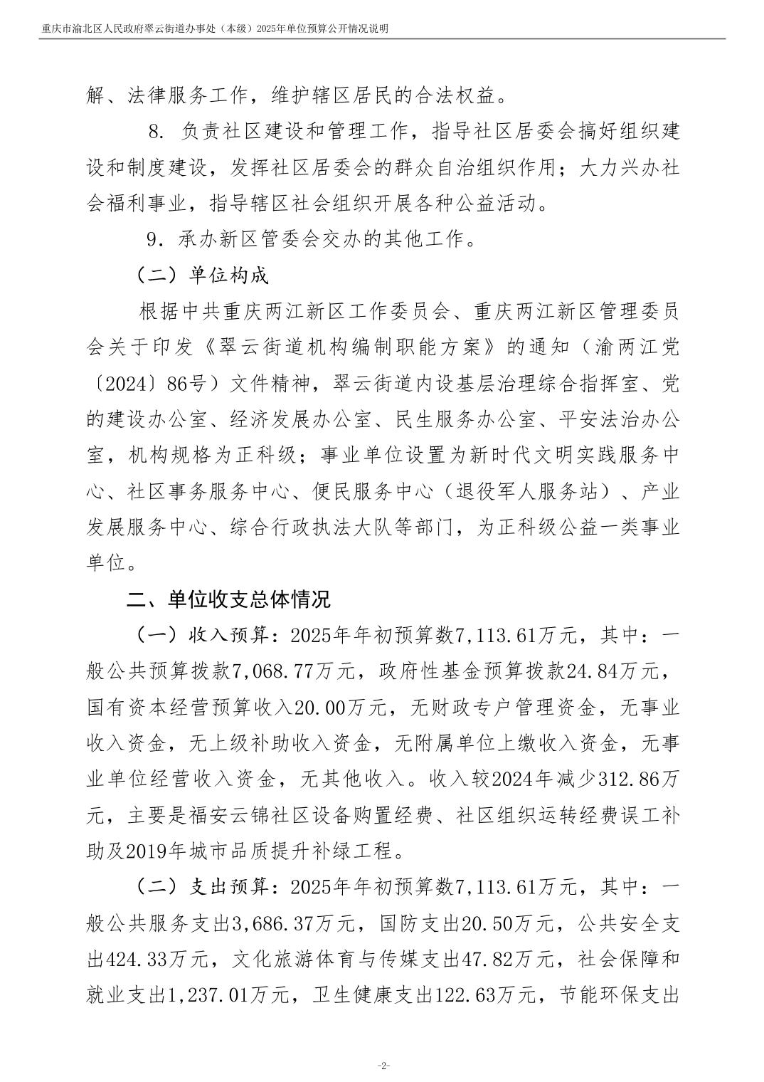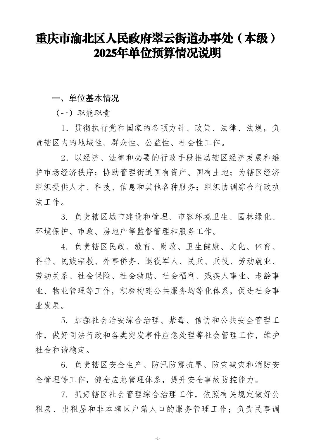 重庆市渝北区人民政府翠云街道办事处(本级)2025年单位预算情况说明