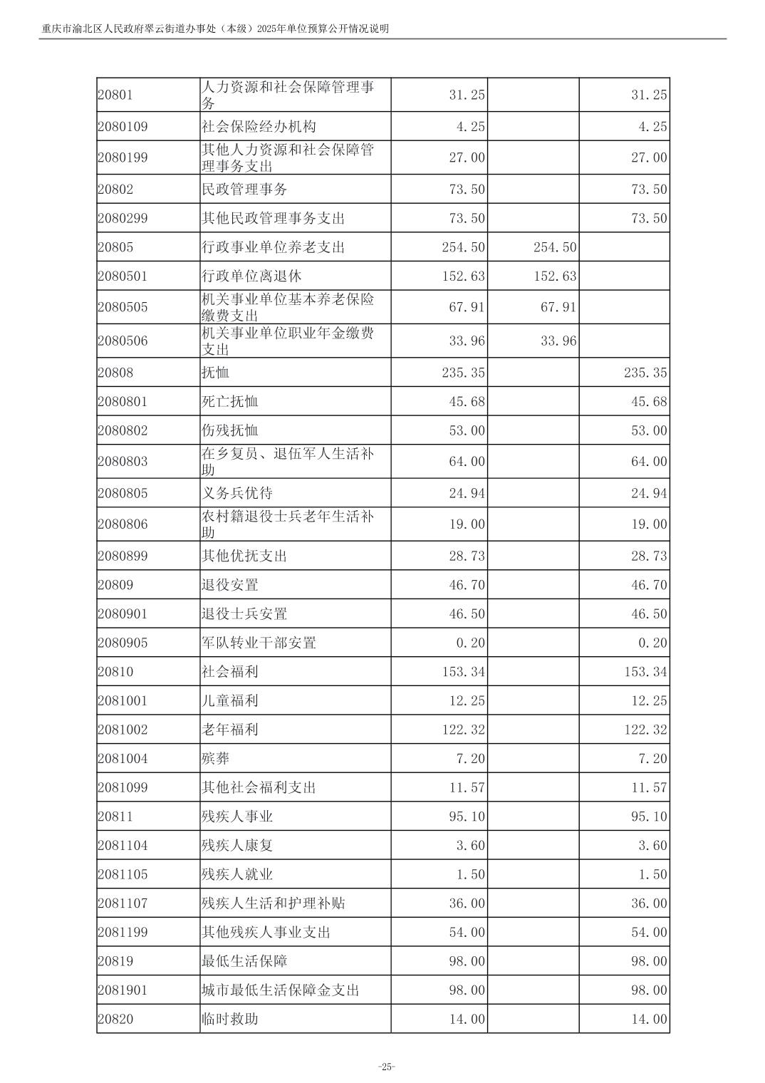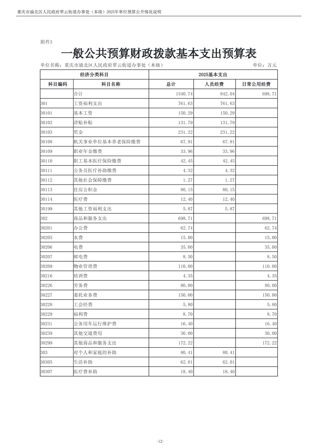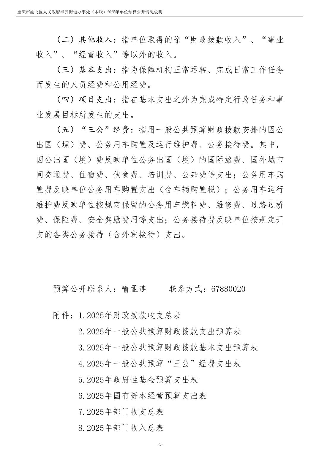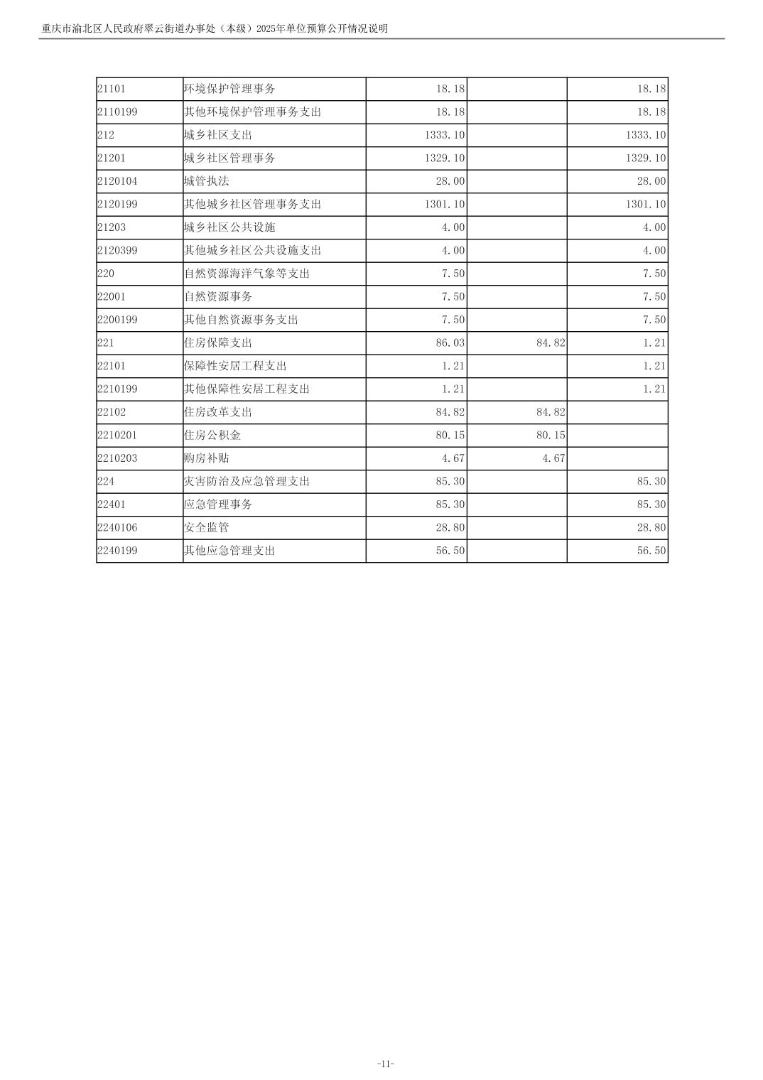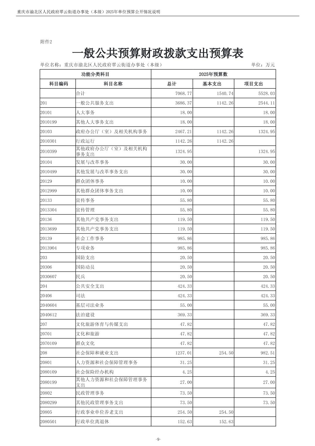 重庆市渝北区人民政府翠云街道办事处(本级)2025年单位预算情况说明