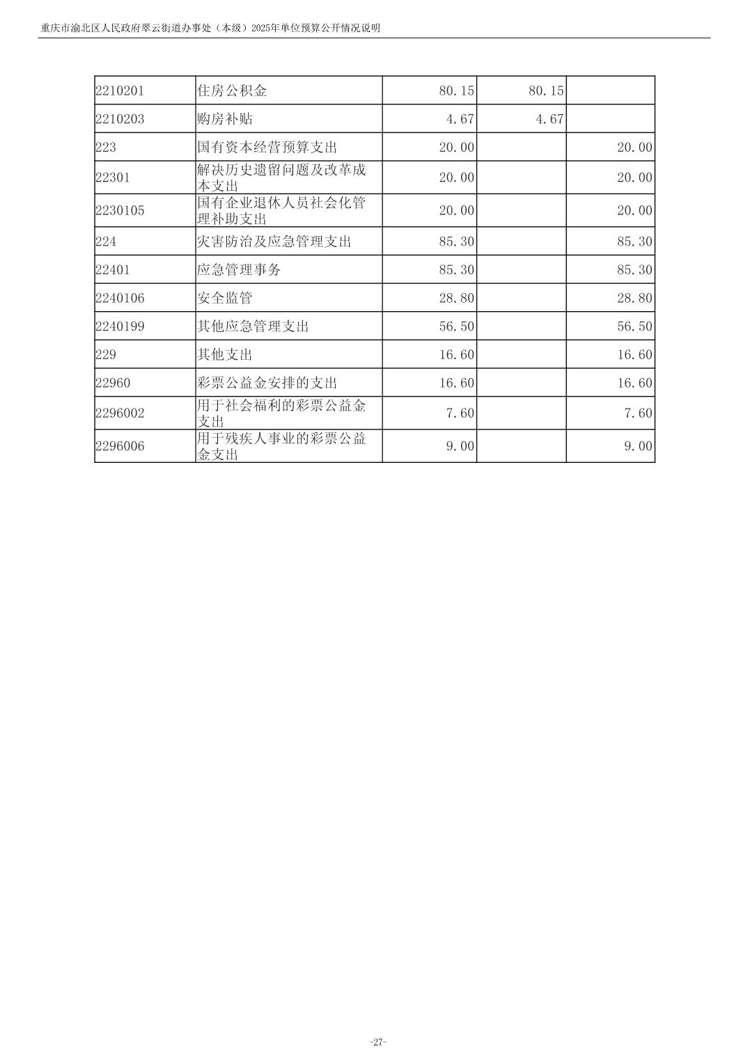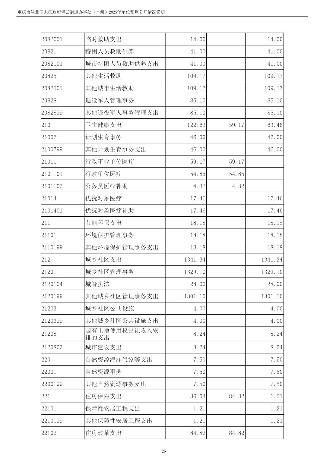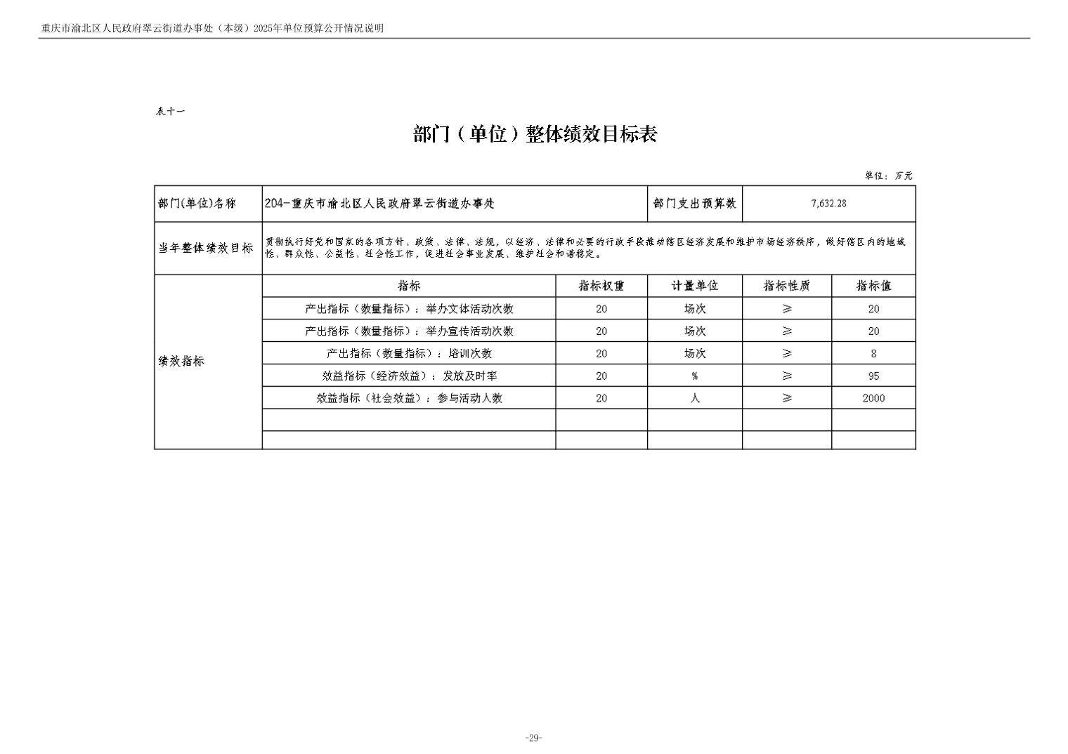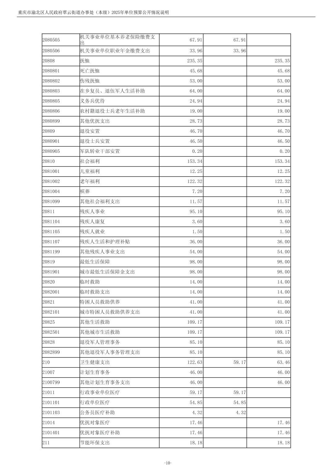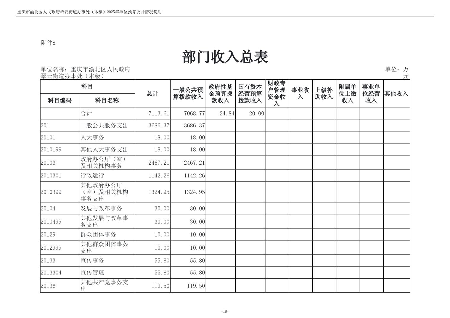 重庆市渝北区人民政府翠云街道办事处(本级)2025年单位预算情况说明
