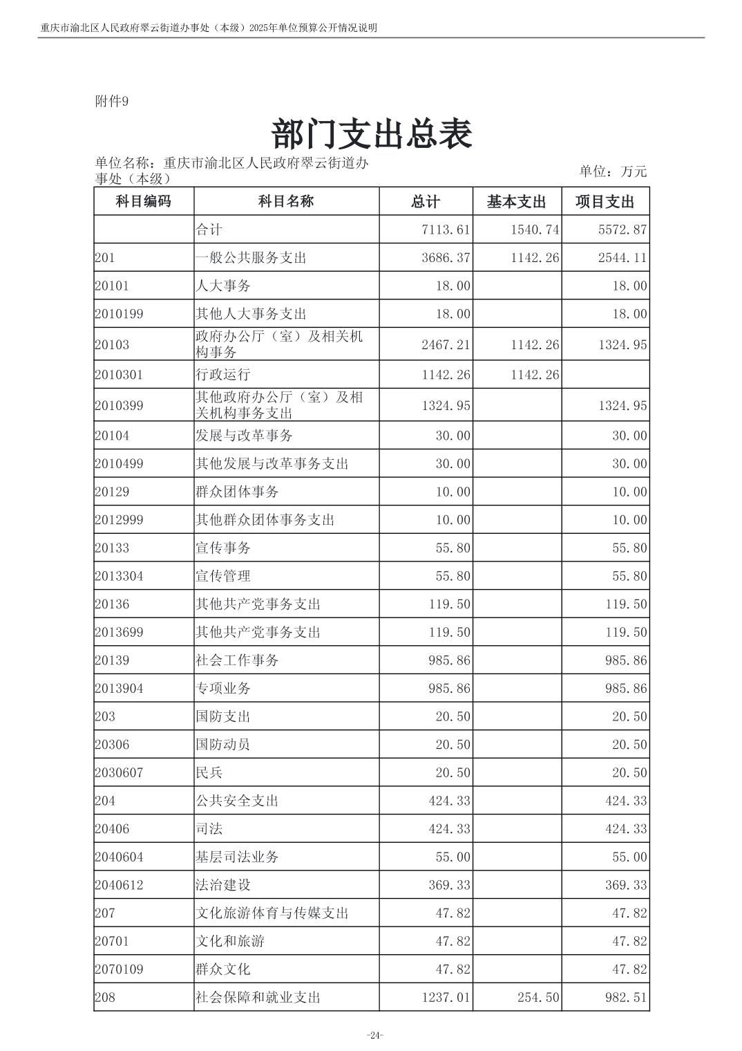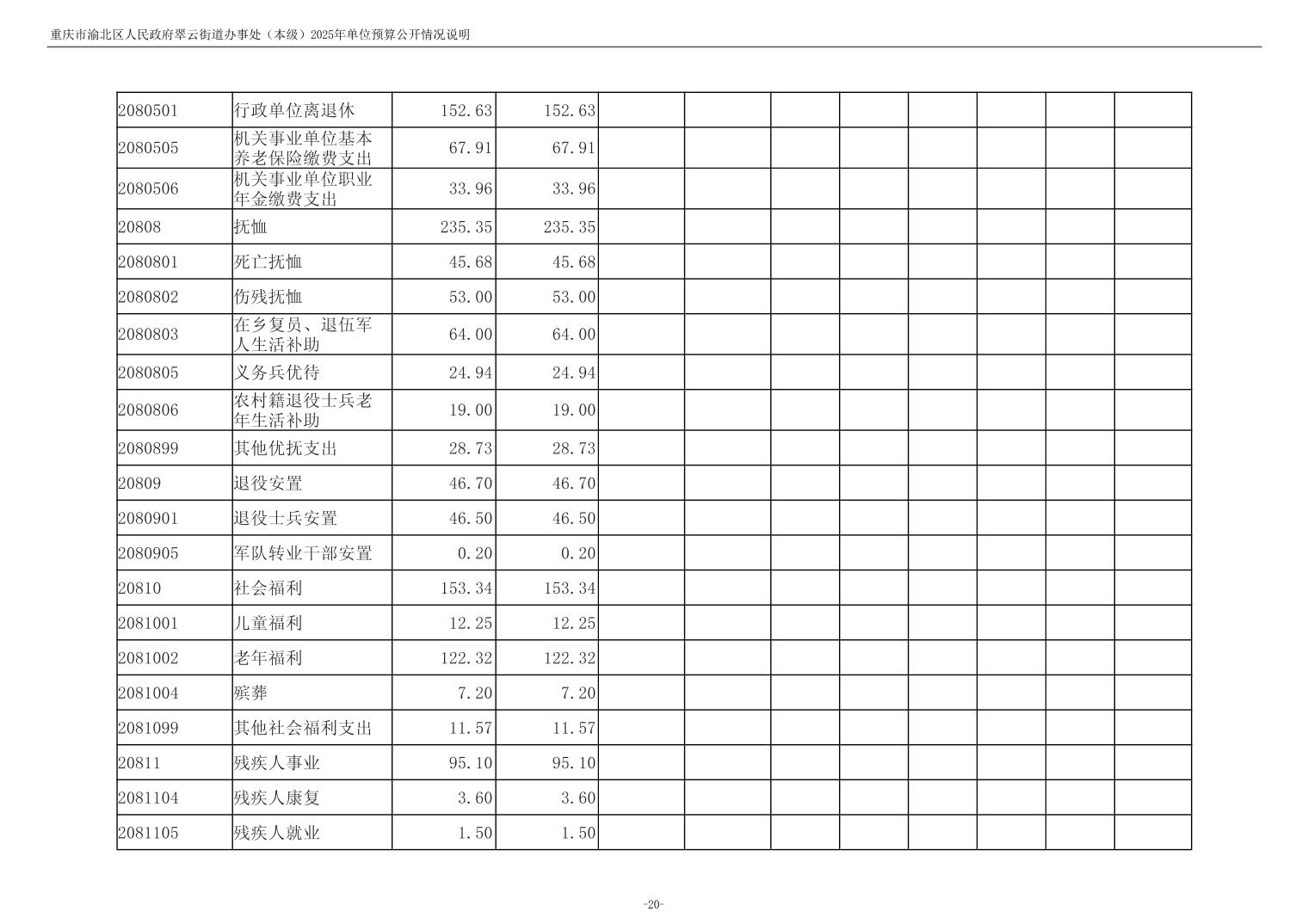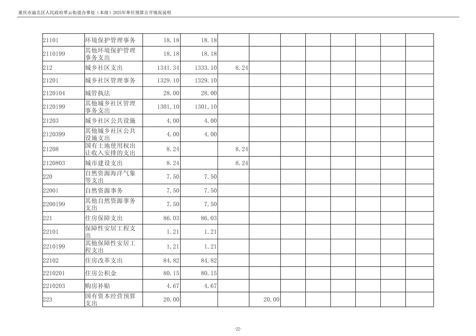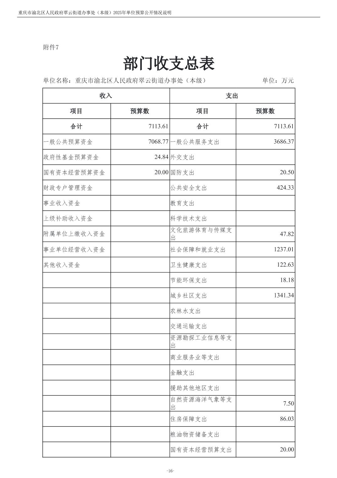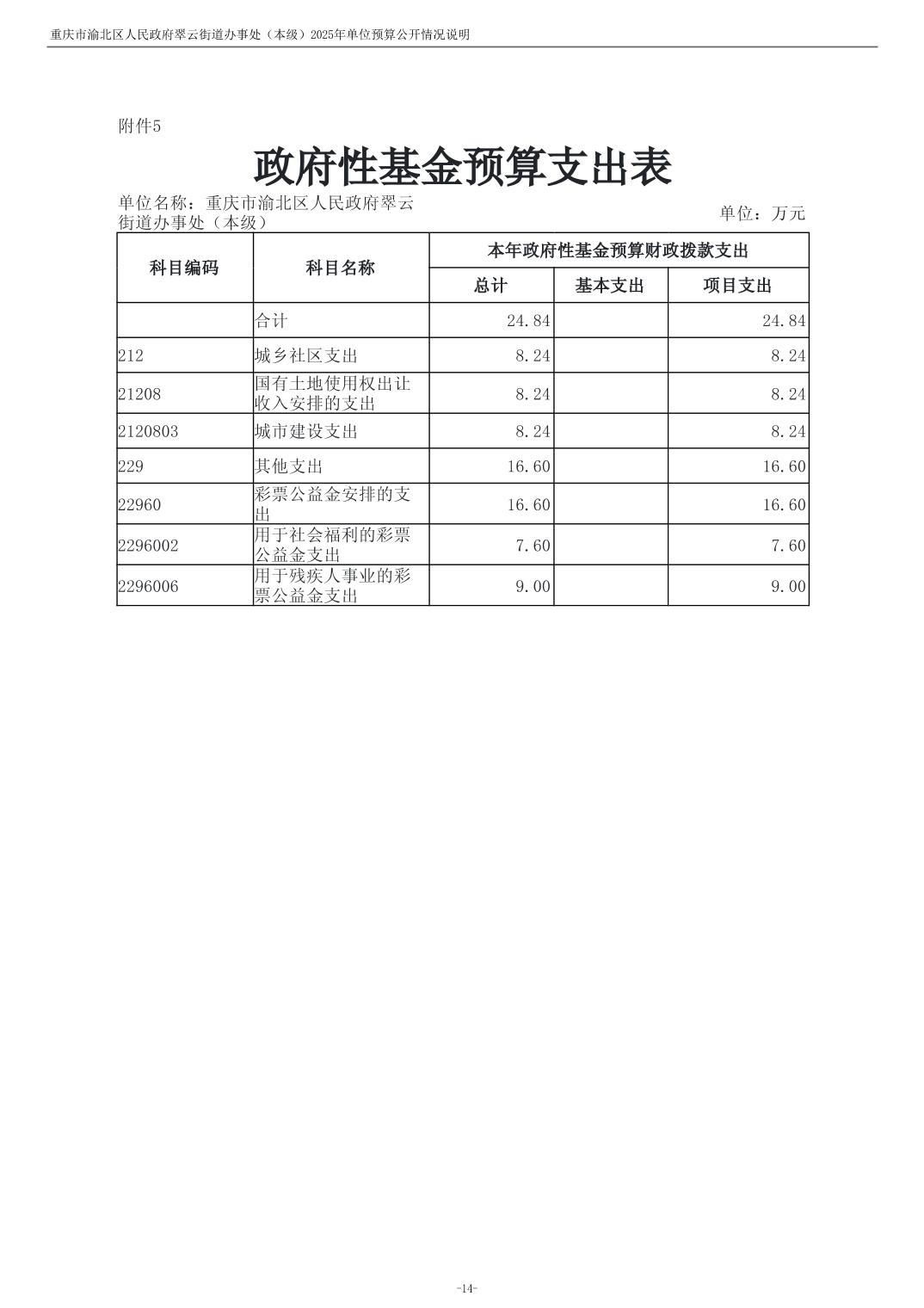 重庆市渝北区人民政府翠云街道办事处(本级)2025年单位预算情况说明