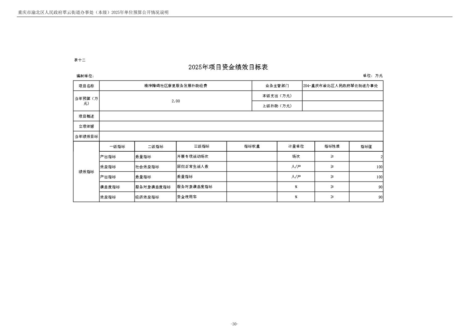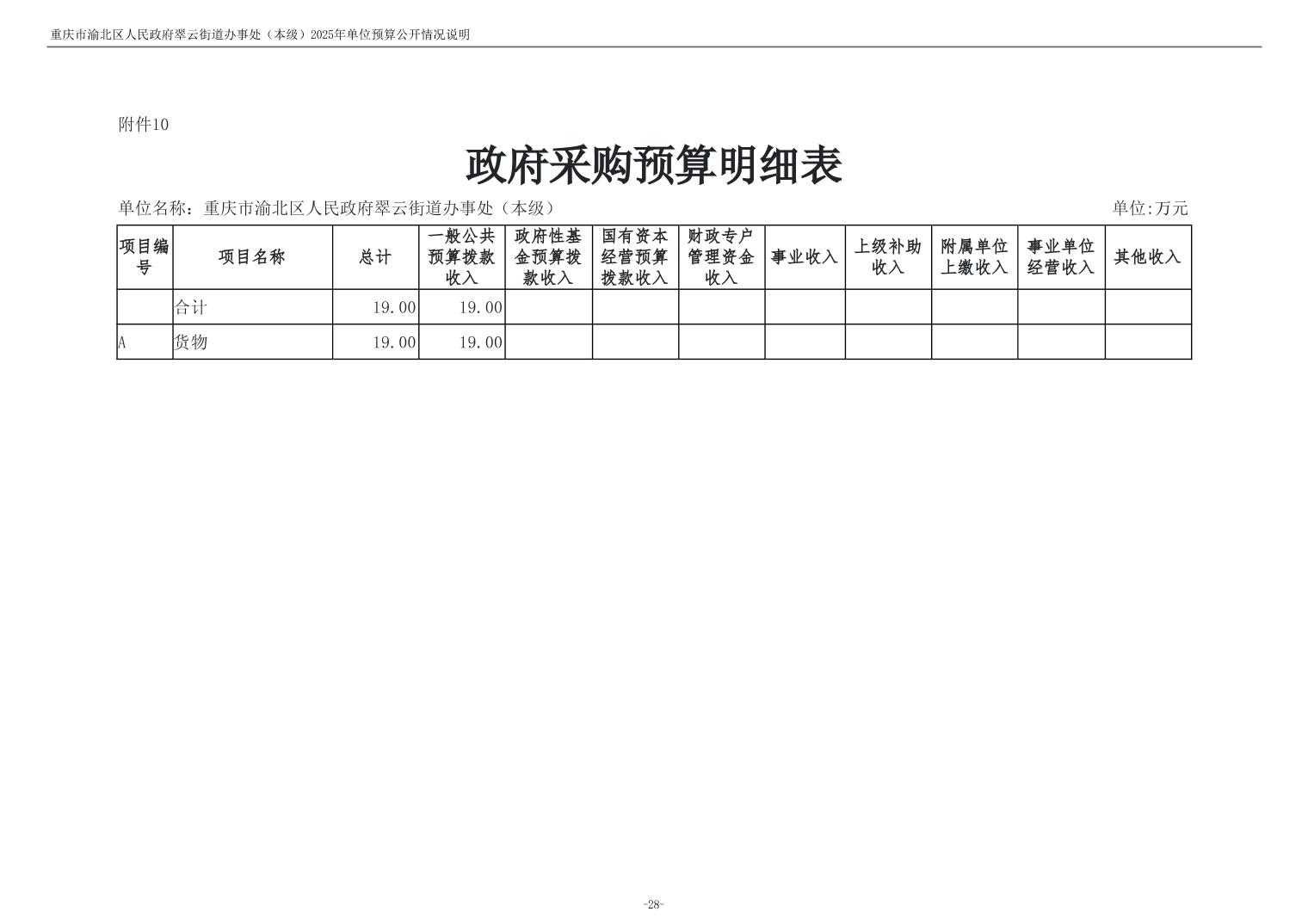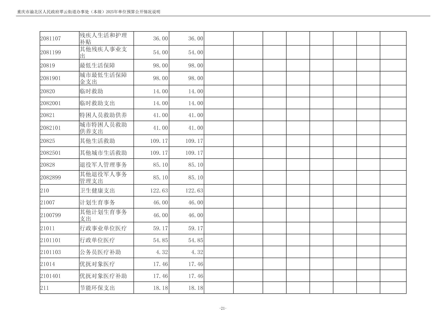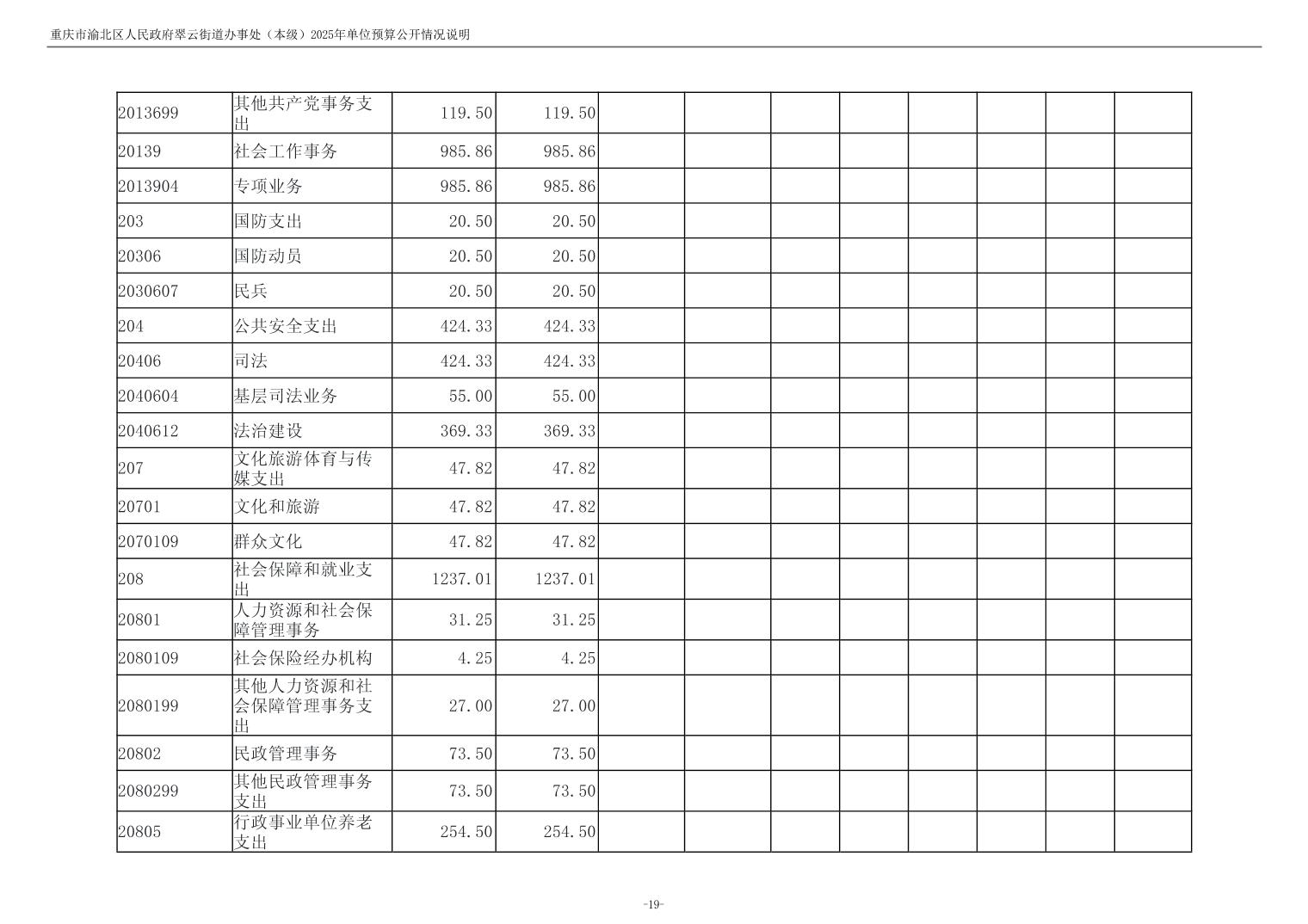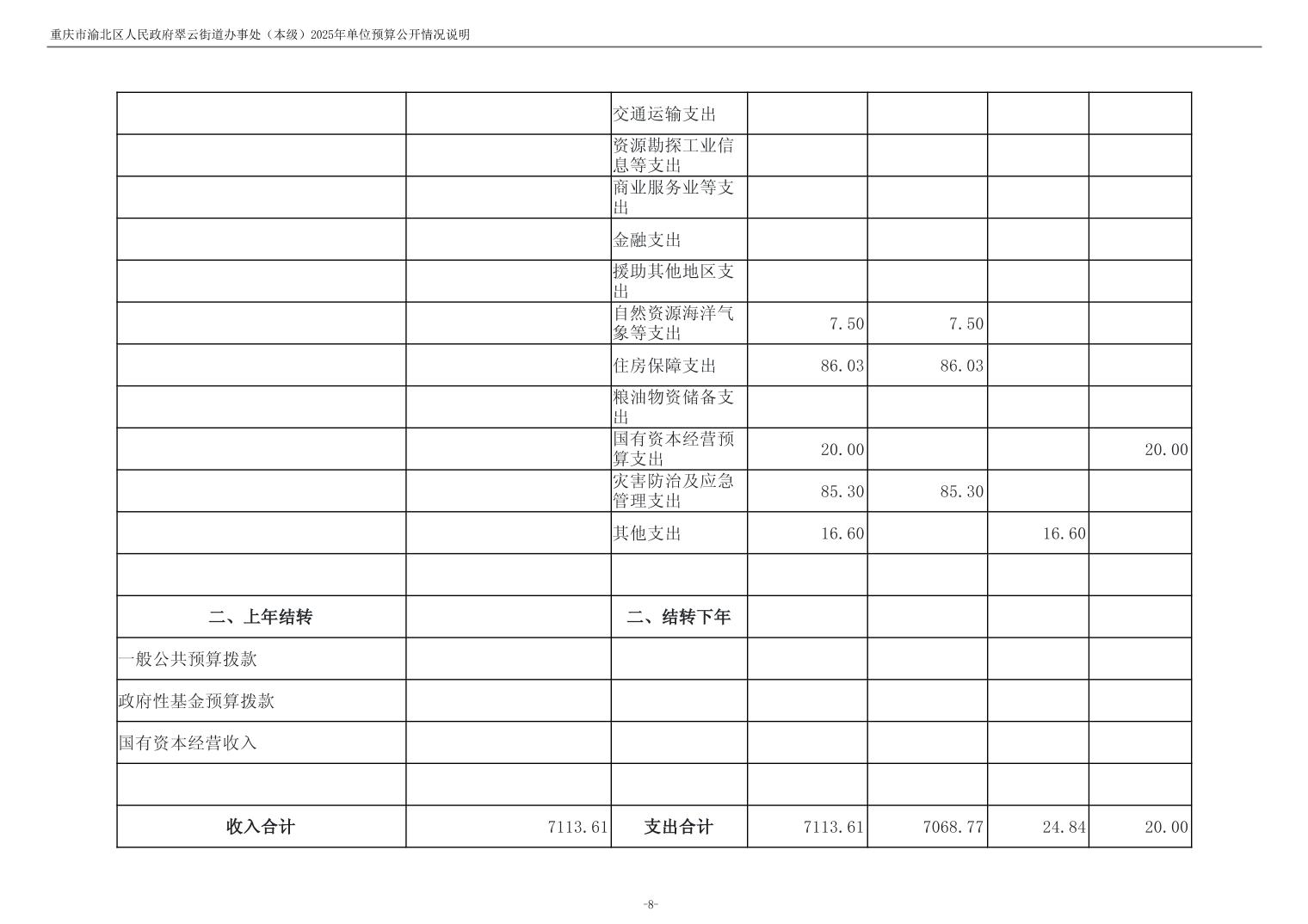 重庆市渝北区人民政府翠云街道办事处(本级)2025年单位预算情况说明