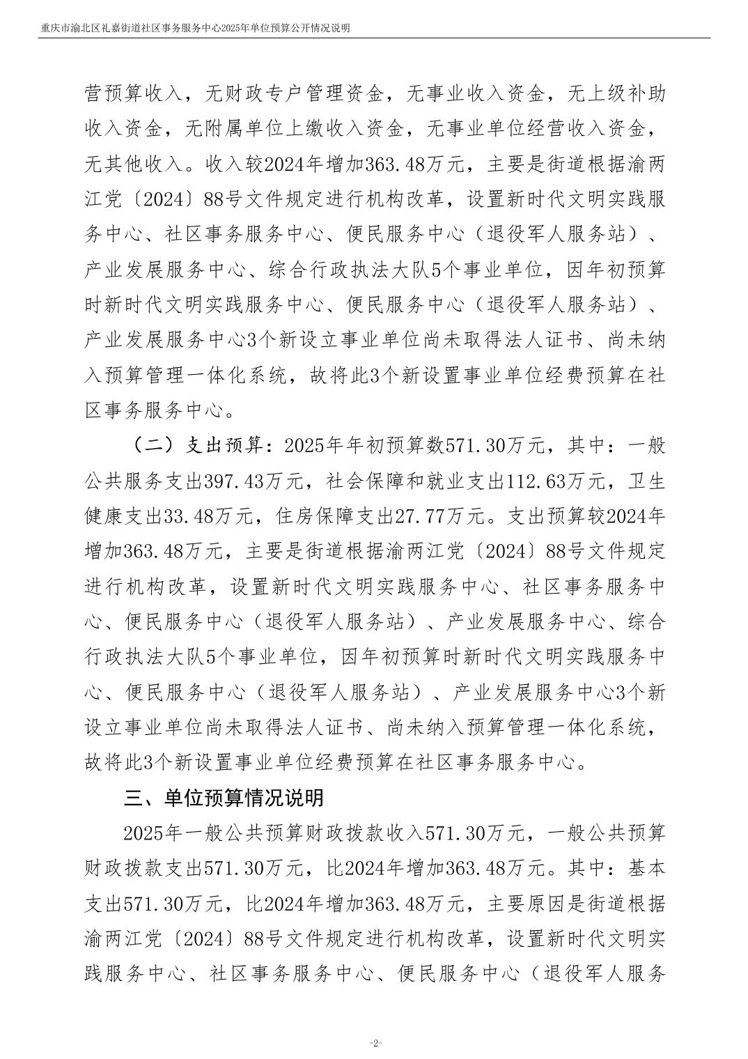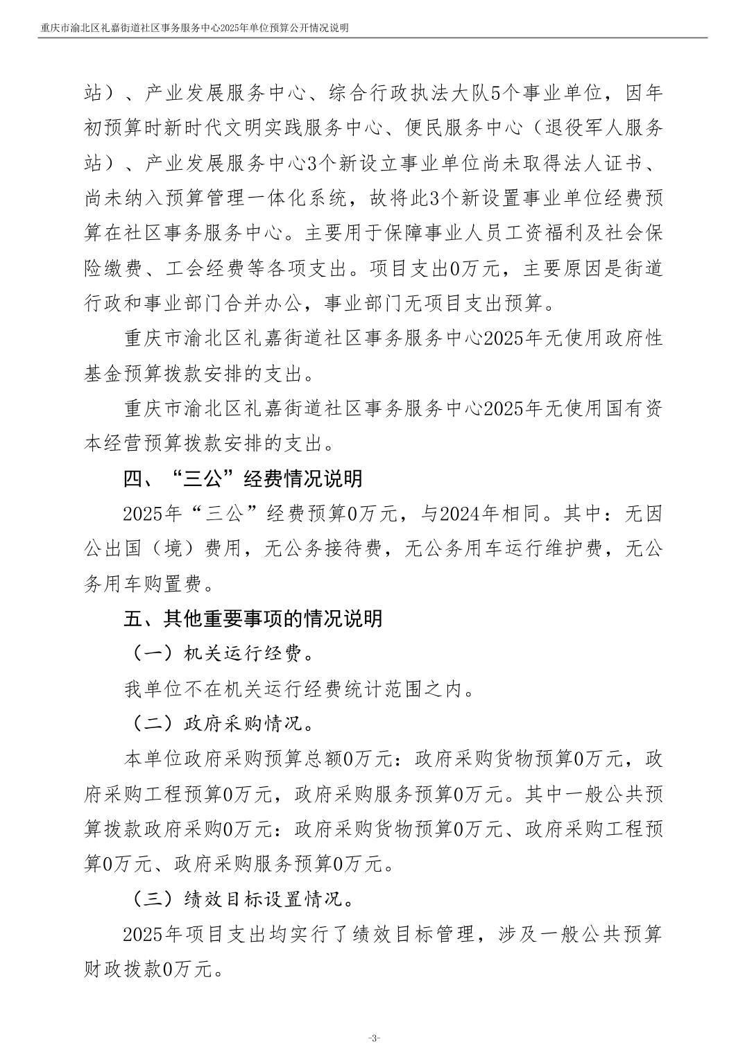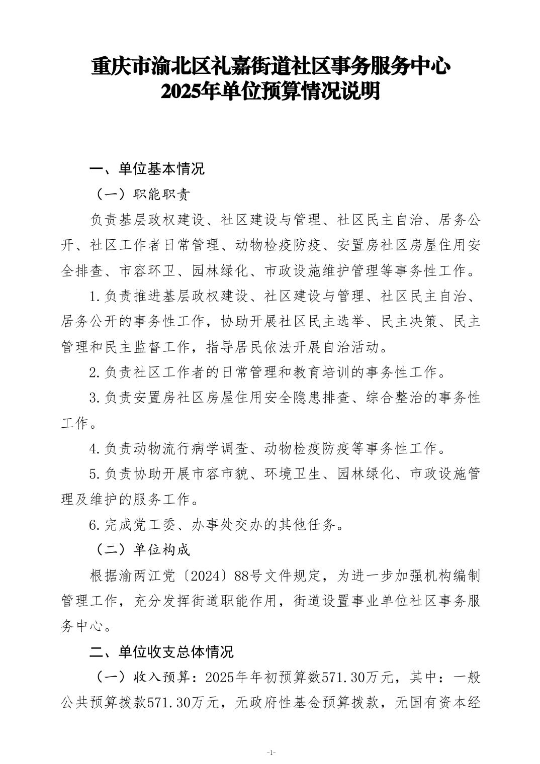 重庆市渝北区礼嘉街道社区事务服务中心2025年单位预算情况说明