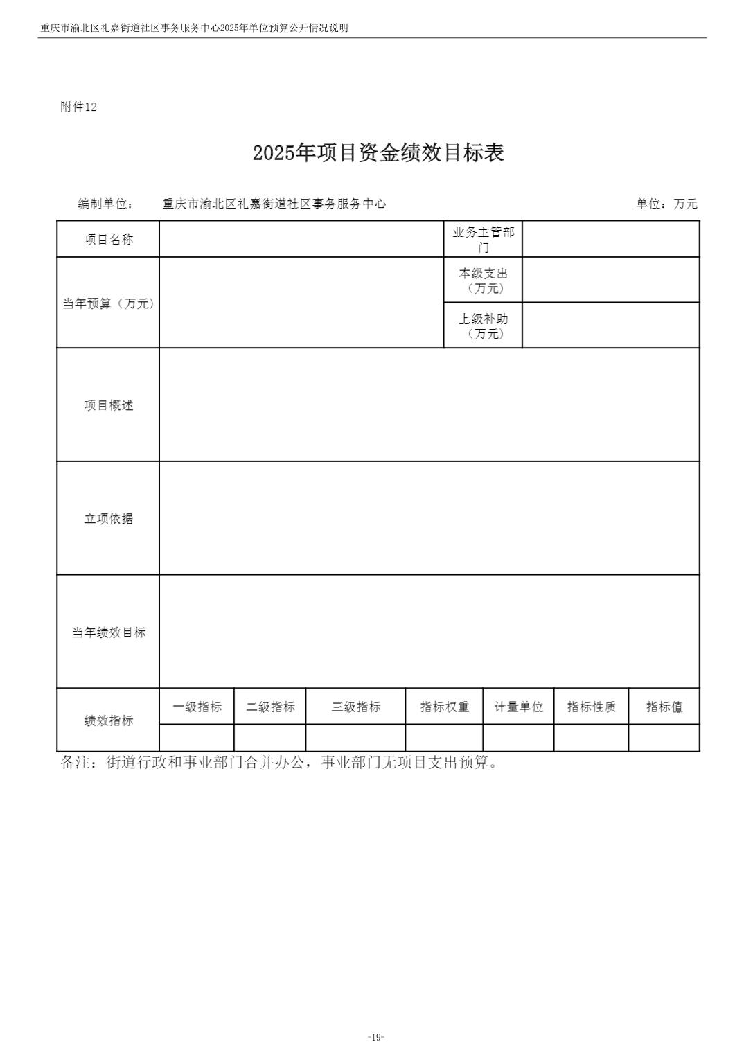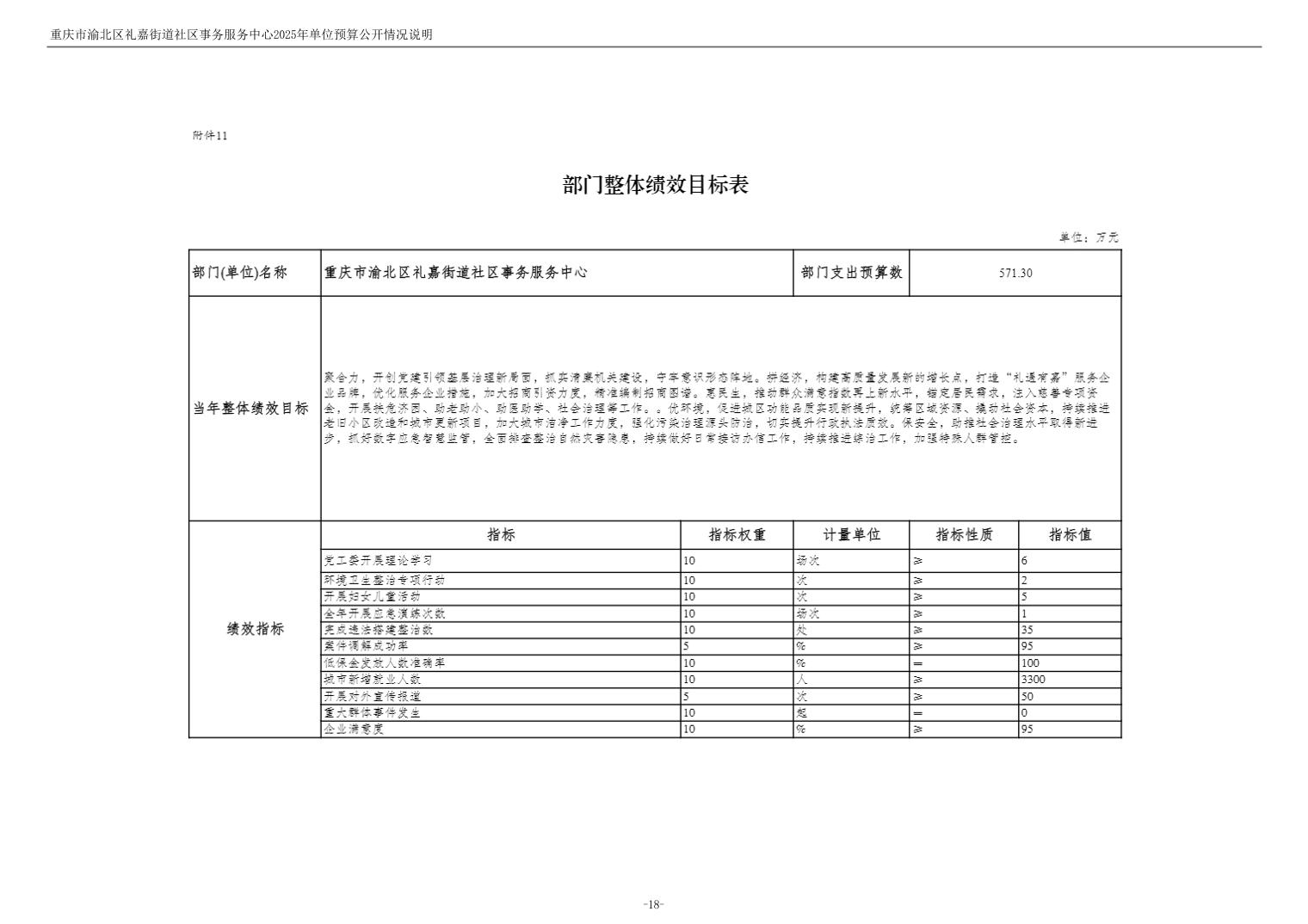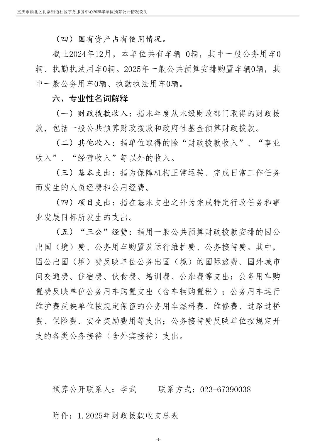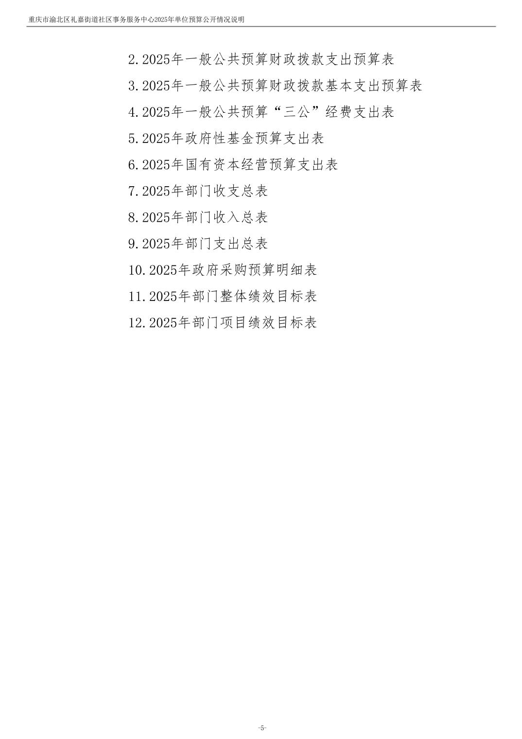 重庆市渝北区礼嘉街道社区事务服务中心2025年单位预算情况说明