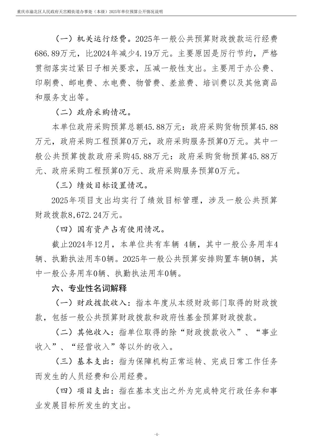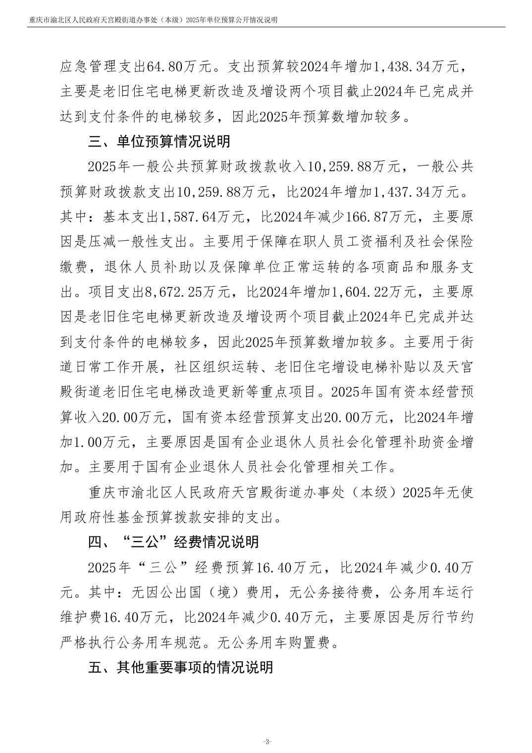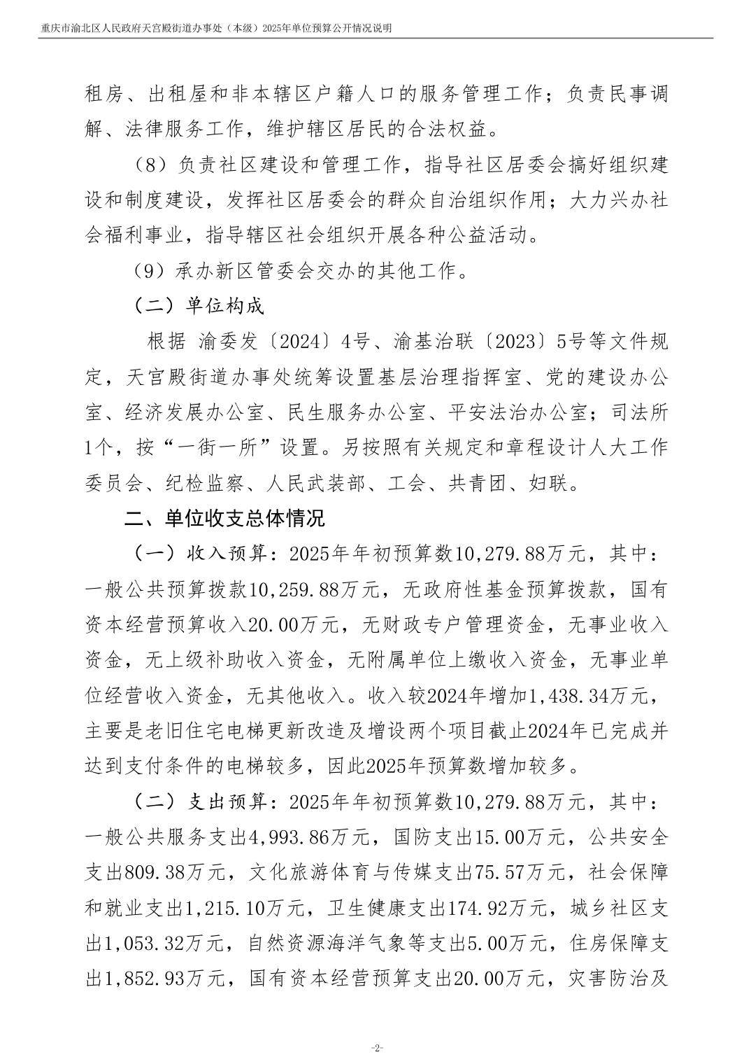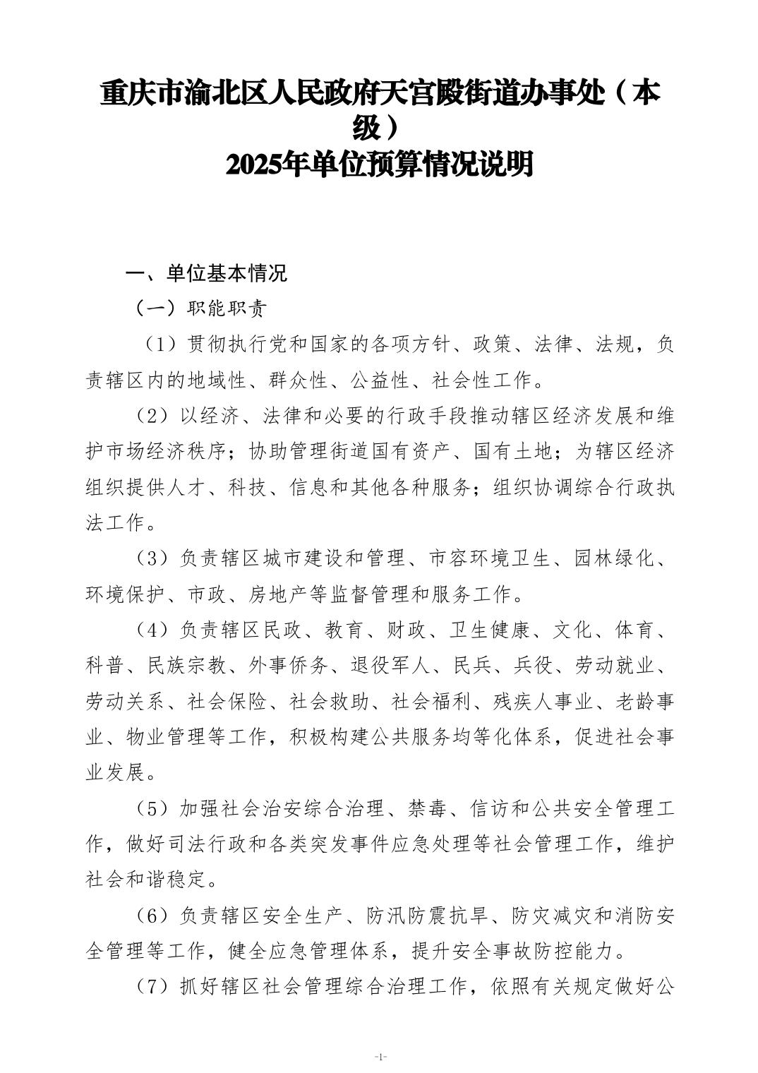 重庆市渝北区人民政府天宫殿街道办事处(本级)2025年单位预算情况说明