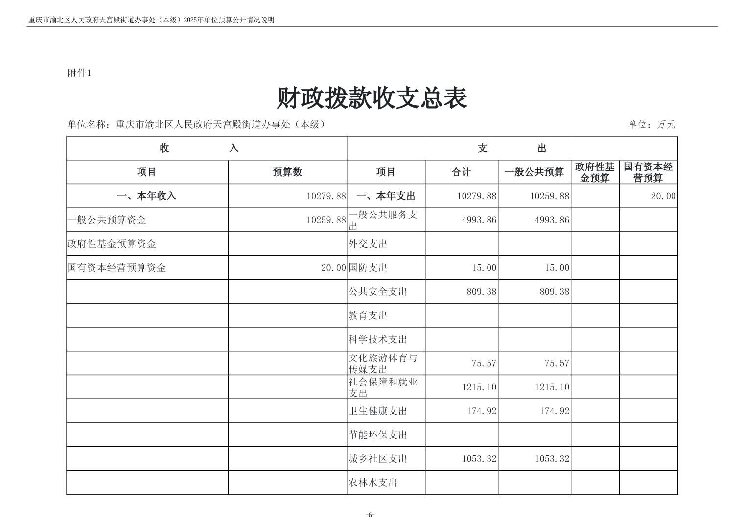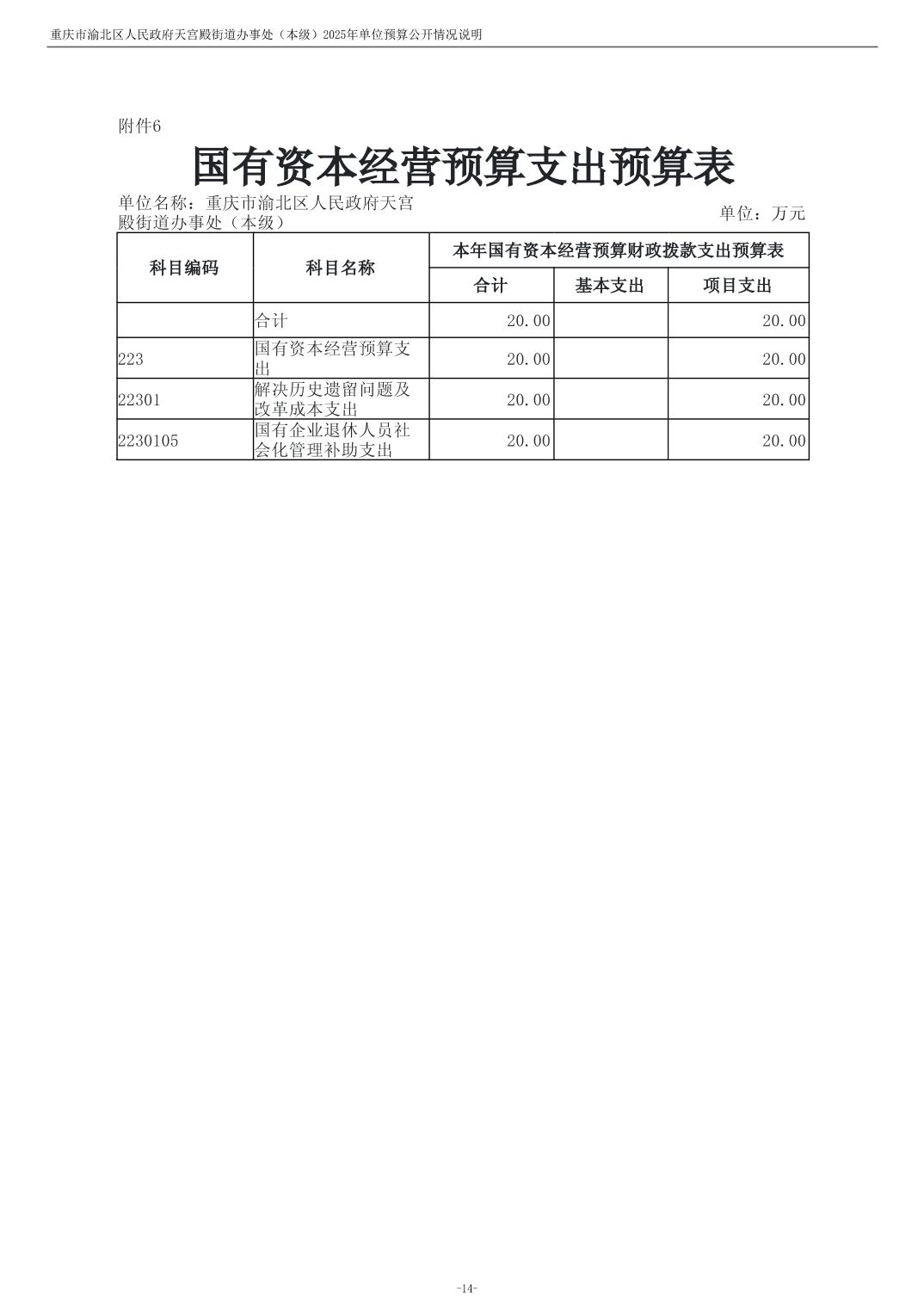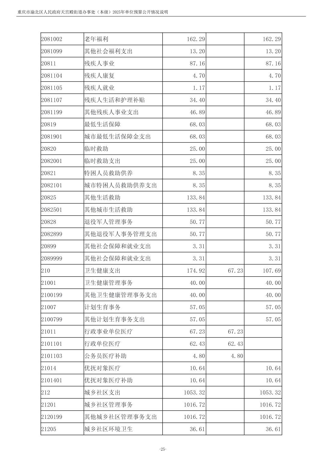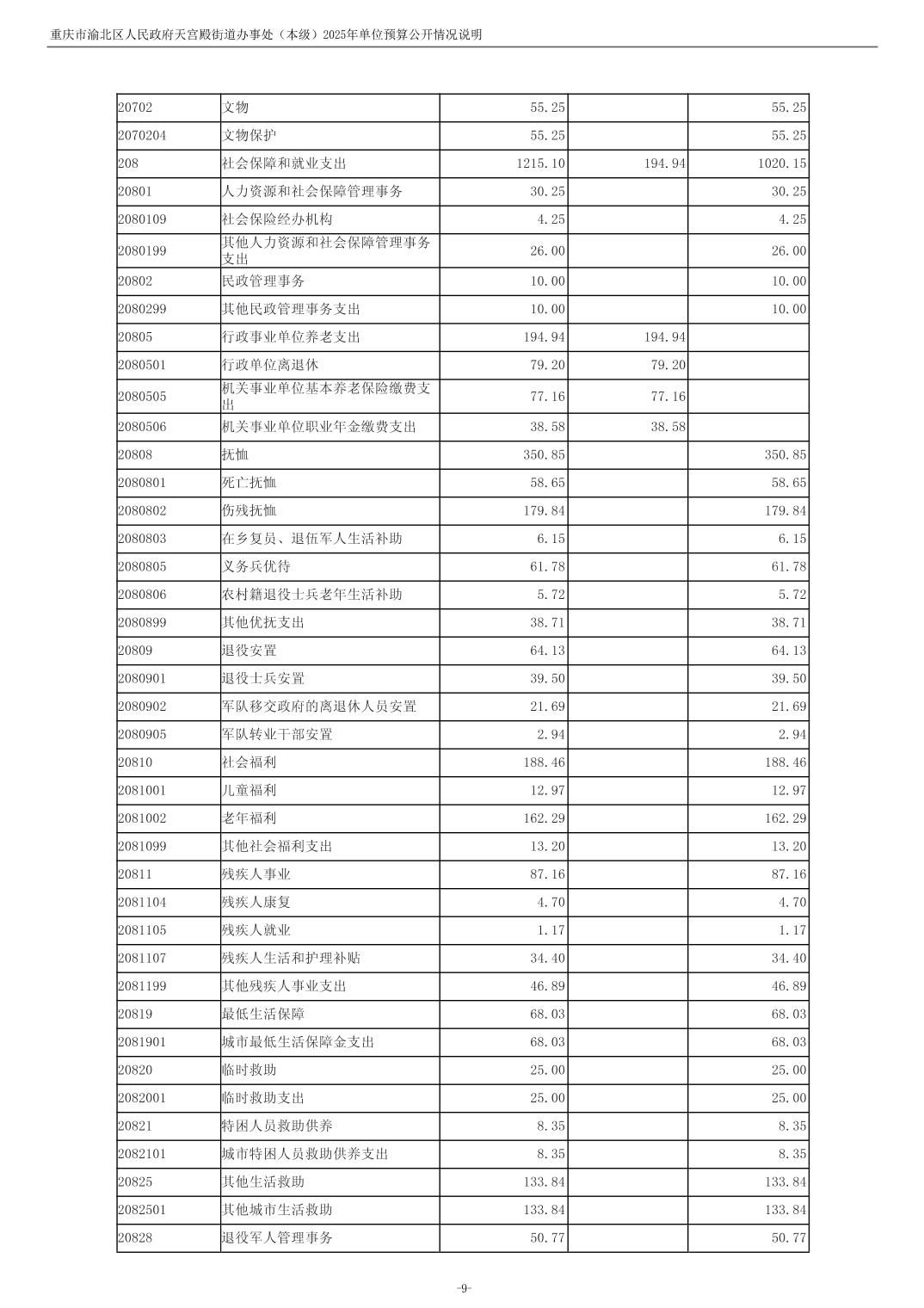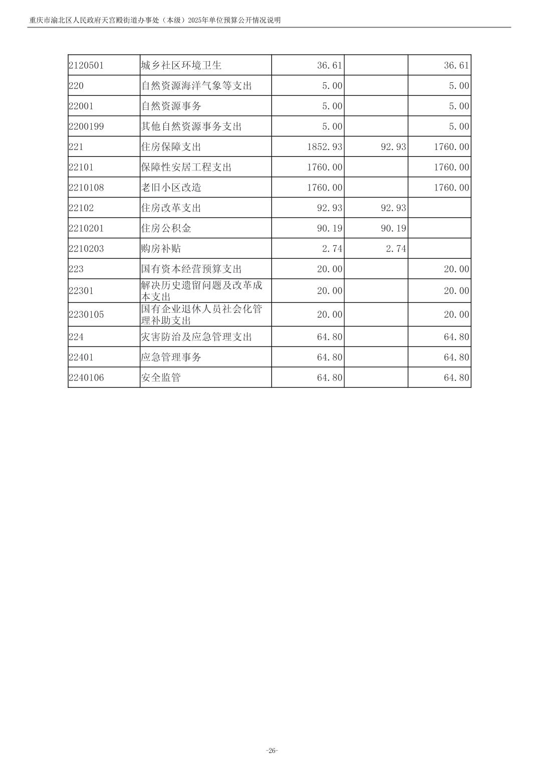 重庆市渝北区人民政府天宫殿街道办事处(本级)2025年单位预算情况说明