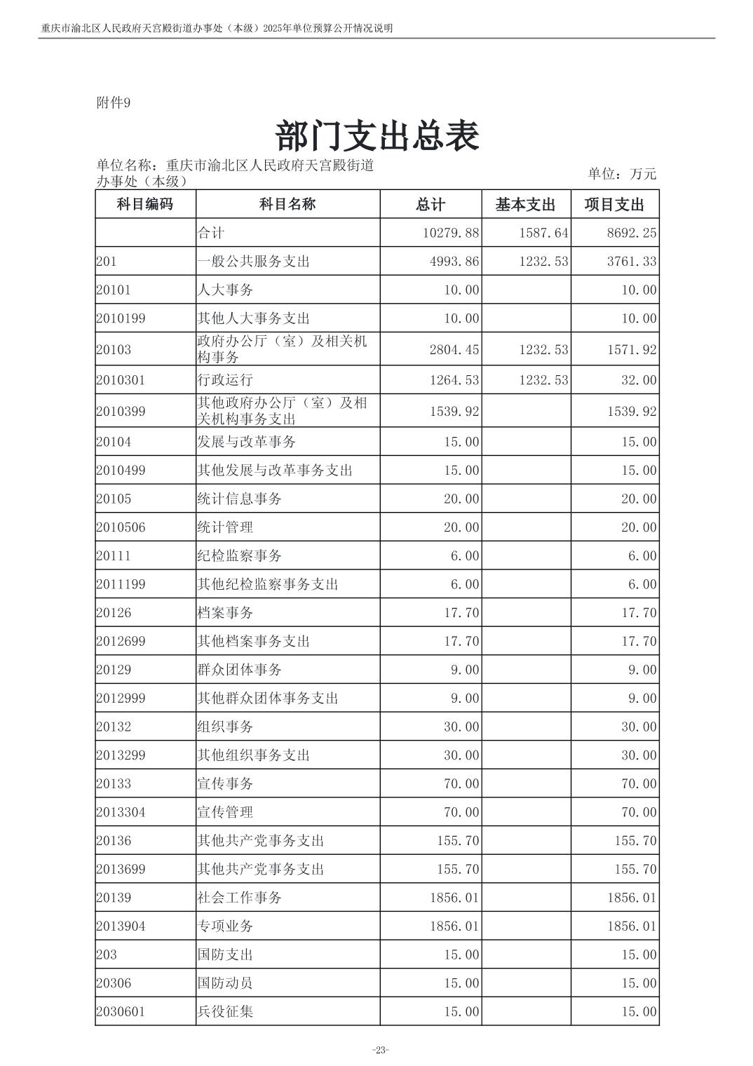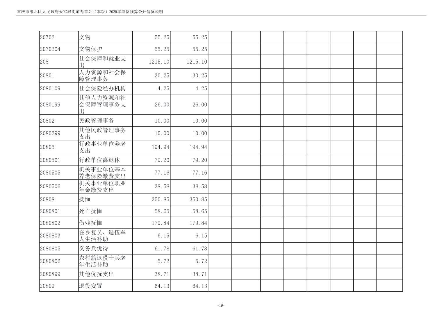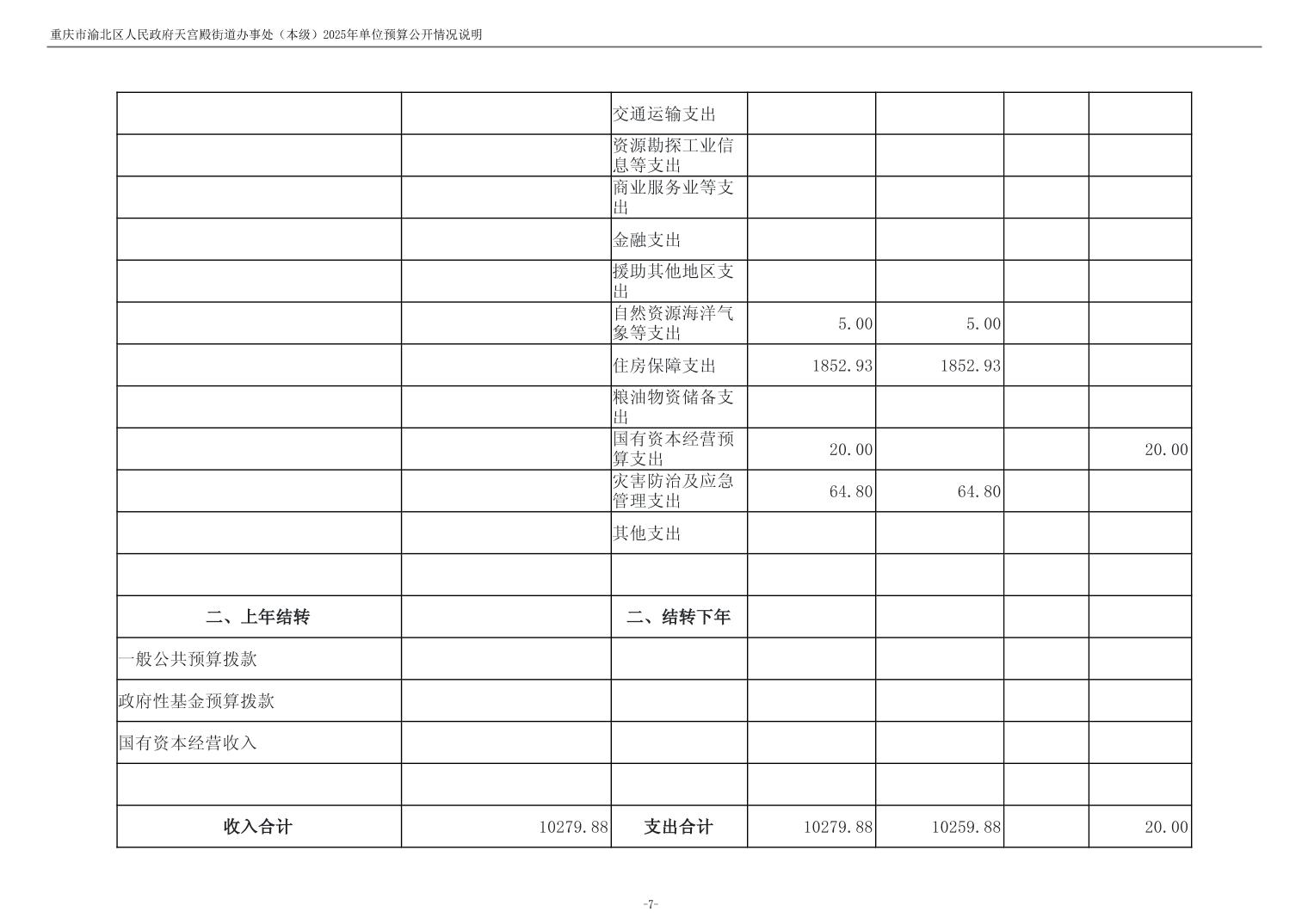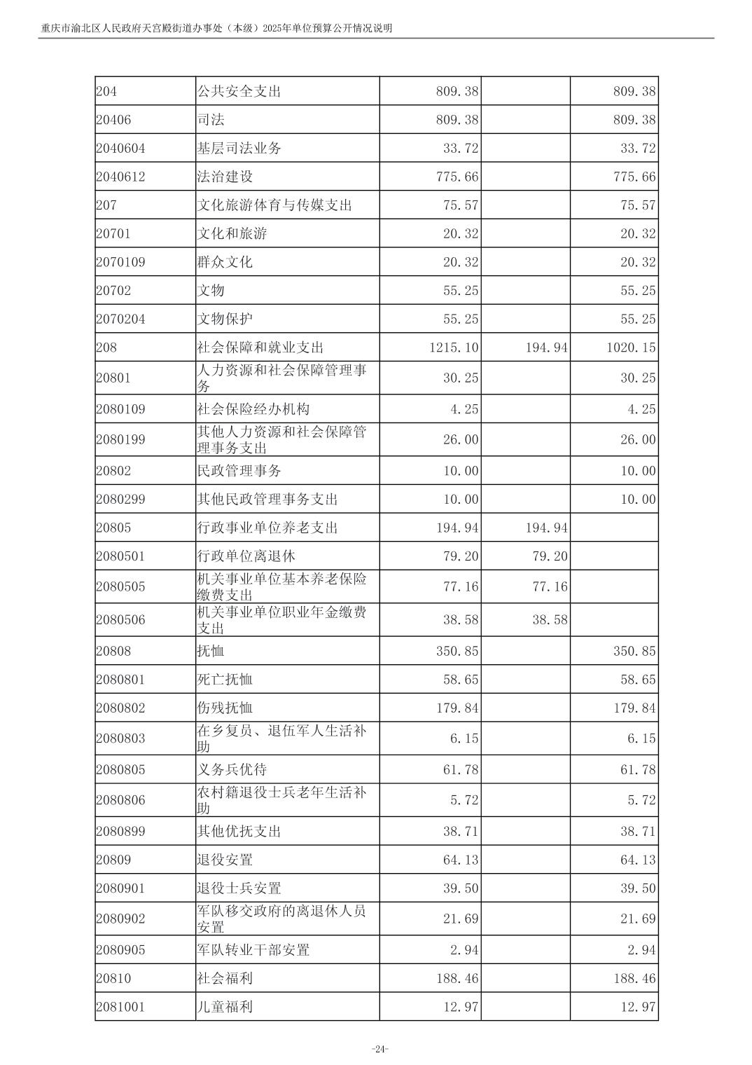 重庆市渝北区人民政府天宫殿街道办事处(本级)2025年单位预算情况说明