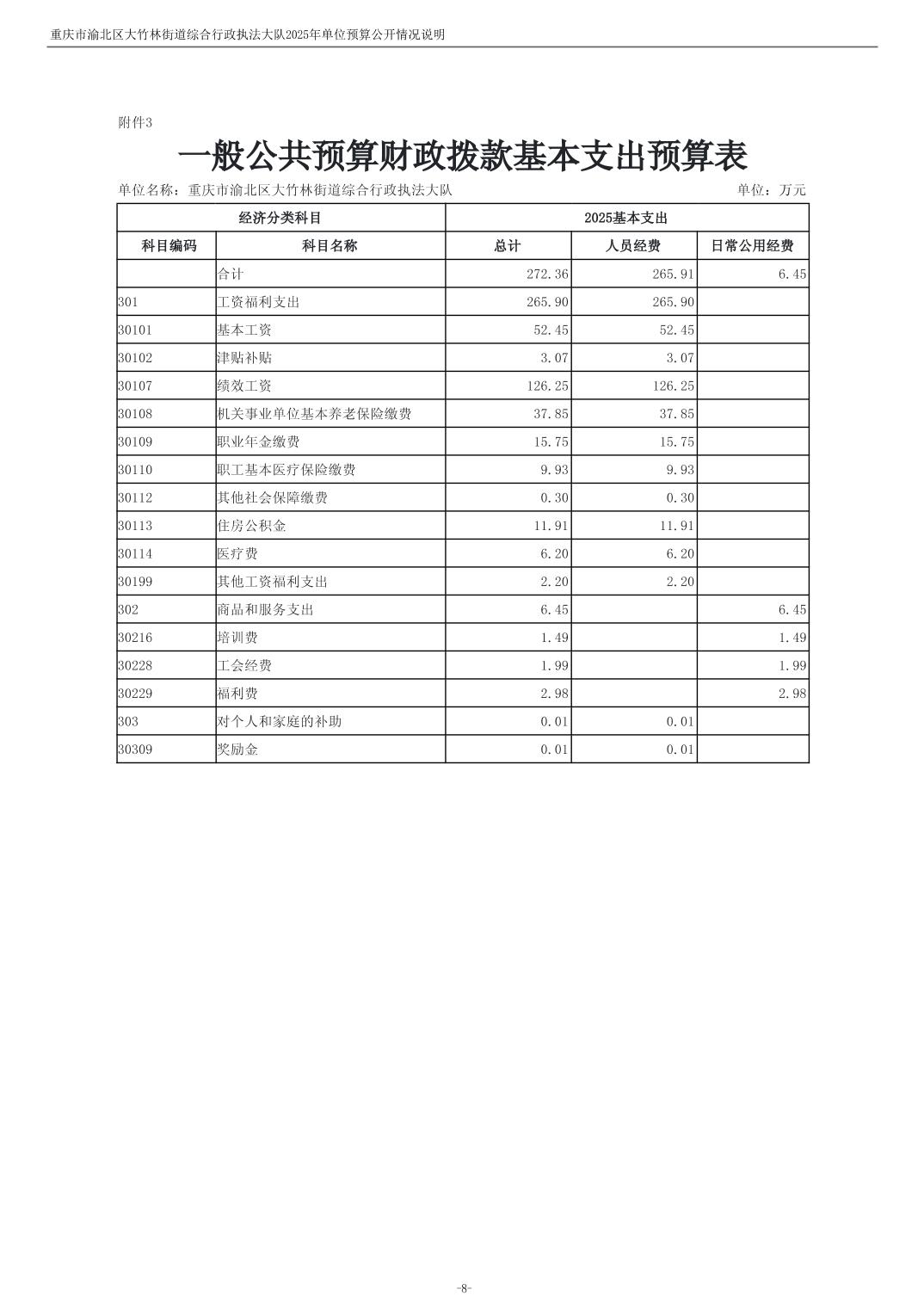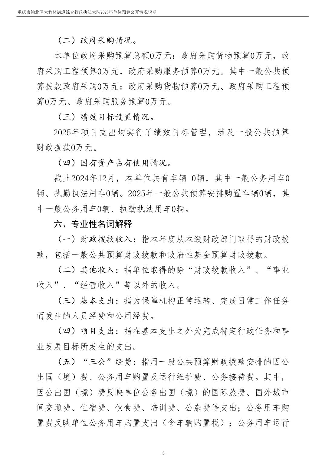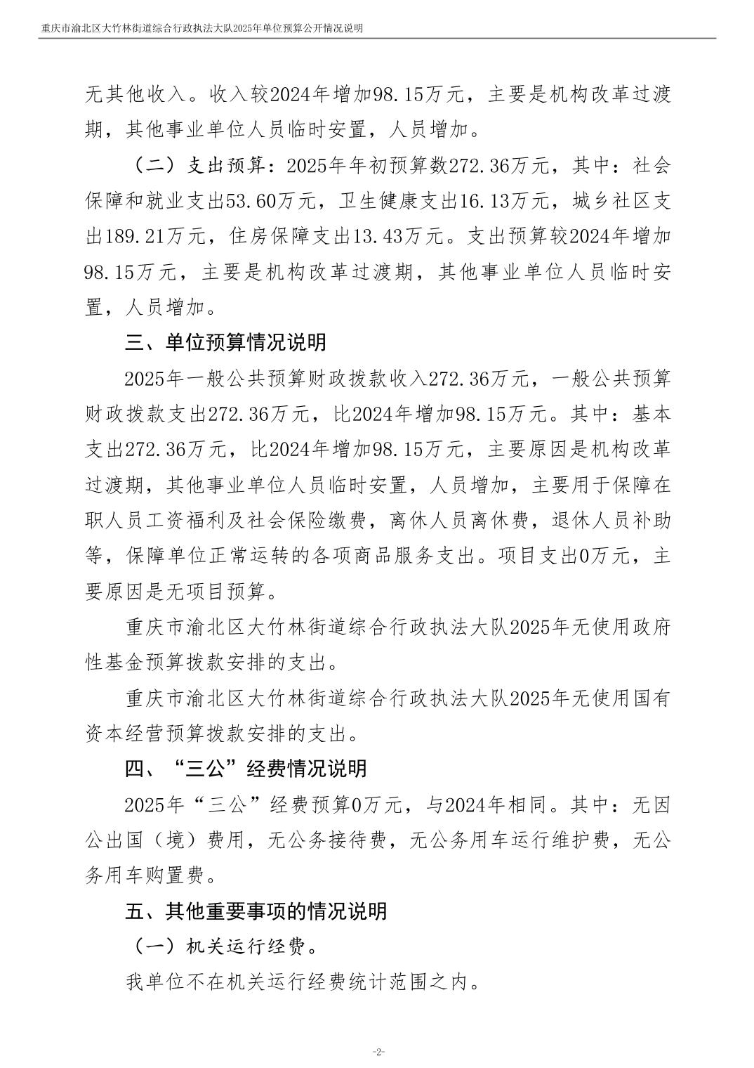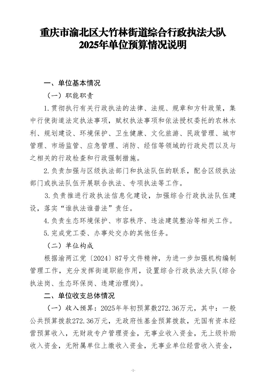 重庆市渝北区大竹林街道综合行政执法大队2025年单位预算情况说明