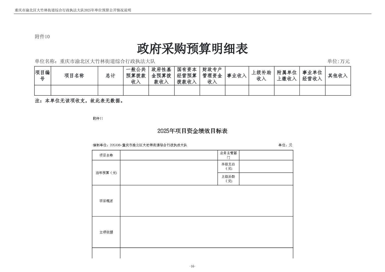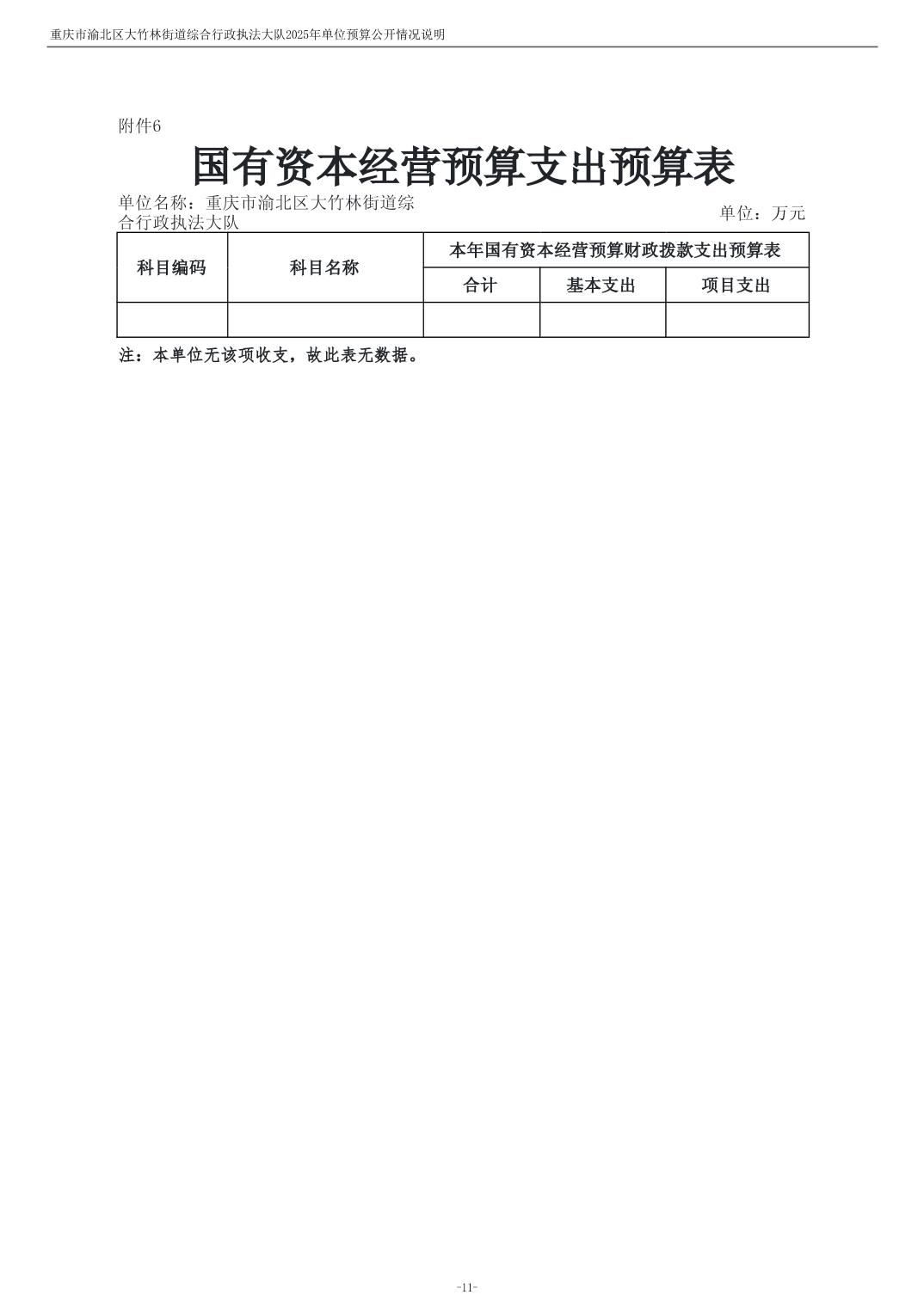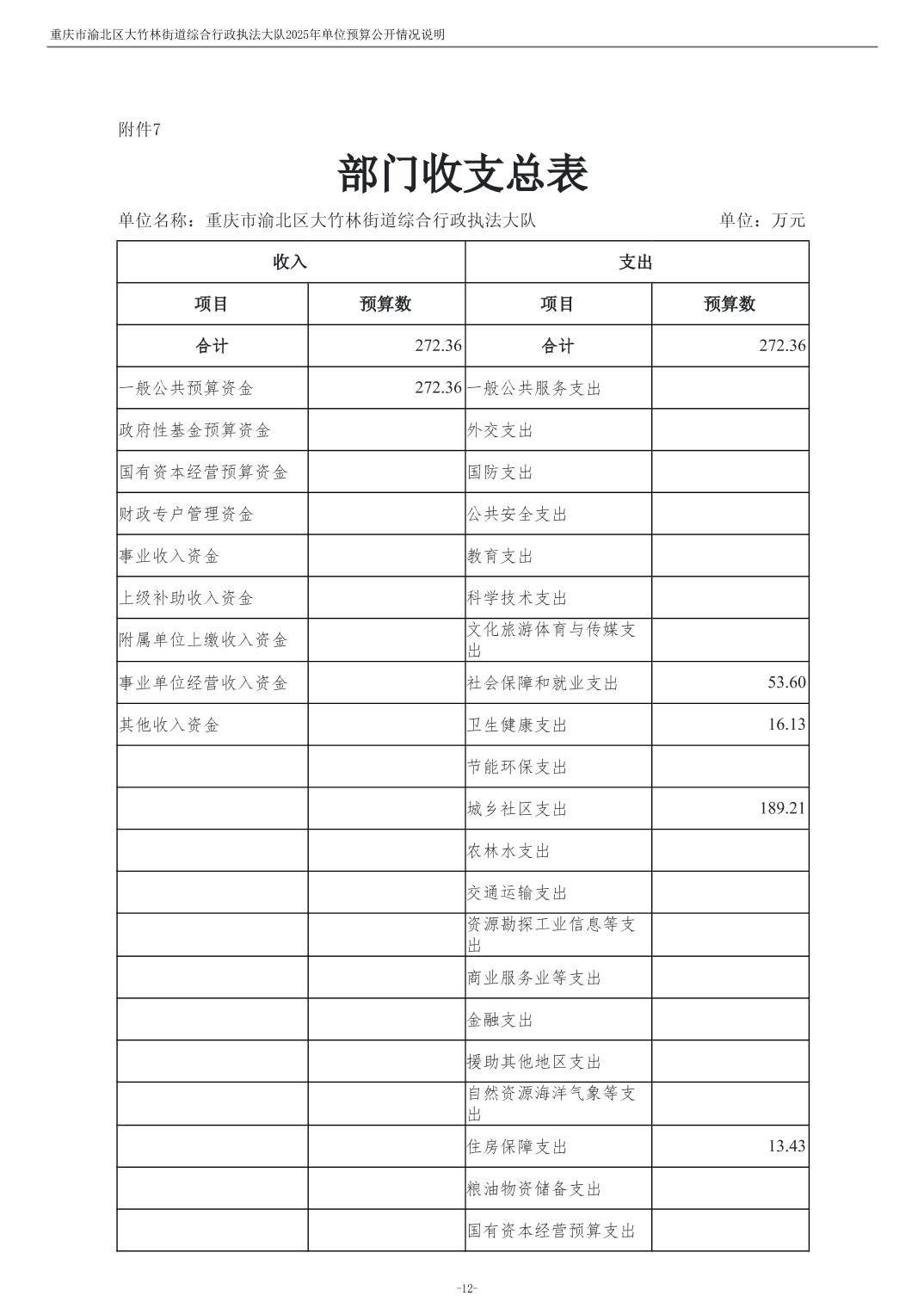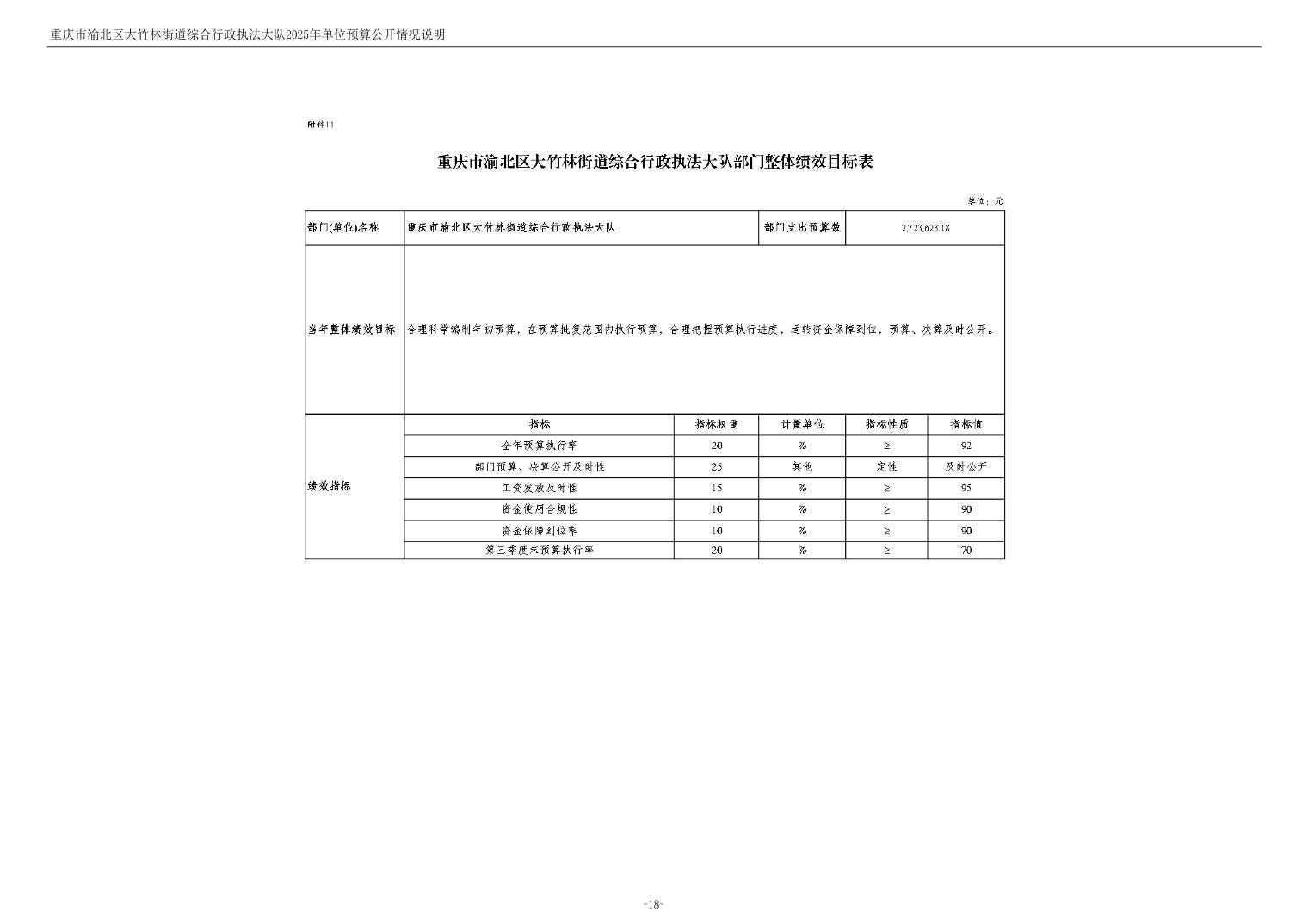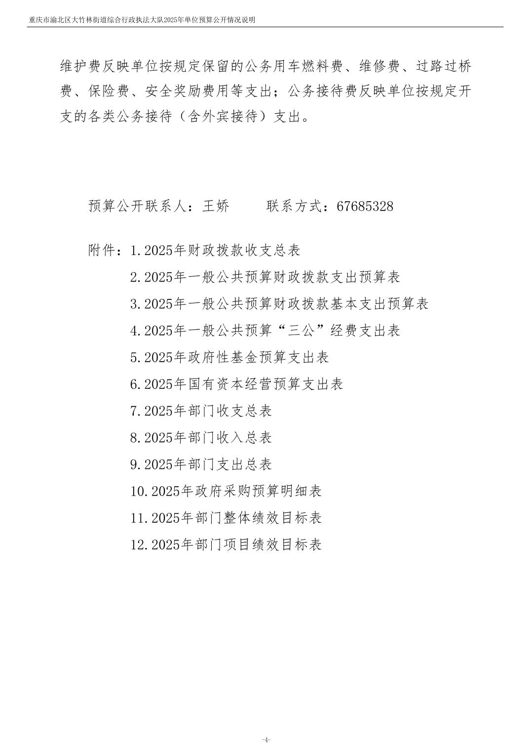 重庆市渝北区大竹林街道综合行政执法大队2025年单位预算情况说明