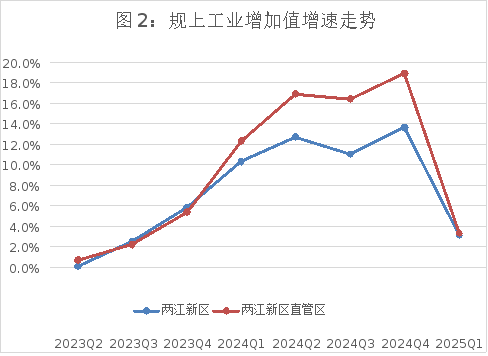 二、2025年1-3月,两江新区实现规上工业增加值同比增长3.1%。其中:直管区实现规上工业增加值同比增长3.3%。