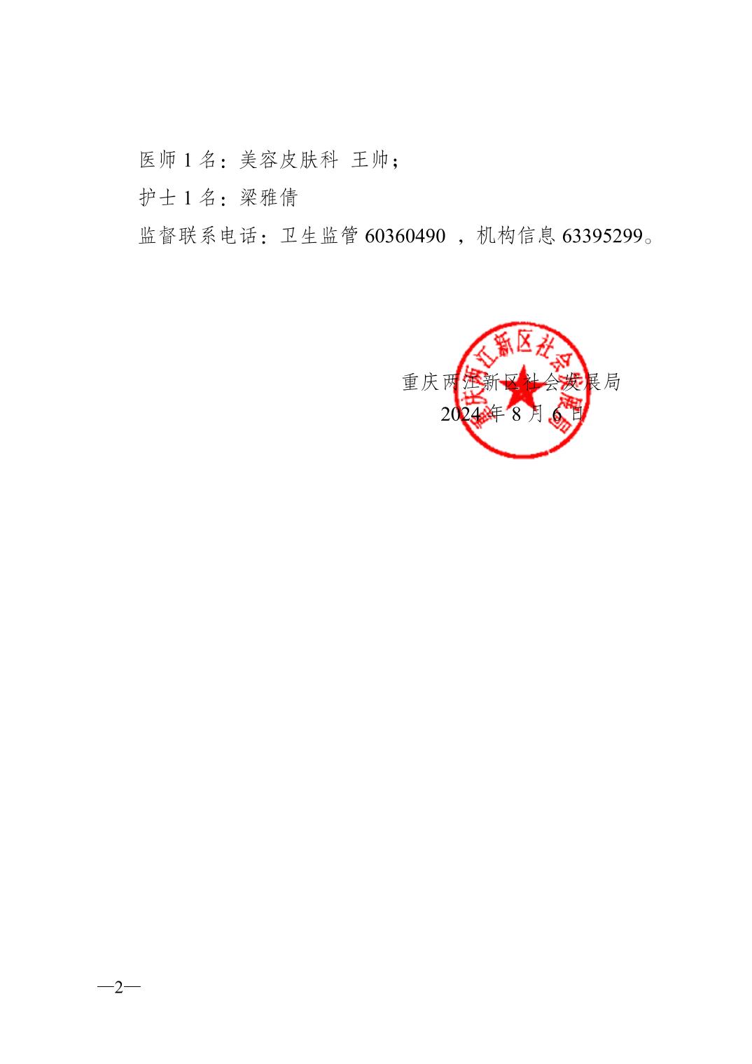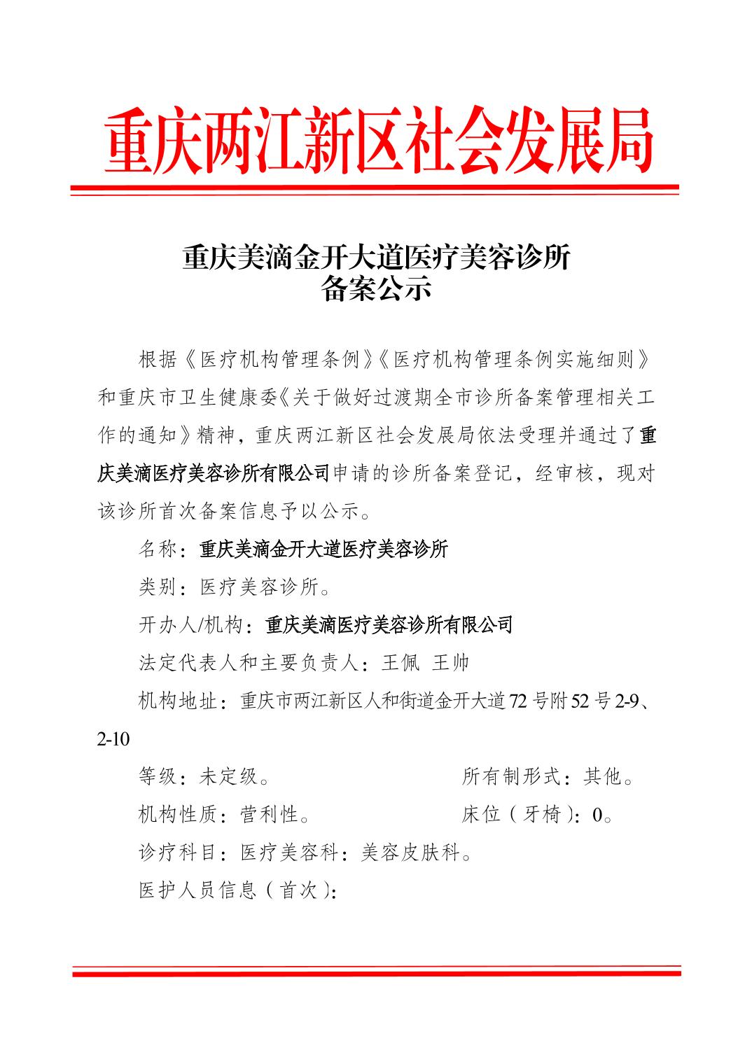 重庆美滴金开大道医疗美容诊所备案公示
