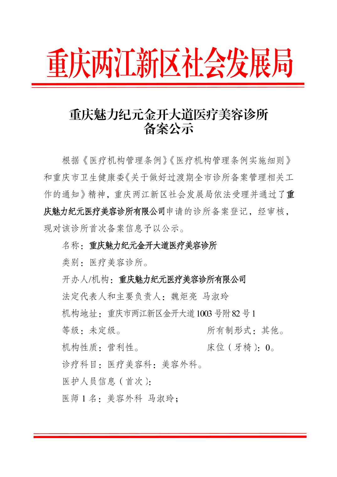 重庆魅力纪元金开大道医疗美容诊所备案公示