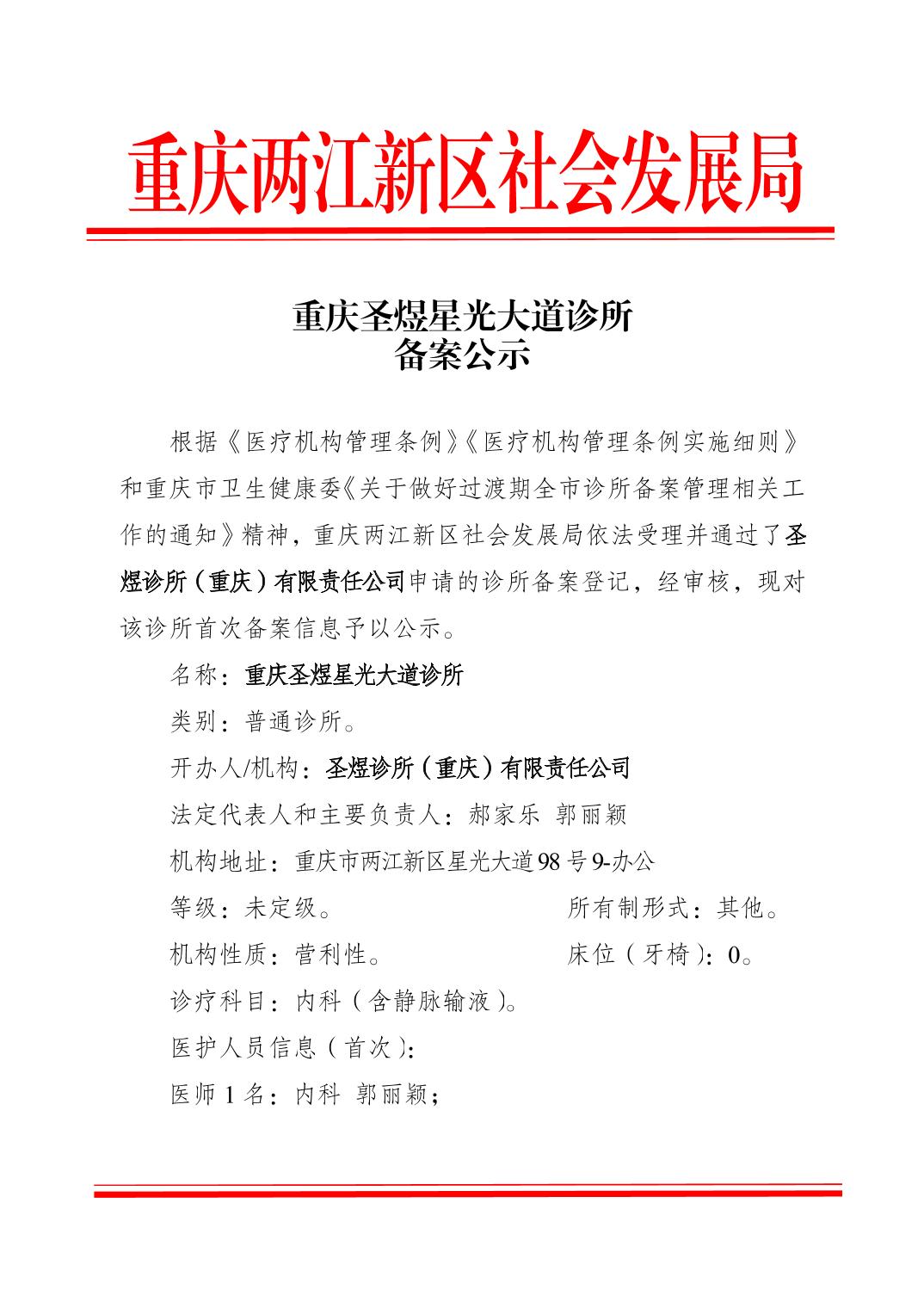 重庆圣煜星光大道诊所备案公示