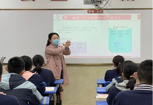 重庆两江新区人和实验学校在开学第一课上,通过开展主题班会课、播放学校制作的防疫视频等方式,帮助学生树立正确的防疫意识,养成勤洗手、戴口罩、不聚集等良好的防疫习惯。并通过指导学生进行具体场景演练,使学生养成规范的校园行为,为开学复课安全、有序进行开了一个好头。