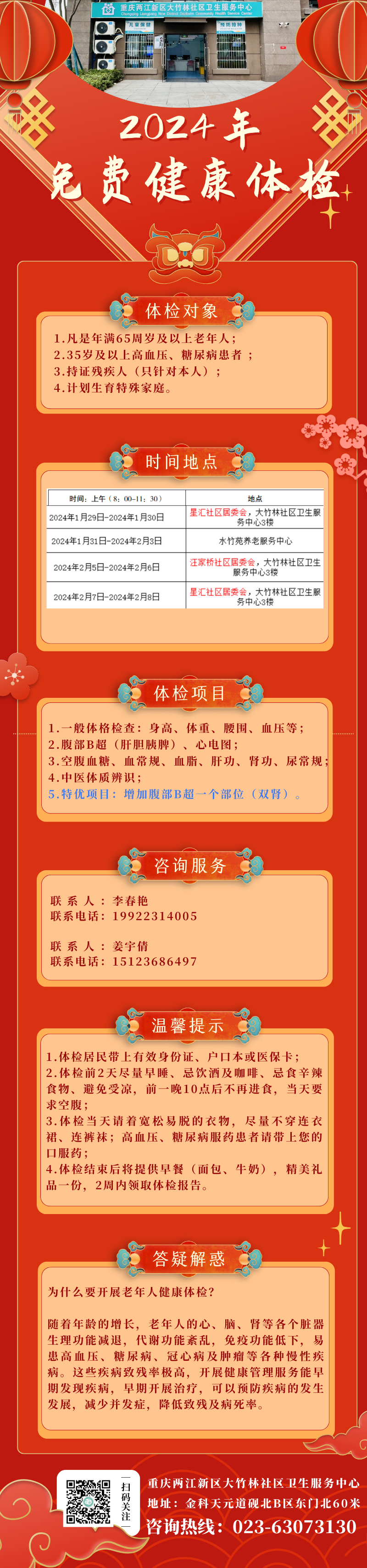 @辖区所有居民,2024年最新免费体检安排等您来!