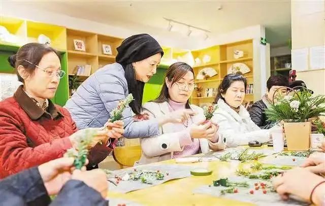 如今,她已经成为插花课的忠实学员,时常将自己的插花作品分享给老师,交流对花艺的感悟。“很惊喜阿姨的改变。”庞健说。
