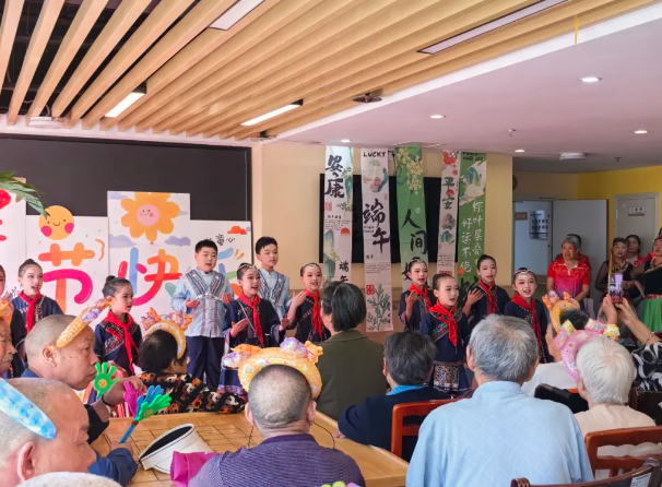 大竹林街道团工委、妇联联合人和小学、水竹社区学院舞蹈队走进两江新区中医院楠苑康复护理养老院,开展“‘粽’享青春 耆心童乐”端午·六一汇演活动。50余名老年人与社区志愿者、学校师生齐聚一堂,借着精彩欢快的文艺表演送上了节日的祝福,并通过合制节日香囊拉近了彼此距离。