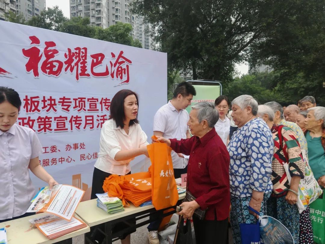 近日,金山街道在民心佳园广场组织开展2025年重庆民政政策宣传月活动,现场为居民讲解高龄福利、社会救助、退役军人、社会保险等惠民政策。