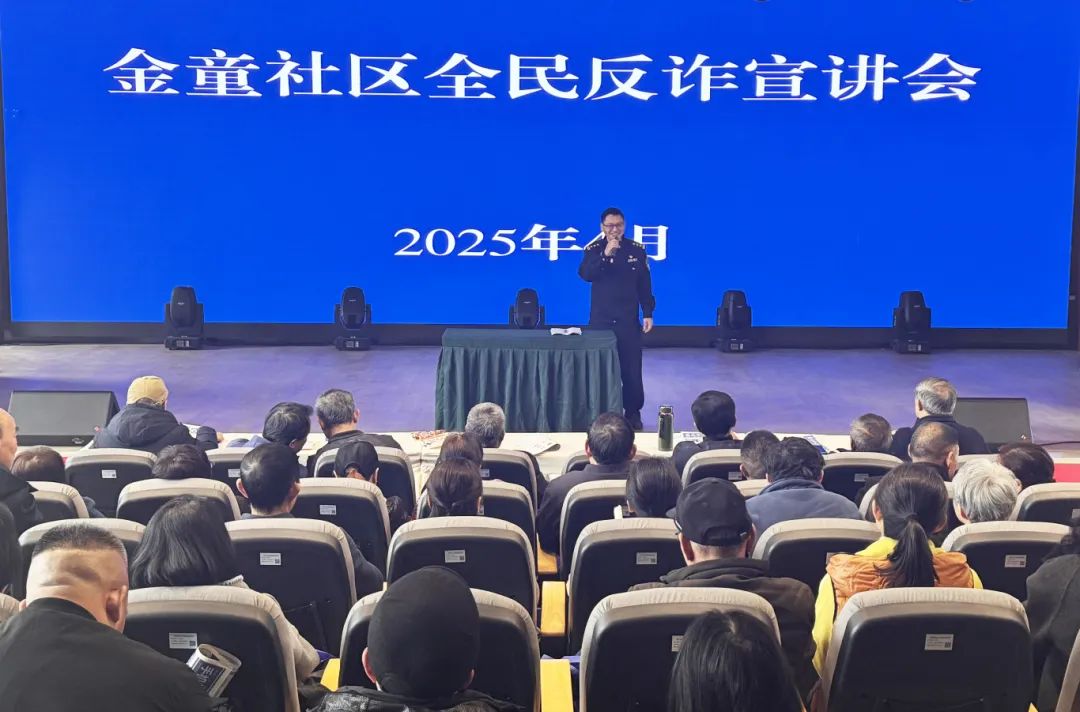 近日,金童社区联合金山派出所开展“学习防骗知识,守好我们的钱袋子”反诈知识宣传活动。