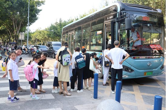 当日一早,伴随着晨光,定制公交准时停靠在首发站点,学生和家长们在工作人员引导下有序上车,脸上洋溢着轻松的笑容。