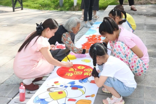 活动现场洋溢着浓浓的节日氛围,每一处布置都透露着用心。在“共绘百米画卷”环节,长卷在广场上缓缓铺开,居民们有的勾勒着天安门的宏伟轮廓,有的描绘着中秋明月下的团圆场景,大家一笔一画,将对祖国的热爱、邻里的情谊、美好生活的向往,都融入画卷之中,笔墨间满是真挚的家国情怀。