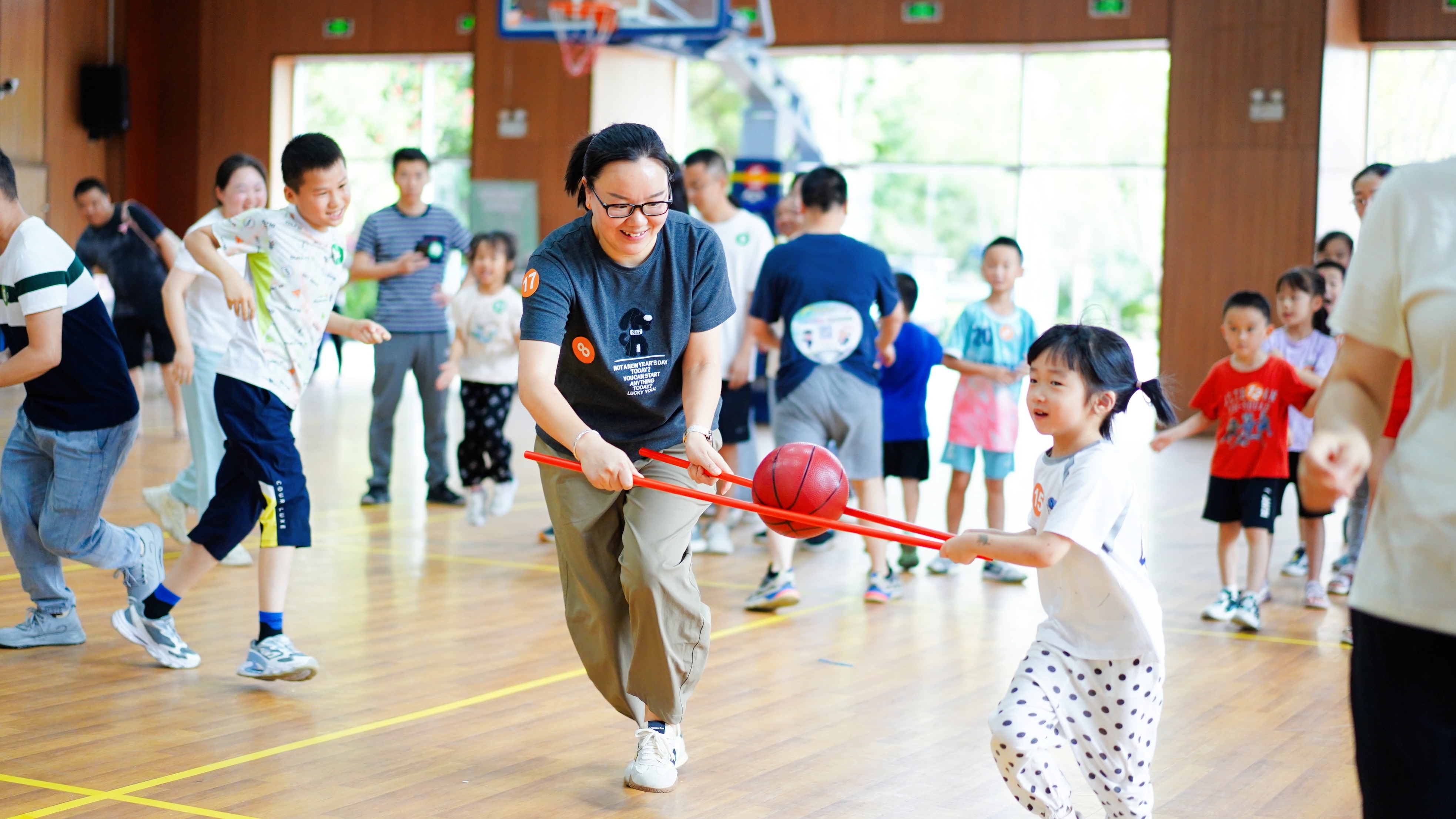 小赛码编程机构带来的机器狗表演率先登场,智能机器狗随着音乐灵活转圈、精准跳跃,引得孩子们阵阵欢呼。“跳跃吧 袋鼠!”环节中,家长与孩子套上毛茸茸的袋鼠装备,蹦跳着完成接力,笨拙又可爱的姿态让围观群众忍俊不禁;“摸石过河”考验着亲子间的无声默契,两人踩着有限的“石块”交替前行,每一步都凝聚着眼神交流与节奏把控;“运球挑战”里,亲子搭档手举长杆平稳托球,既要速度又需稳健,稍有不慎便会前功尽弃;最令人捧腹的当属“赶鸡快跑”,家庭成员们围着彩色气球扮演的“小鸡”手忙脚乱地驱赶,尖叫声与欢笑声此起彼伏;“稳扎稳打”环节中,家长背着竹篓灵活转身接球,孩子站在指定线后瞄准投掷,一个个精准命中的瞬间总能引爆全场掌声。