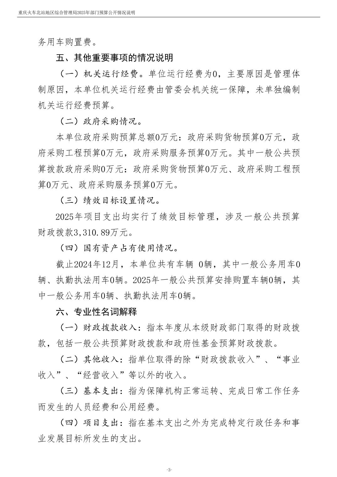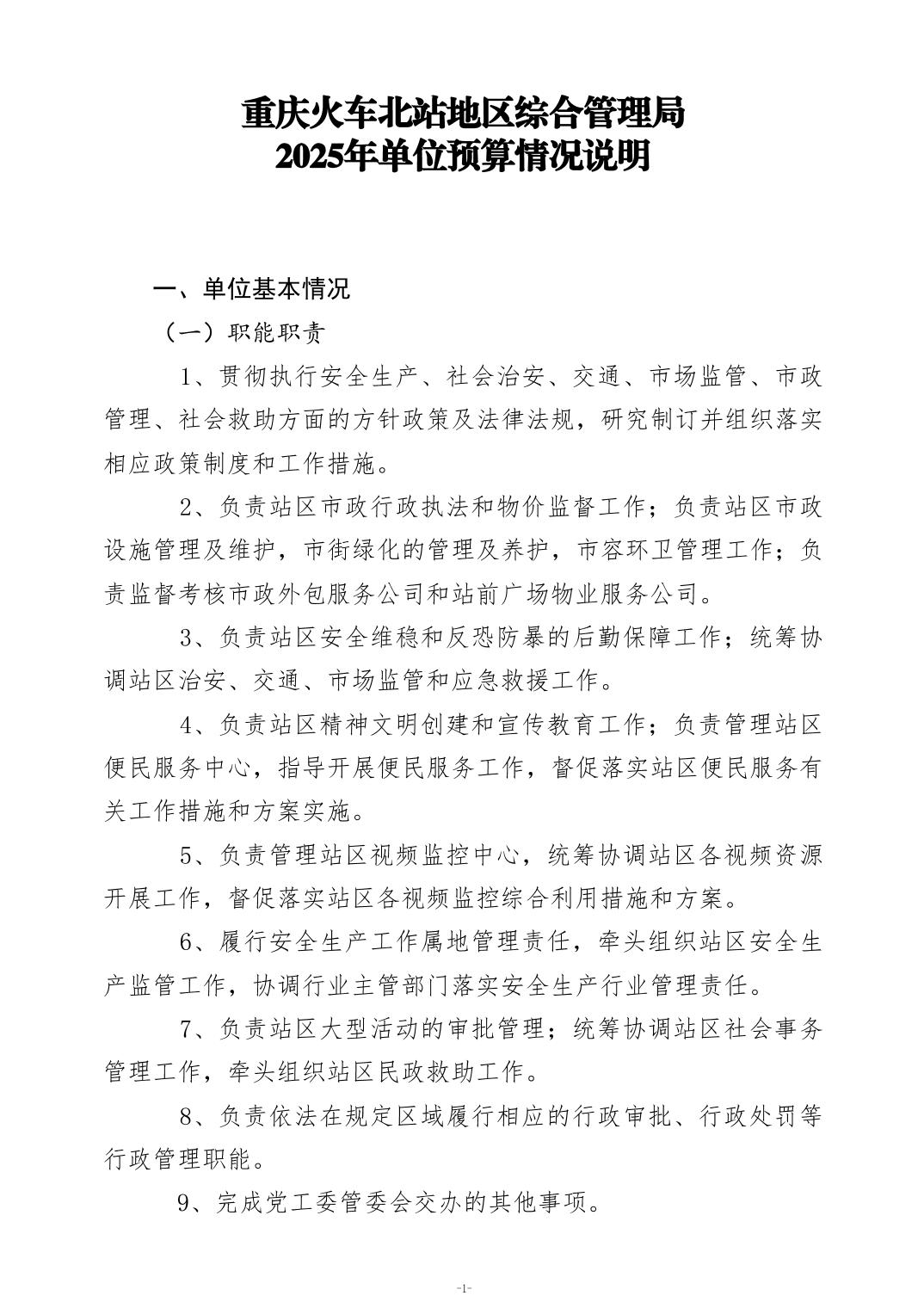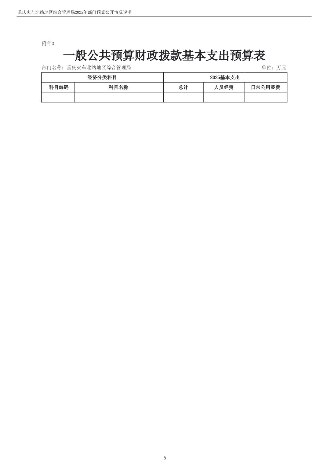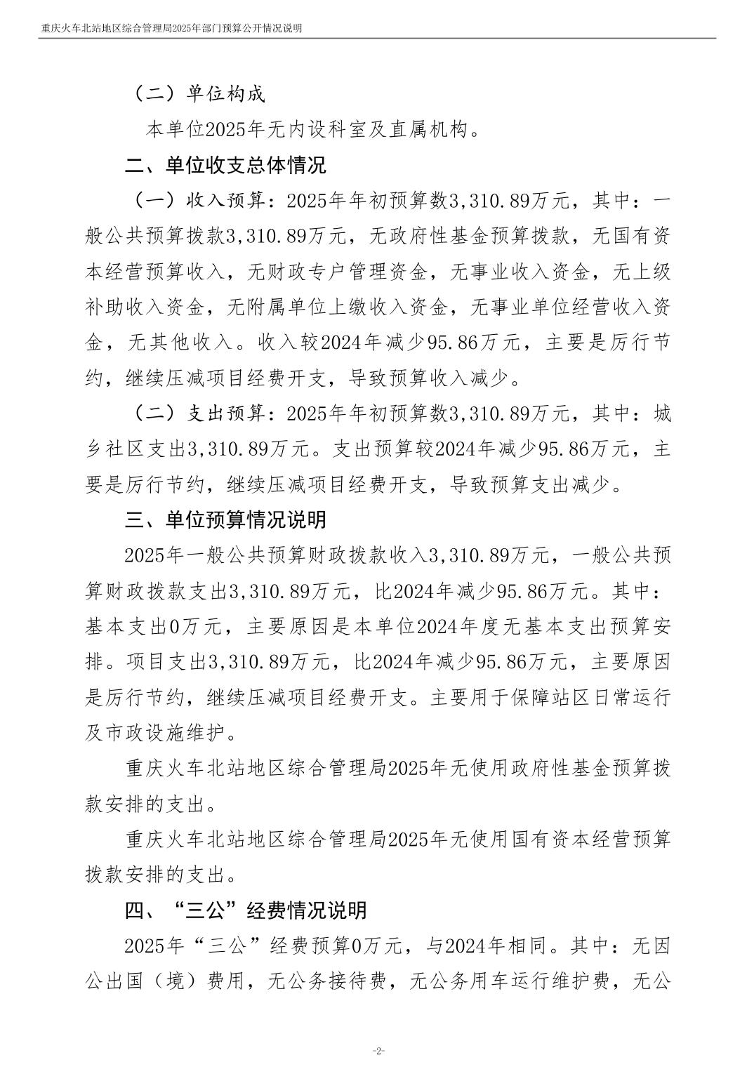 重庆火车北站地区综合管理局2025年部门预算情况说明