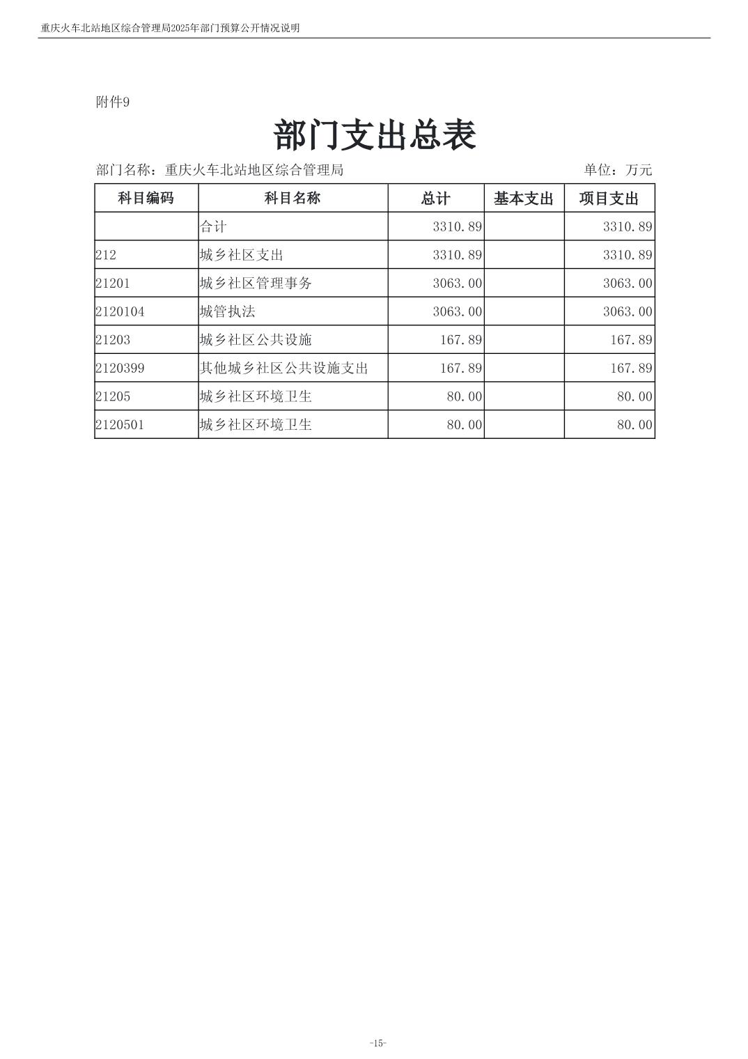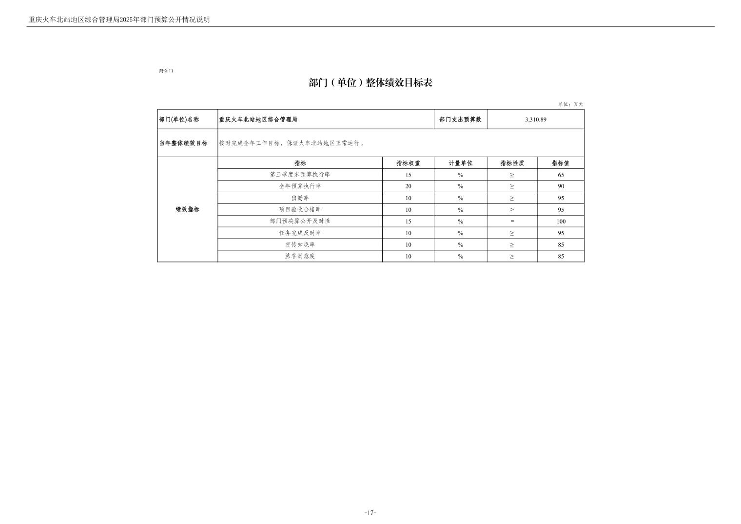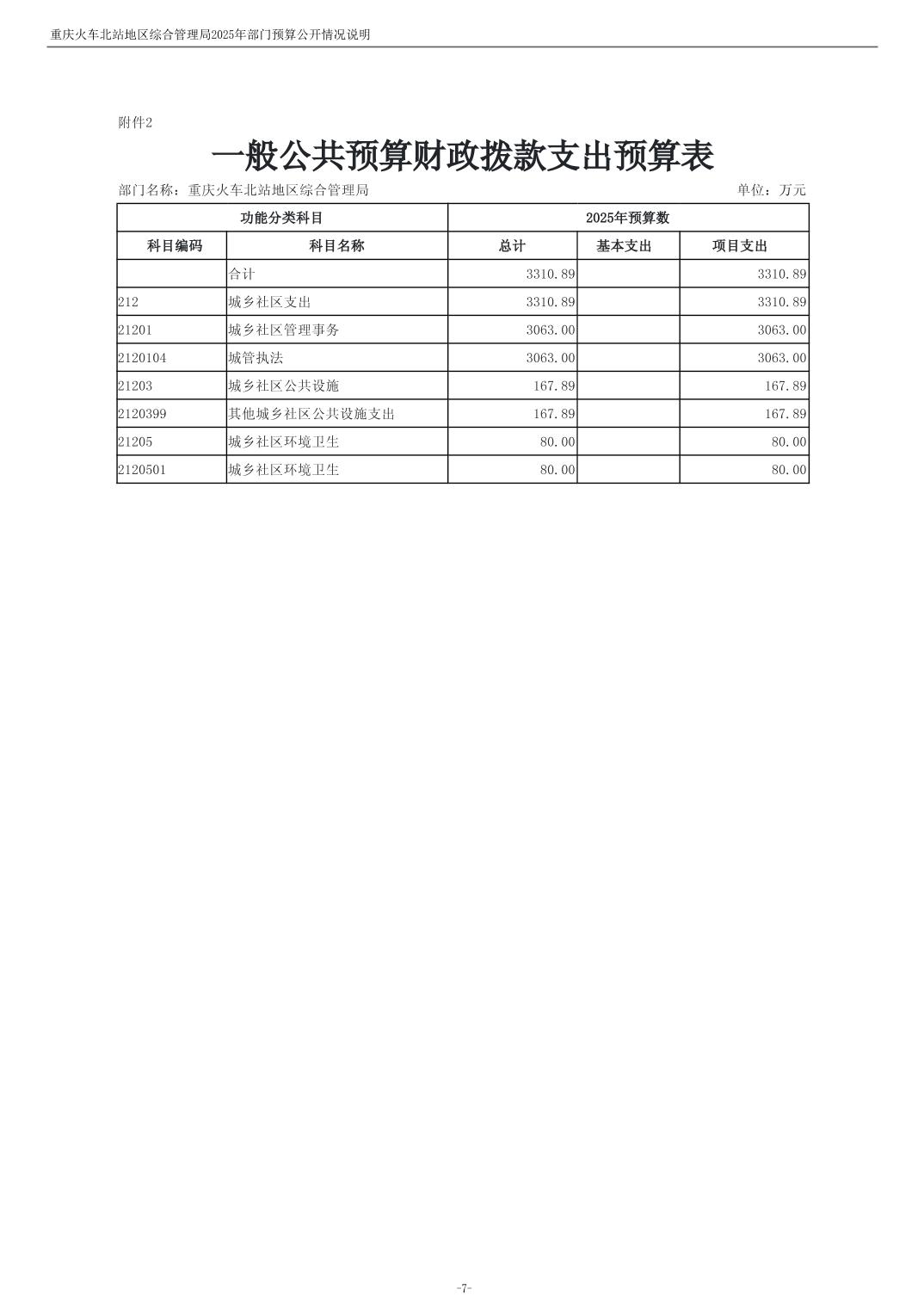 重庆火车北站地区综合管理局2025年部门预算情况说明