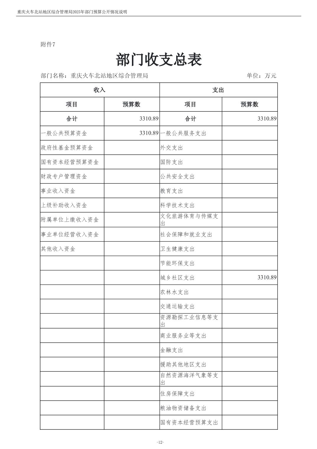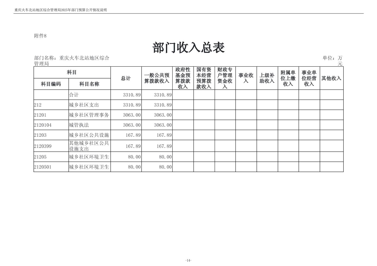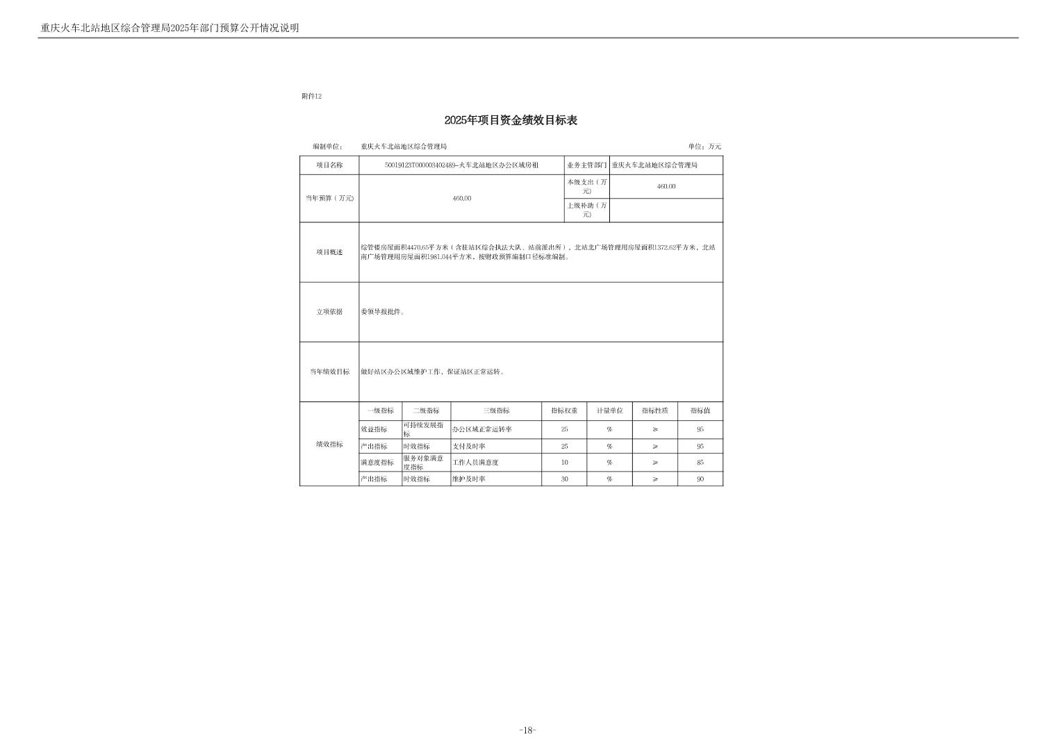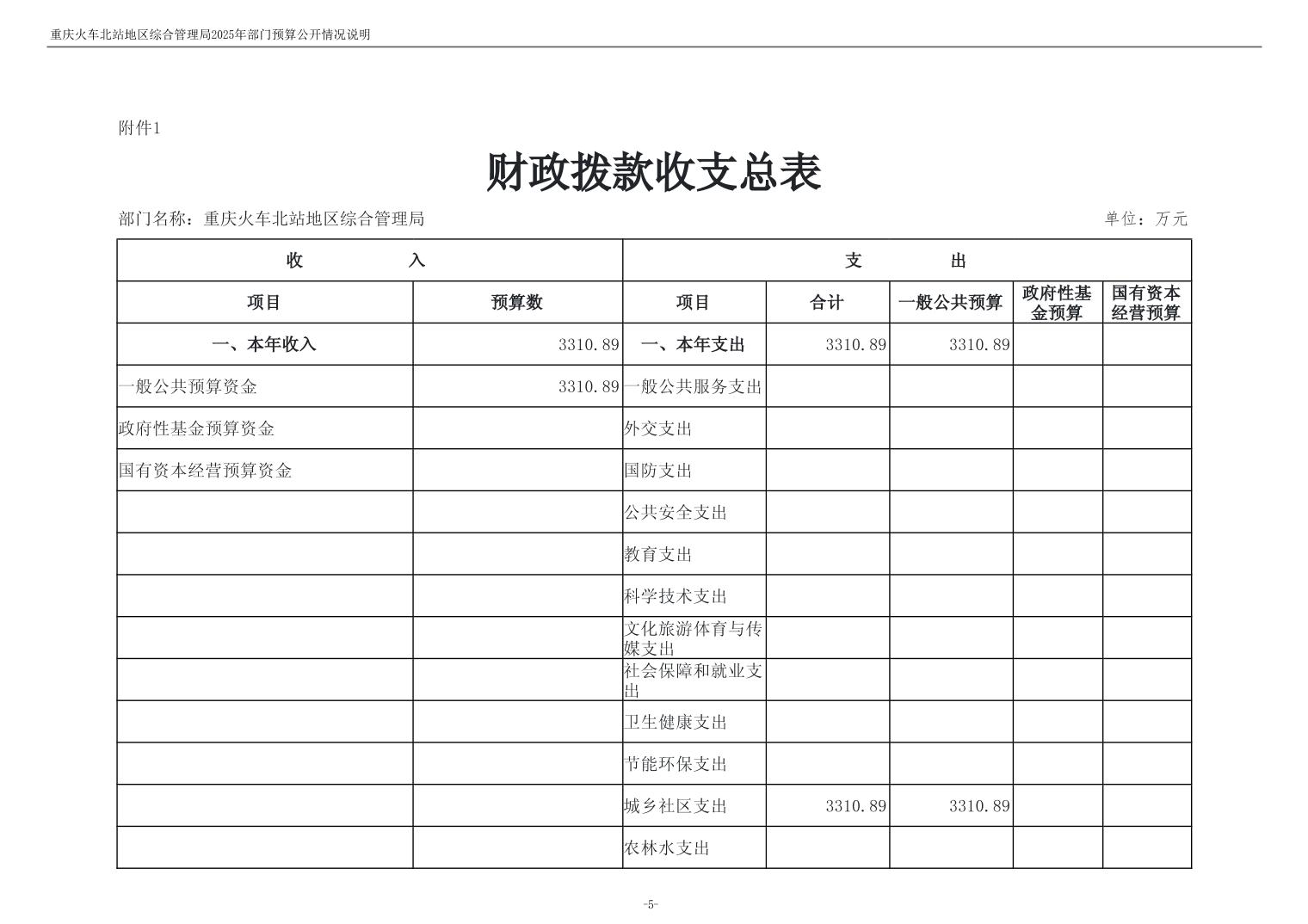 重庆火车北站地区综合管理局2025年部门预算情况说明