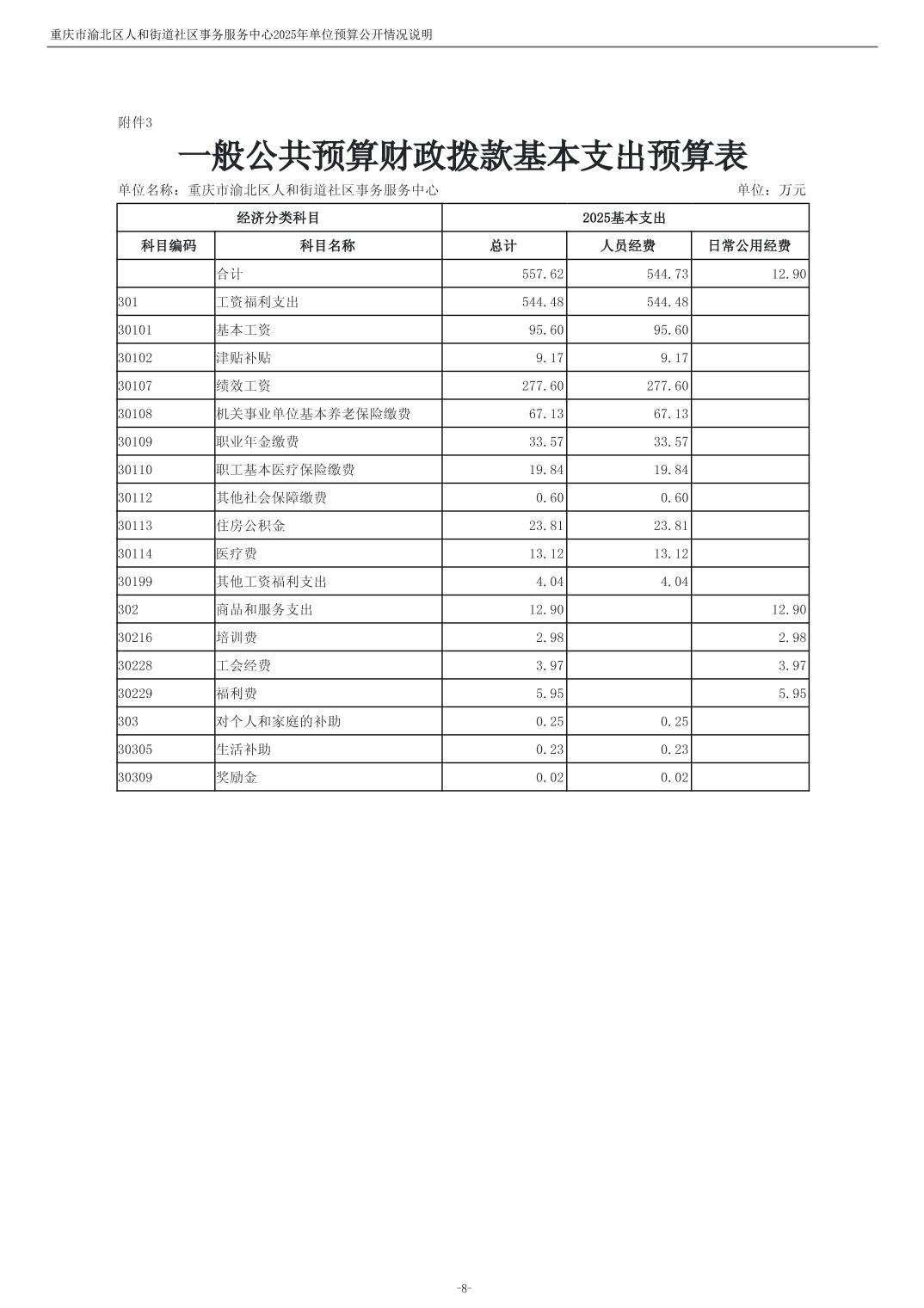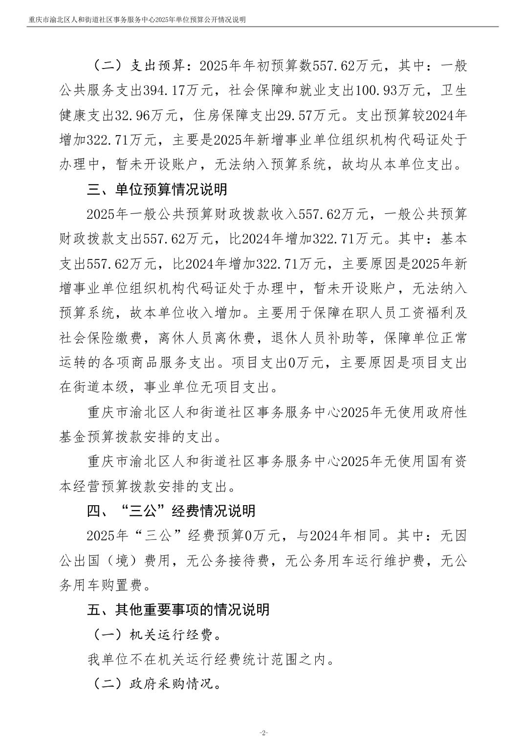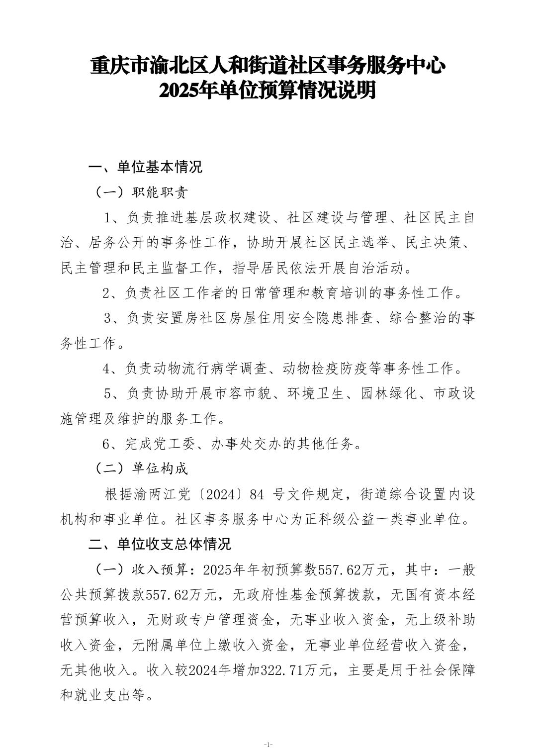 重庆市渝北区人和街道社区事务服务中心2025年单位预算情况说明