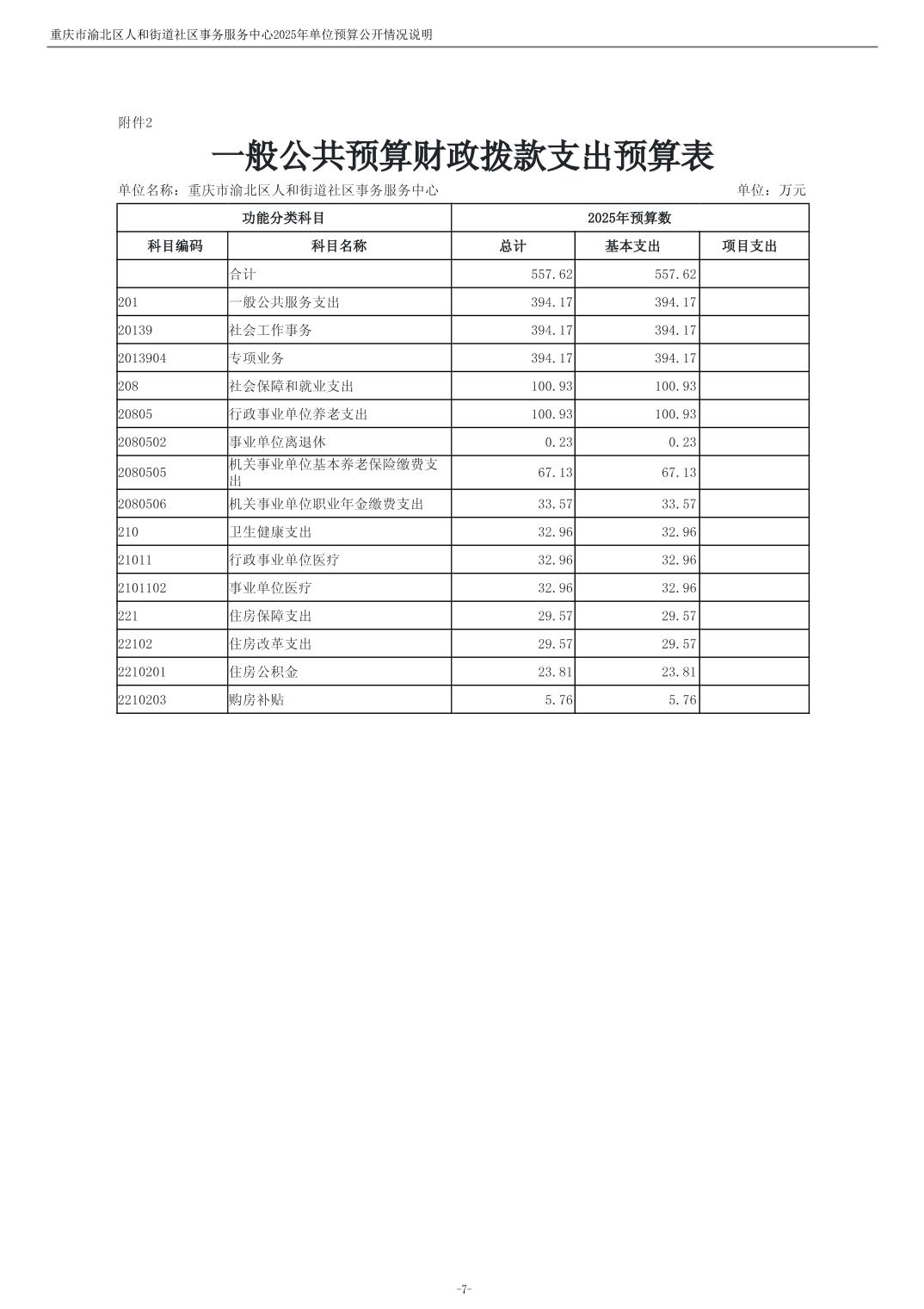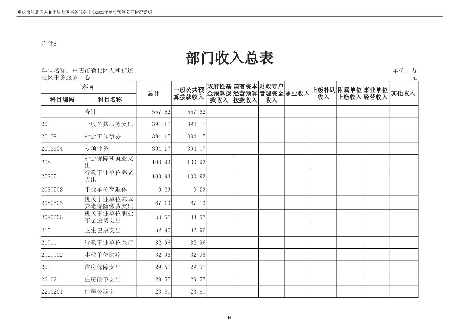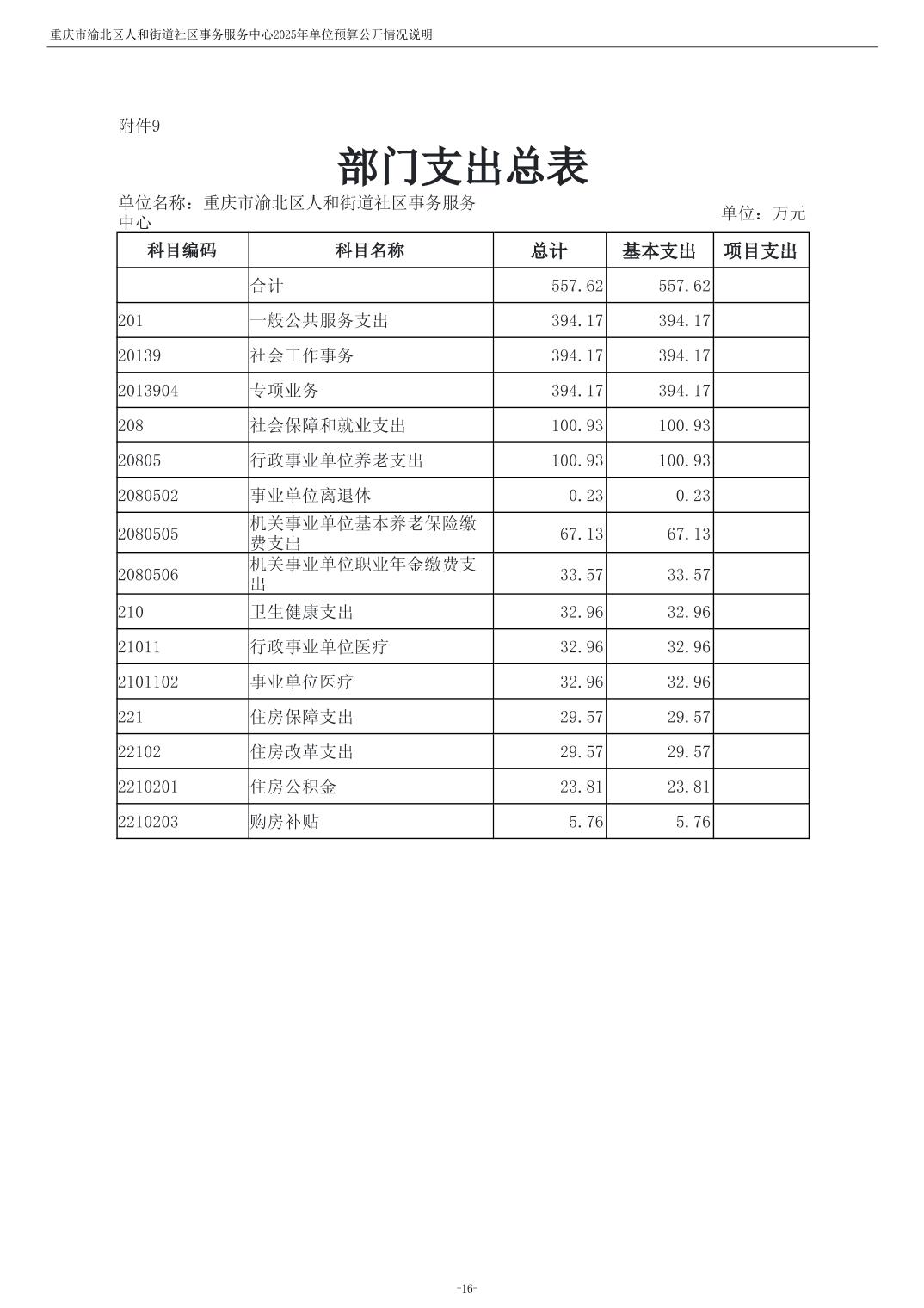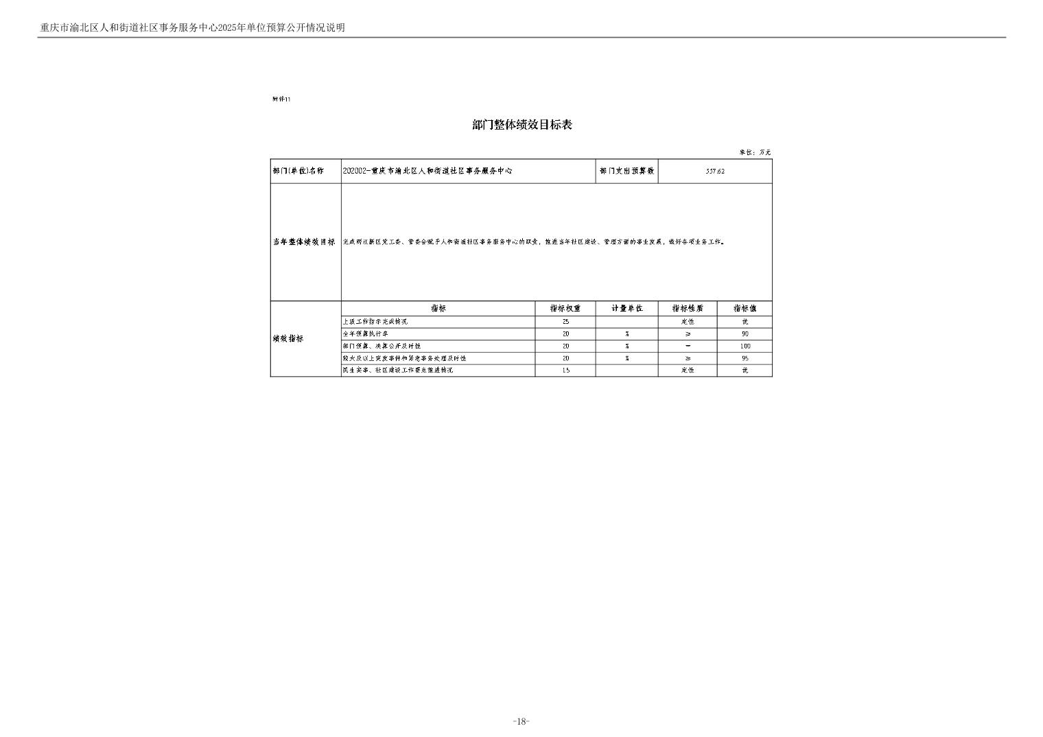 重庆市渝北区人和街道社区事务服务中心2025年单位预算情况说明