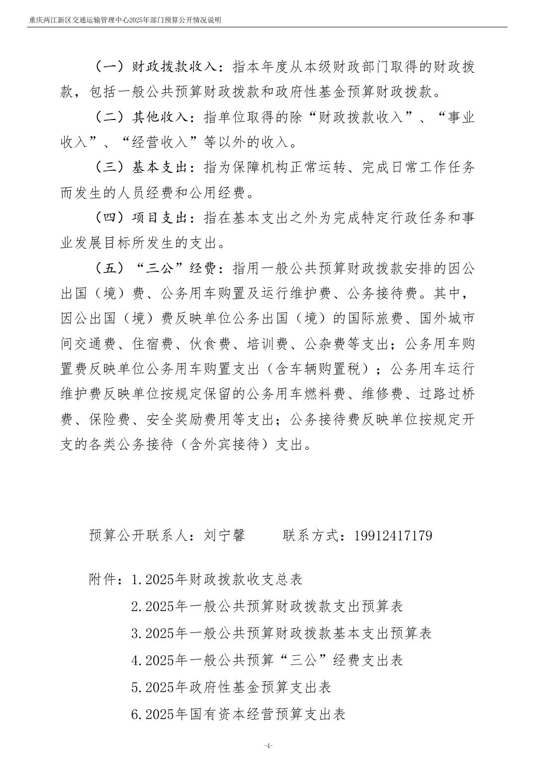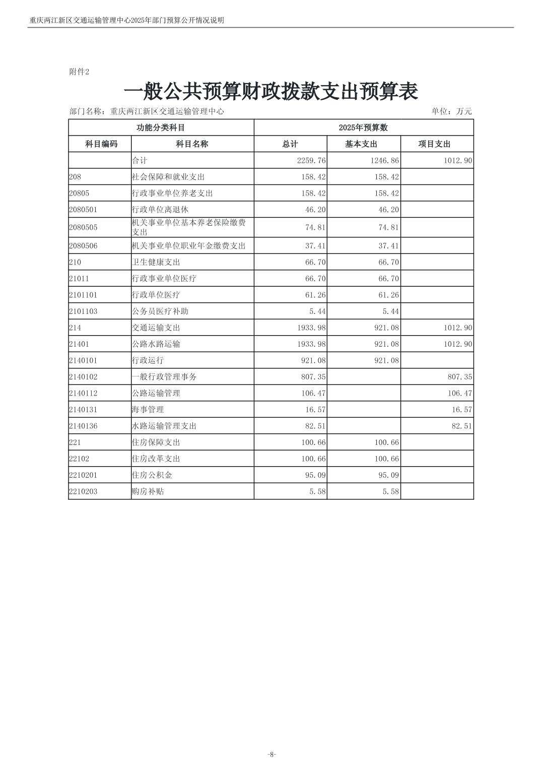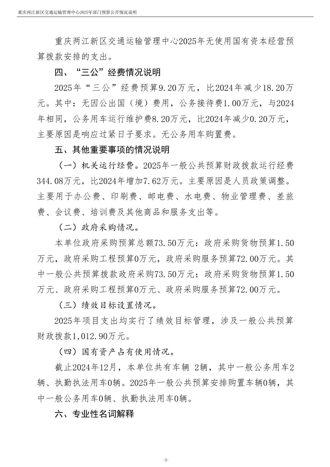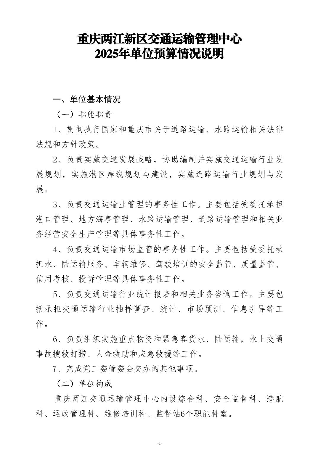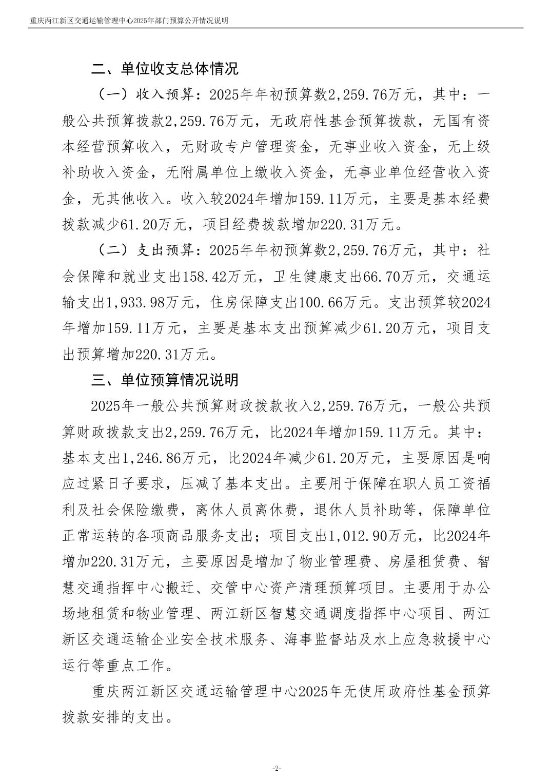 重庆两江新区交通运输管理中心2025年单位预算情况说明