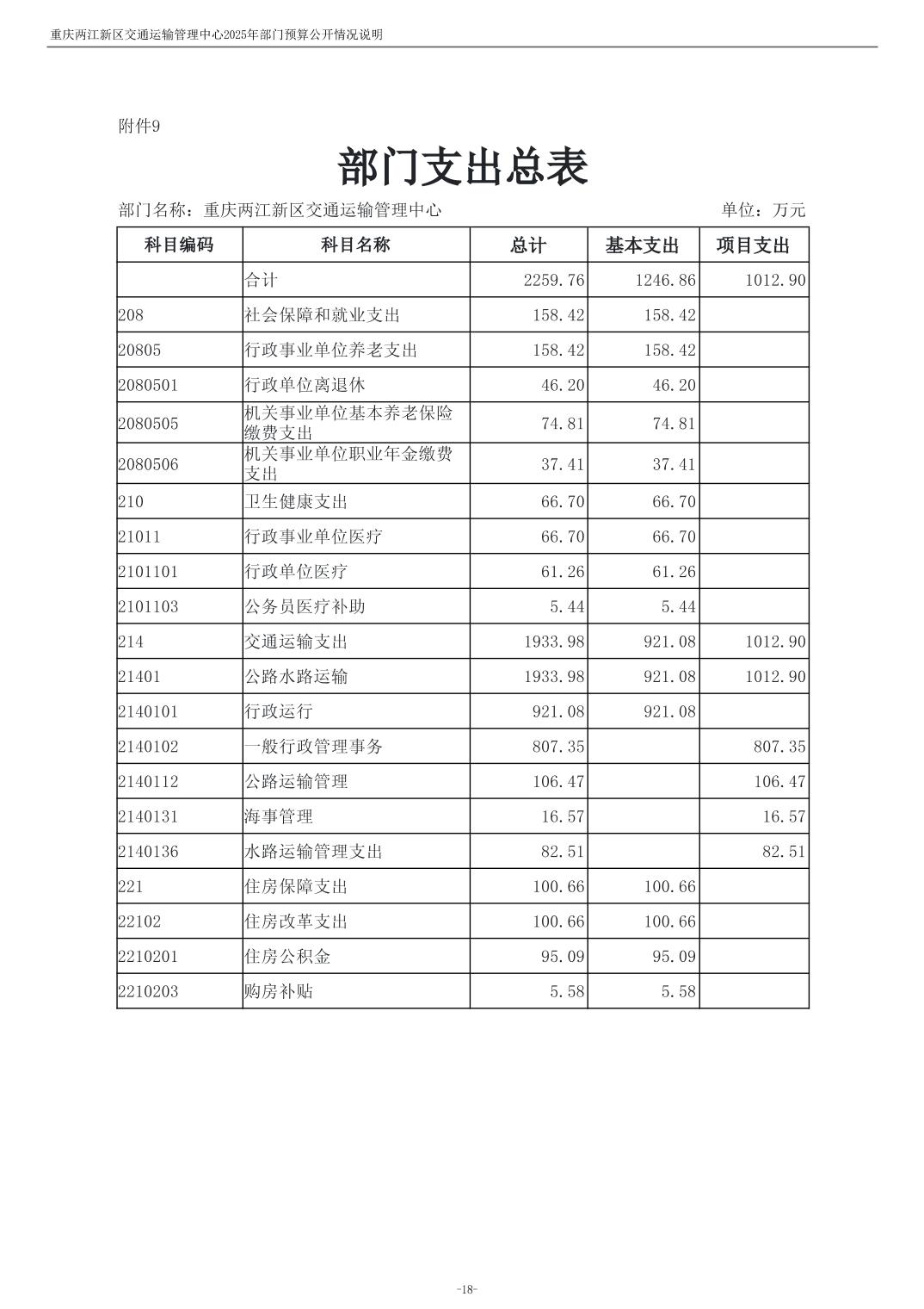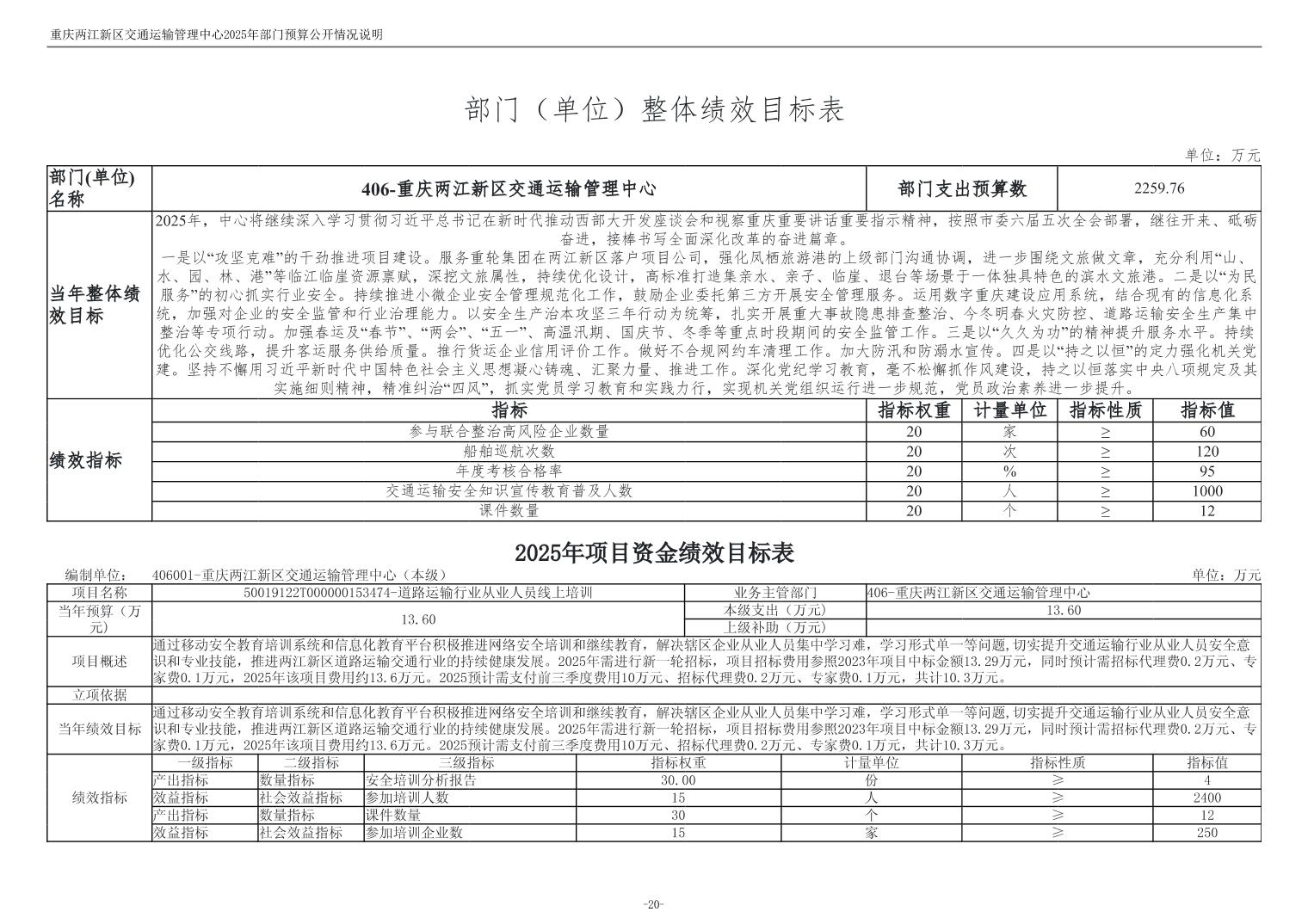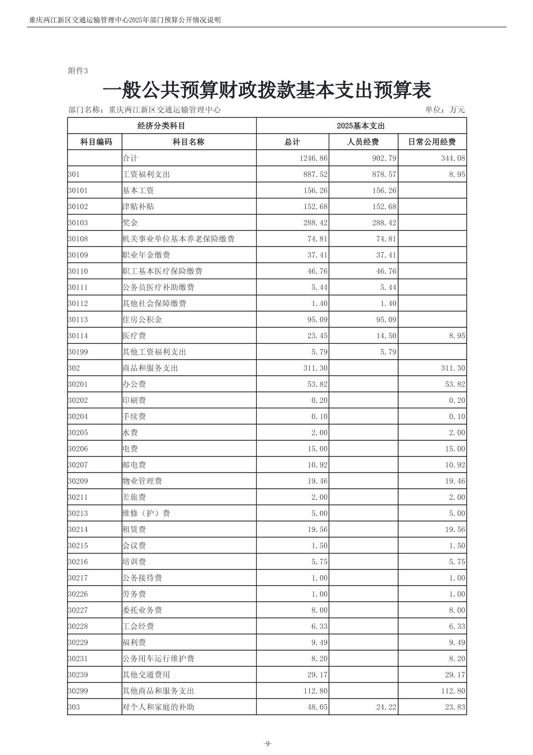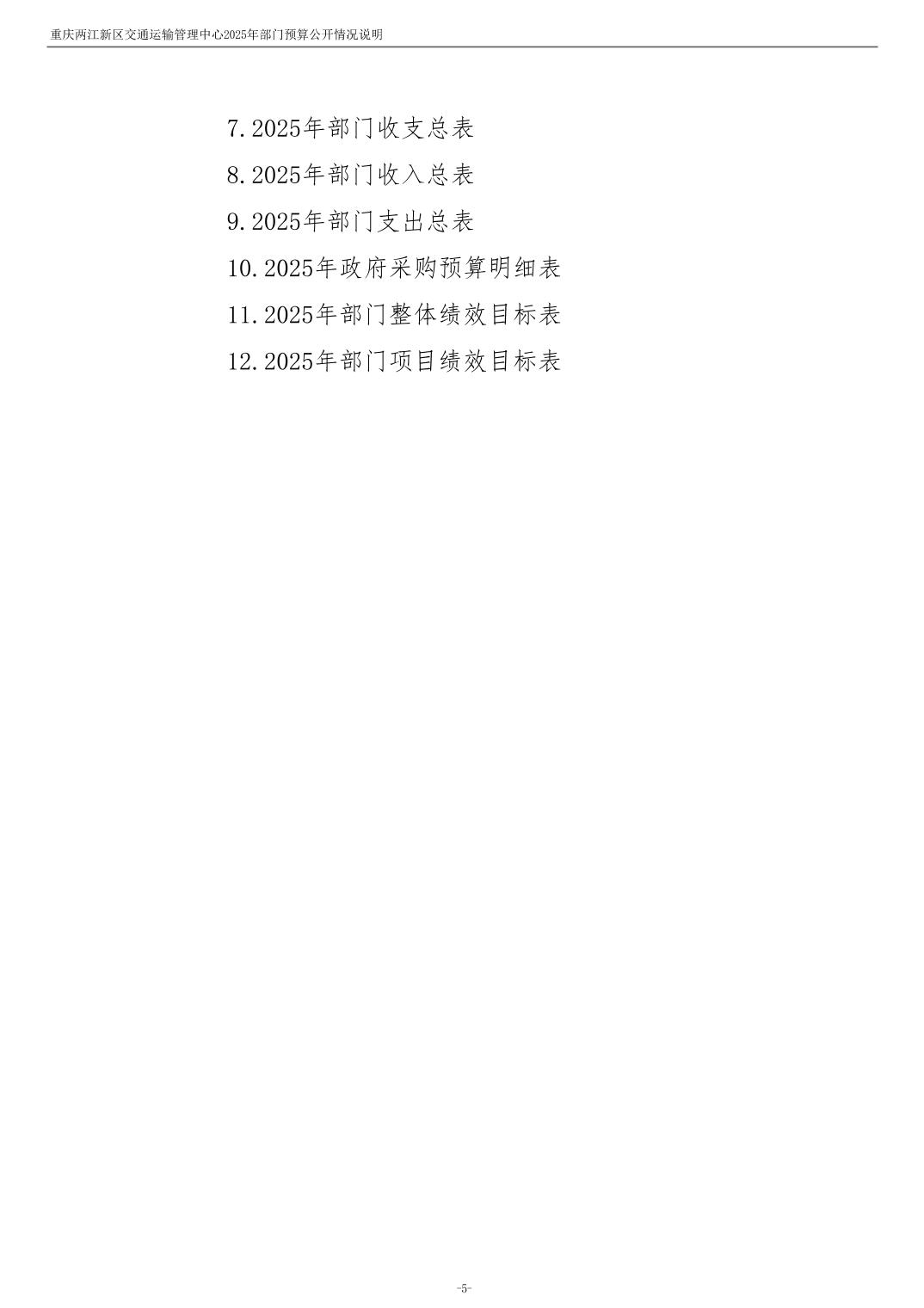 重庆两江新区交通运输管理中心2025年单位预算情况说明