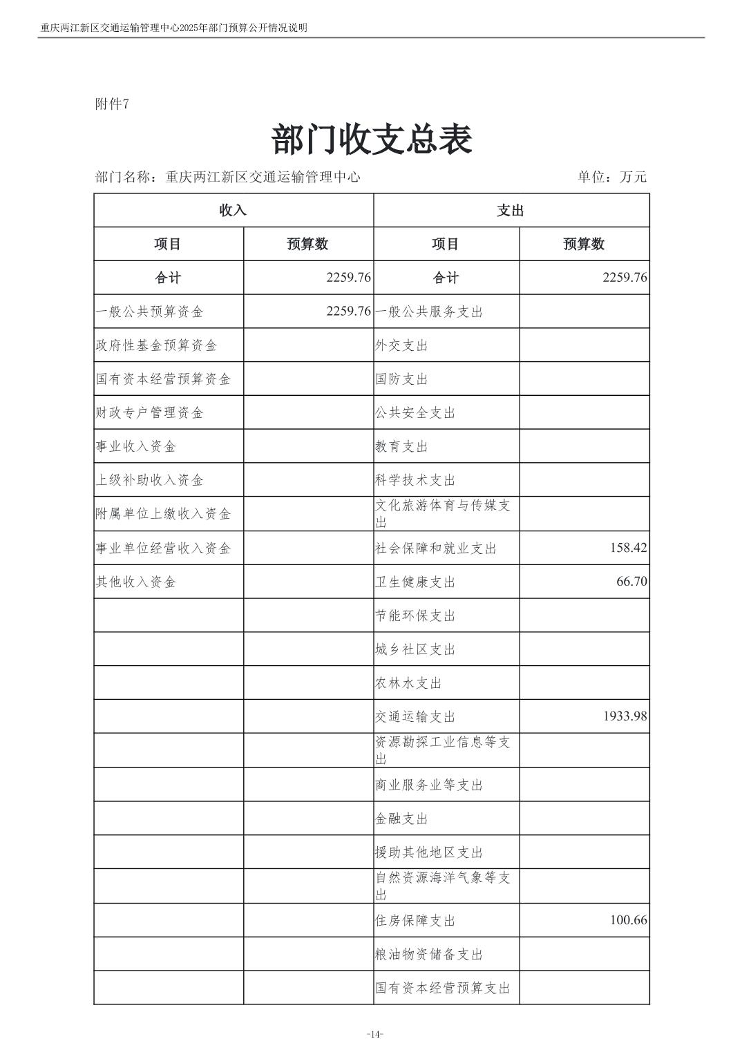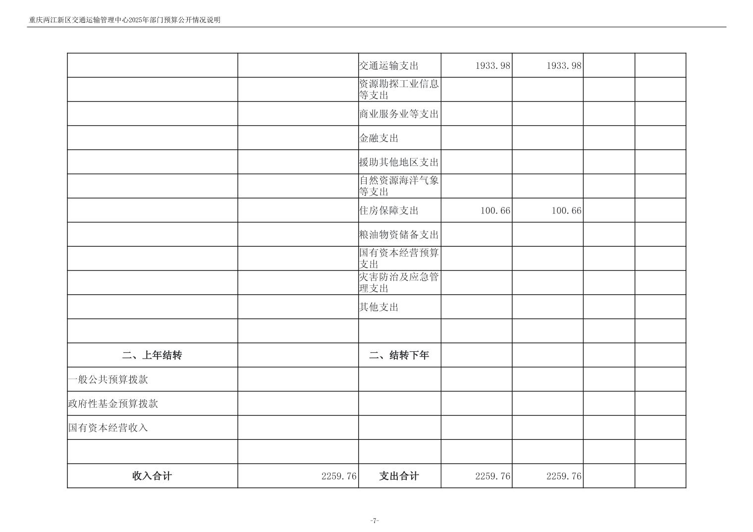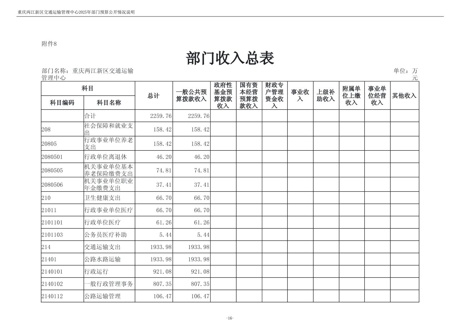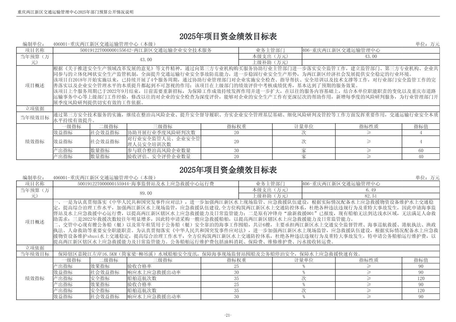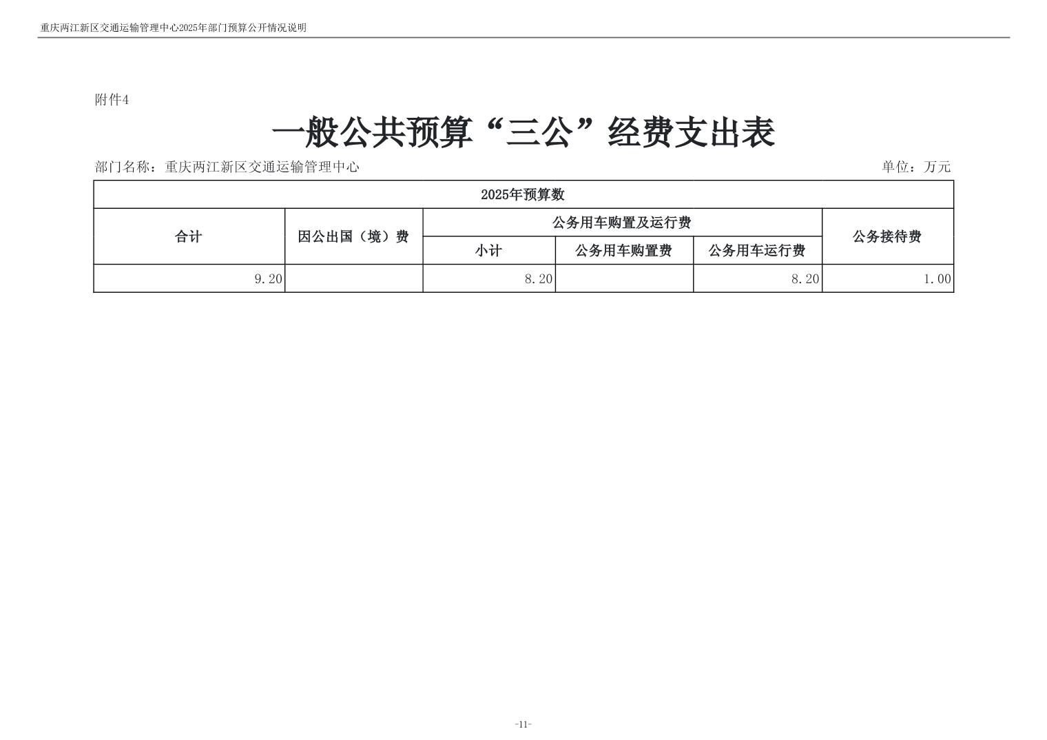 重庆两江新区交通运输管理中心2025年单位预算情况说明