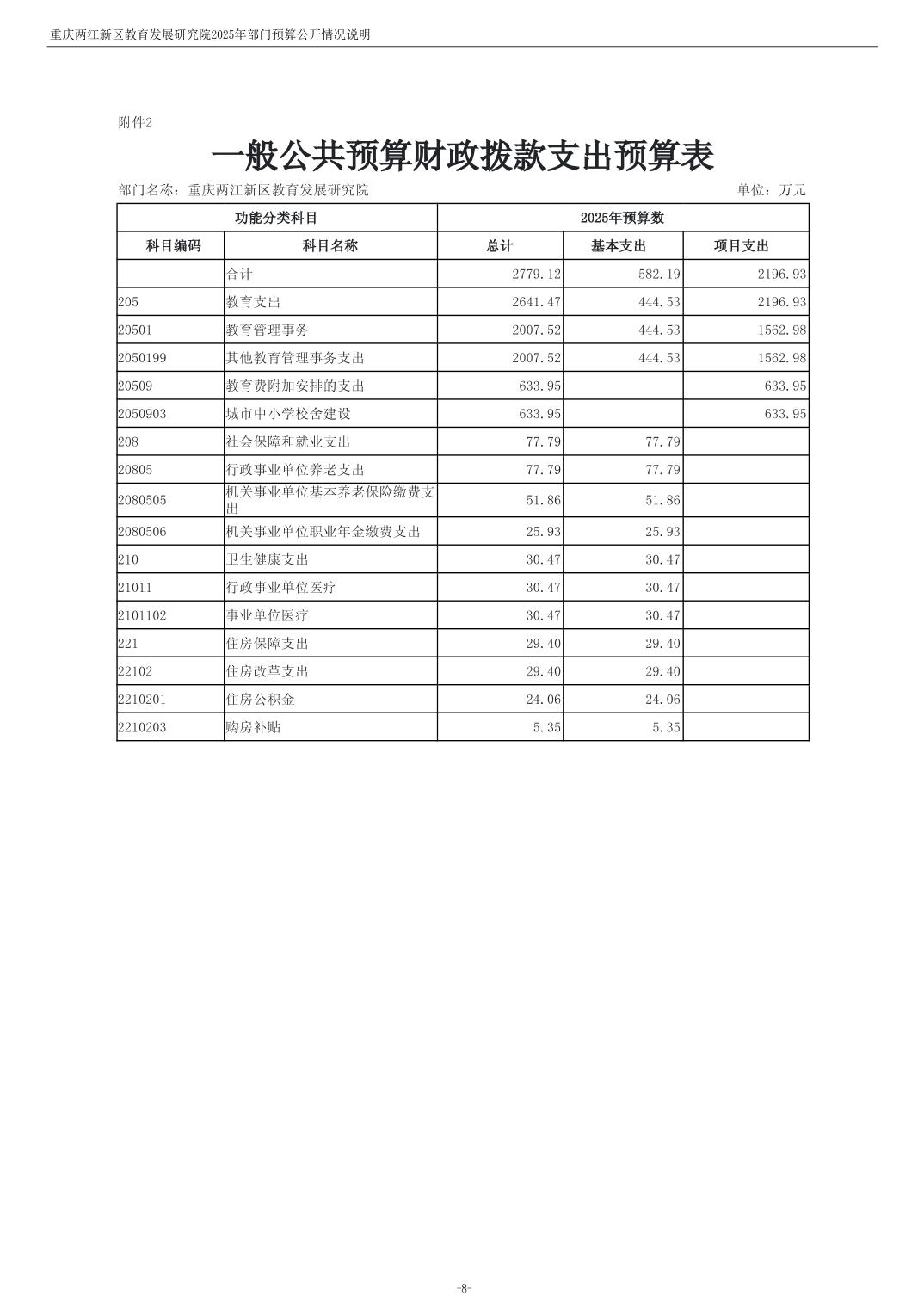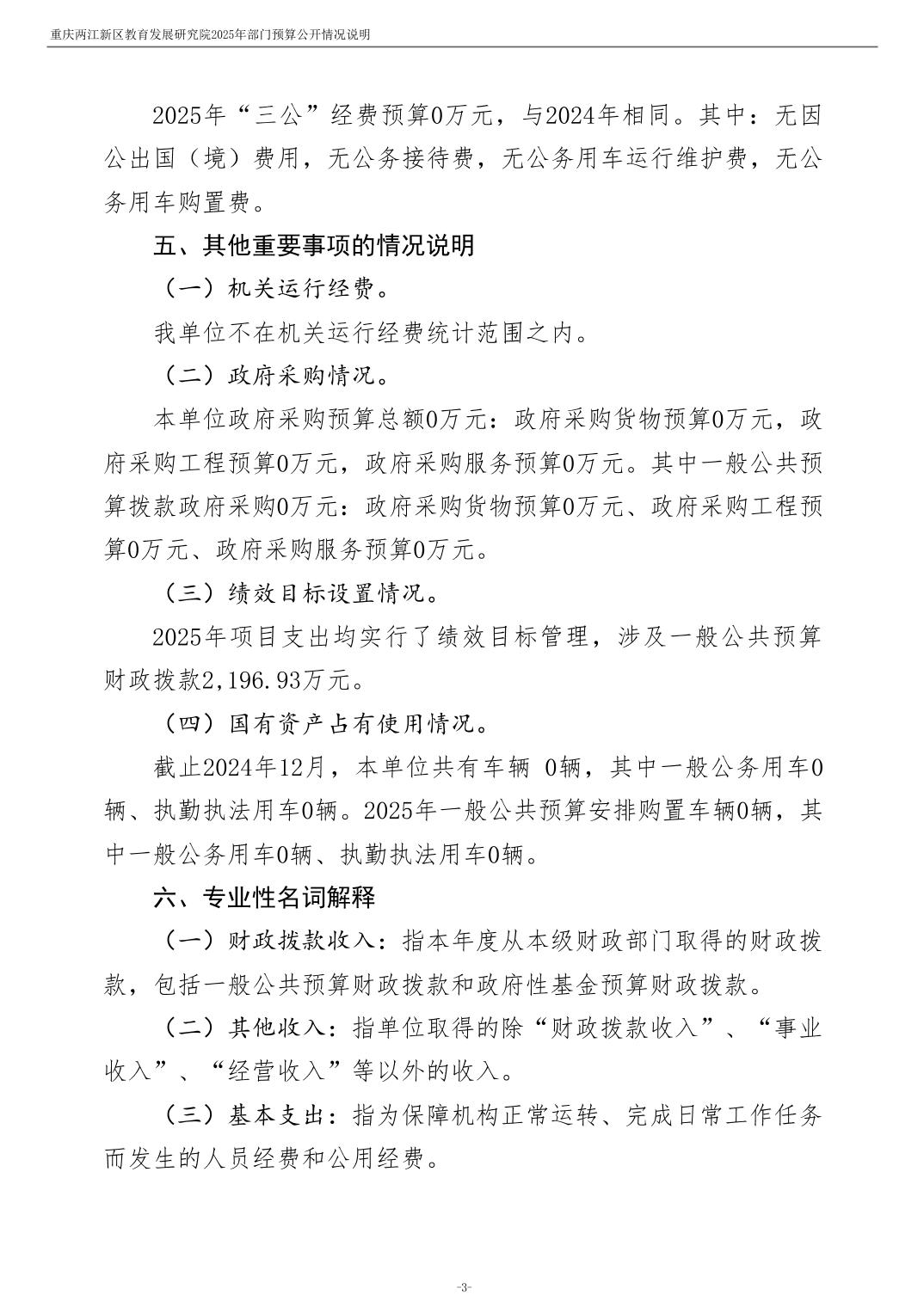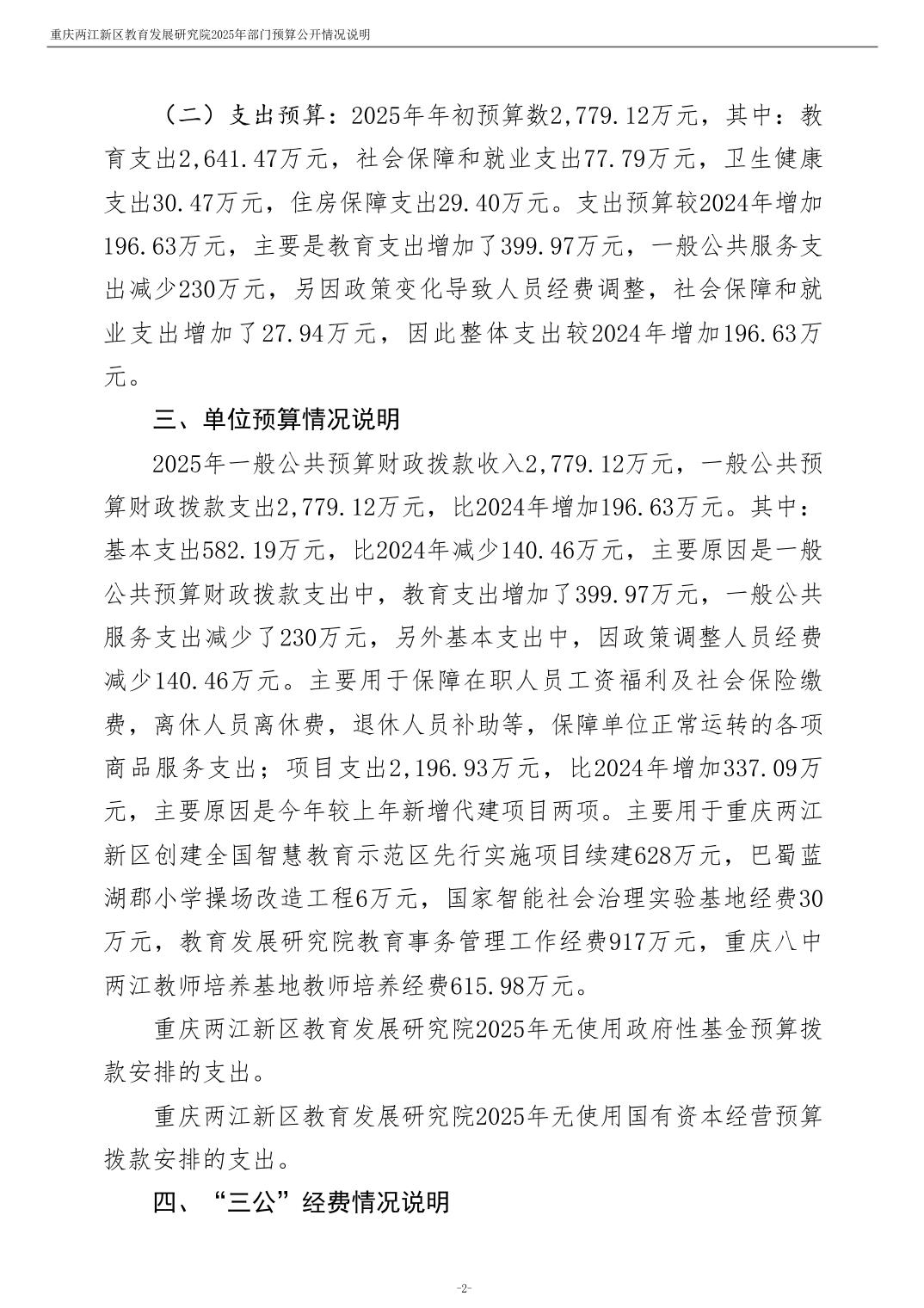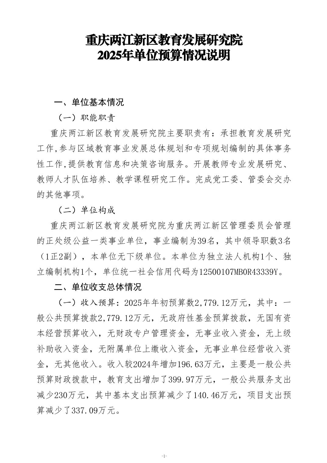 重庆两江新区教育发展研究院2025年单位预算情况说明