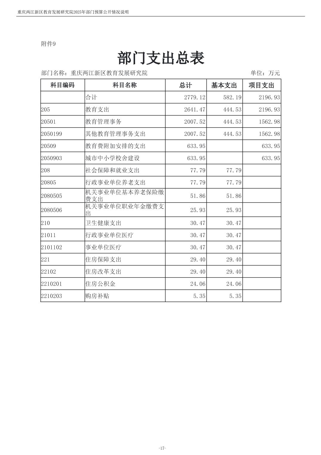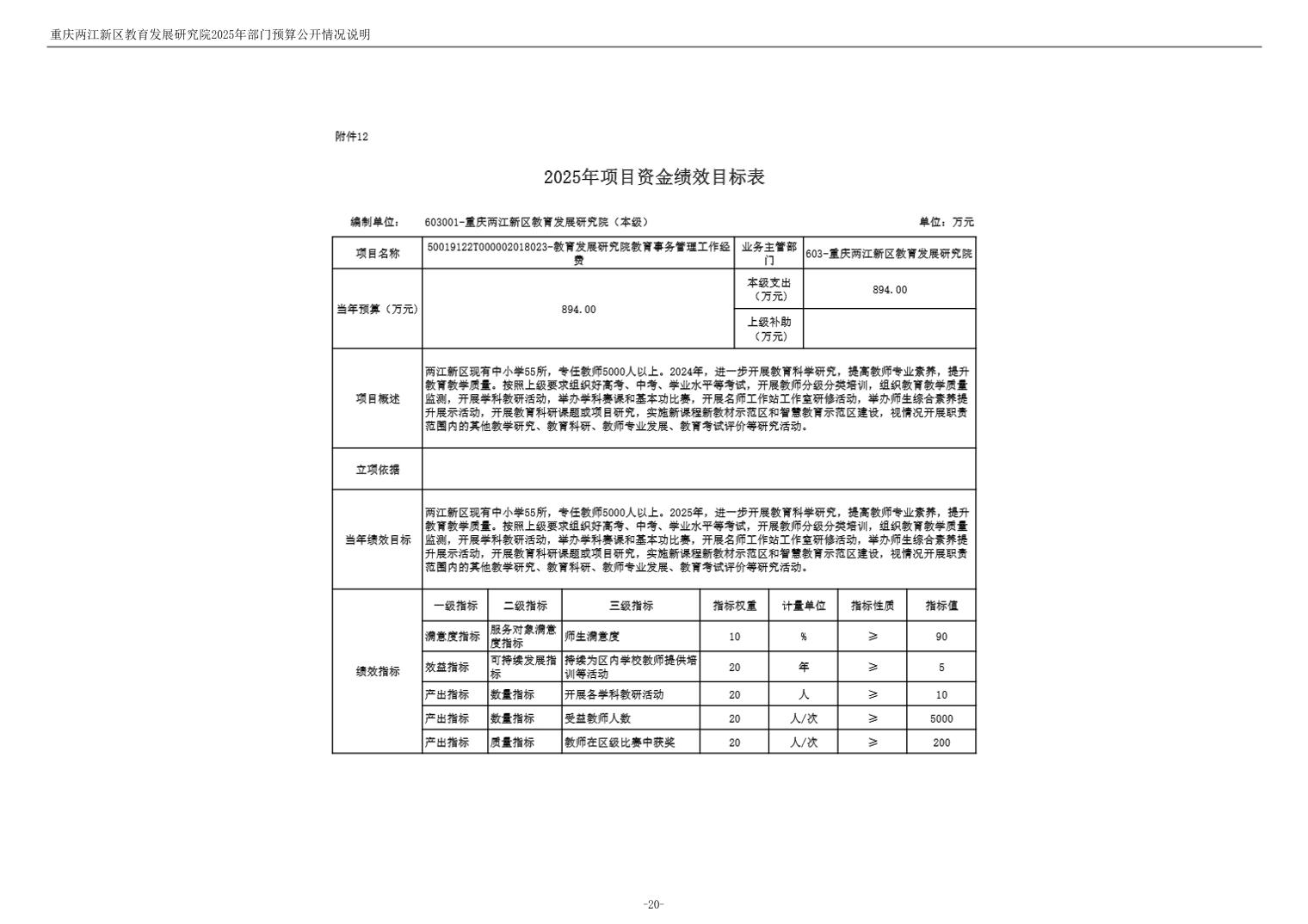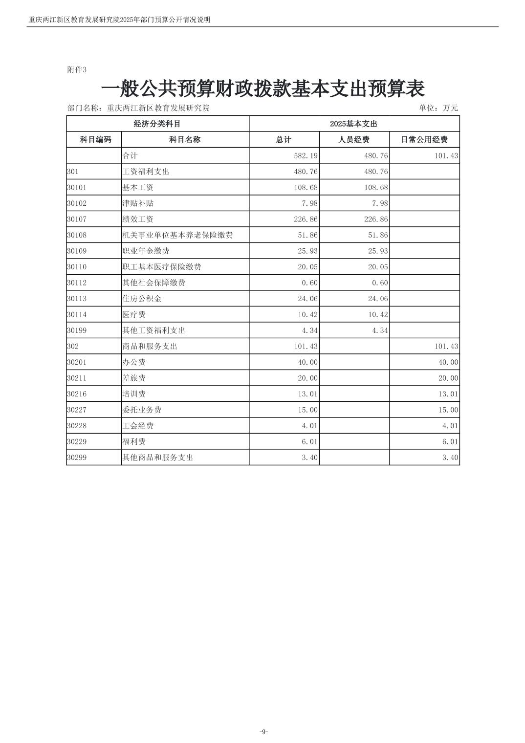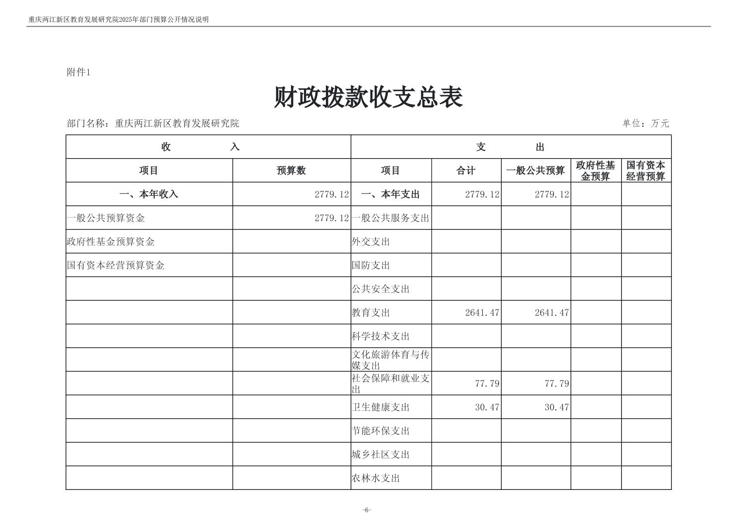 重庆两江新区教育发展研究院2025年单位预算情况说明