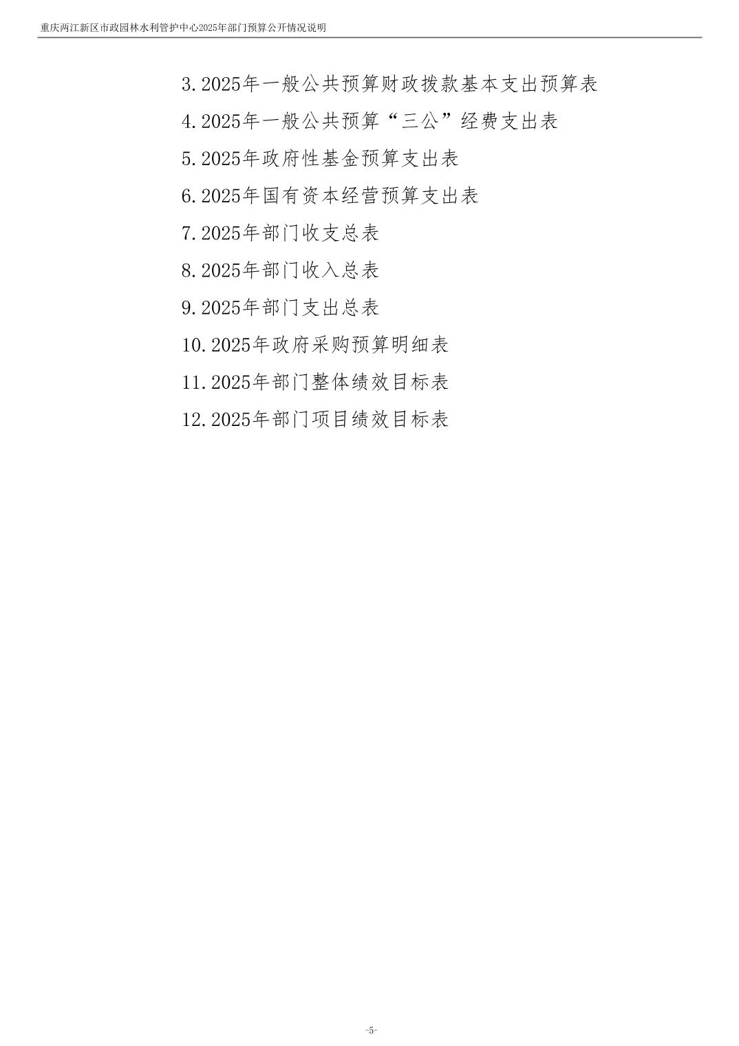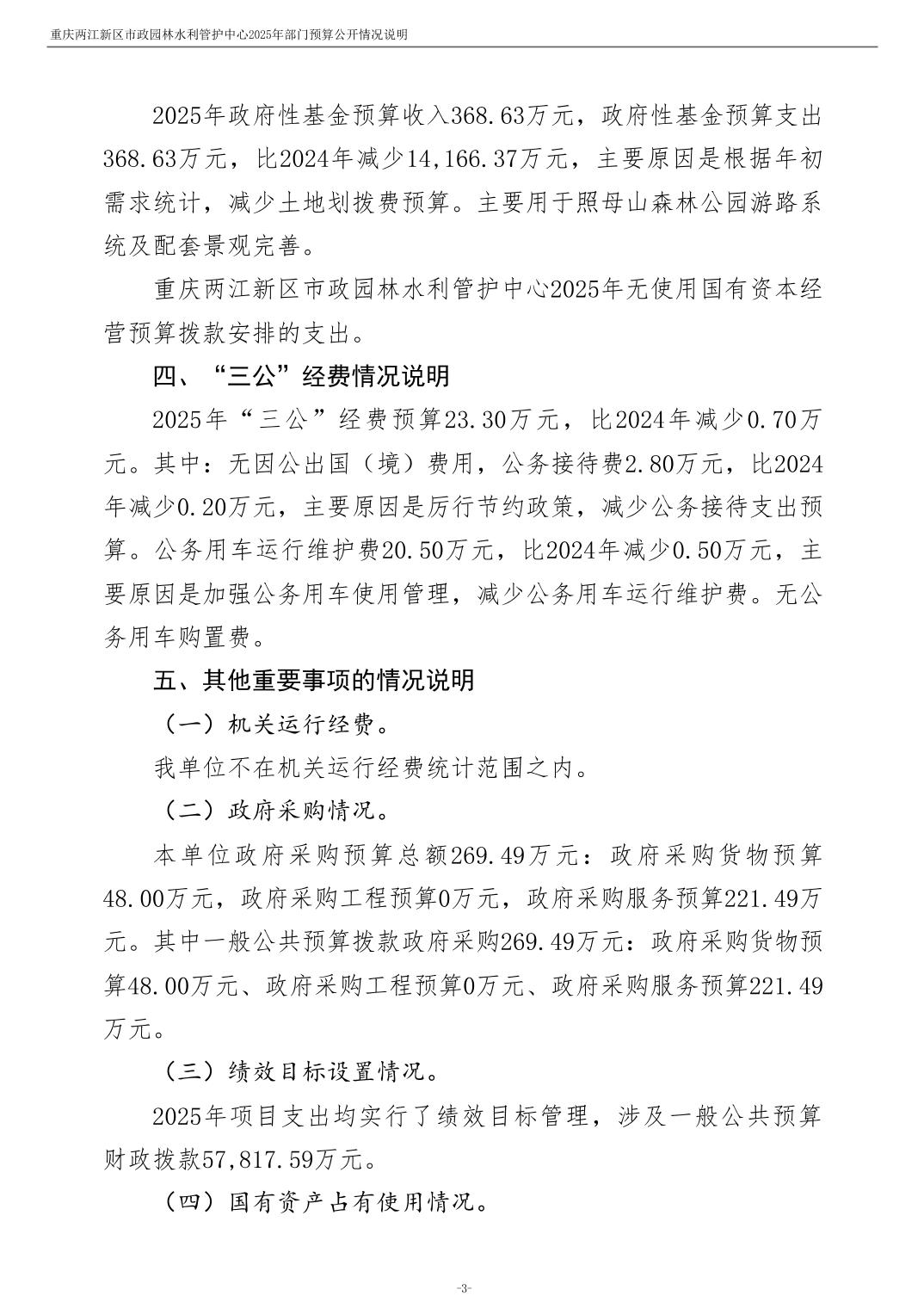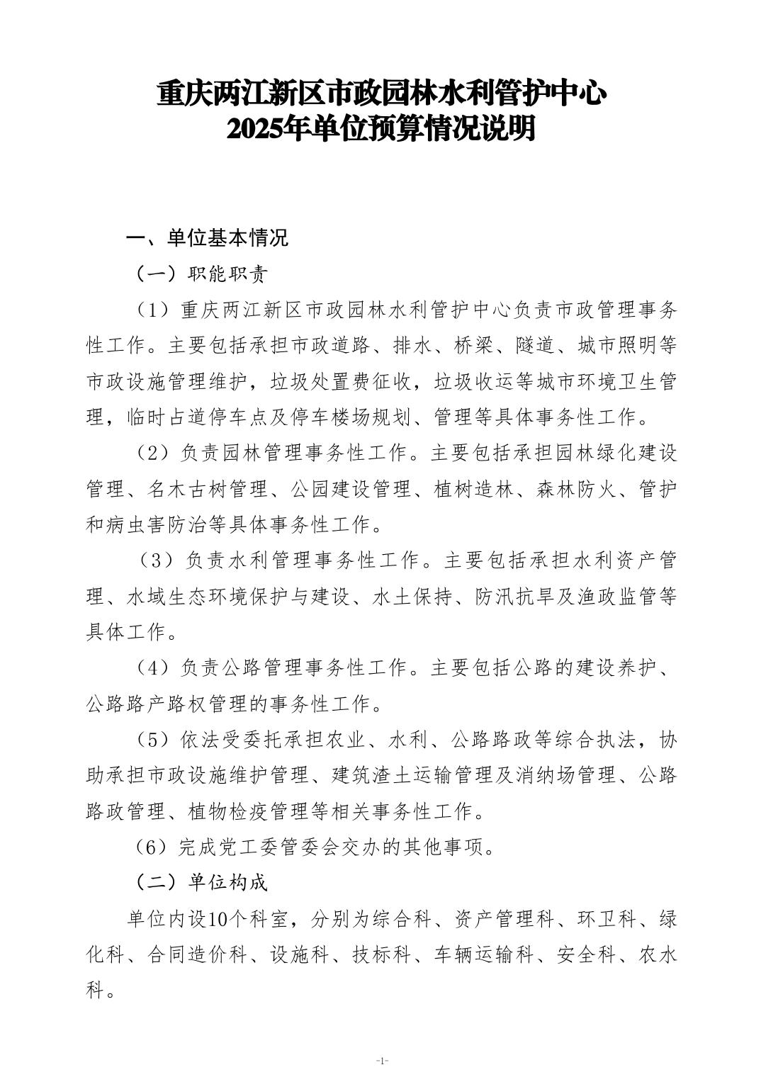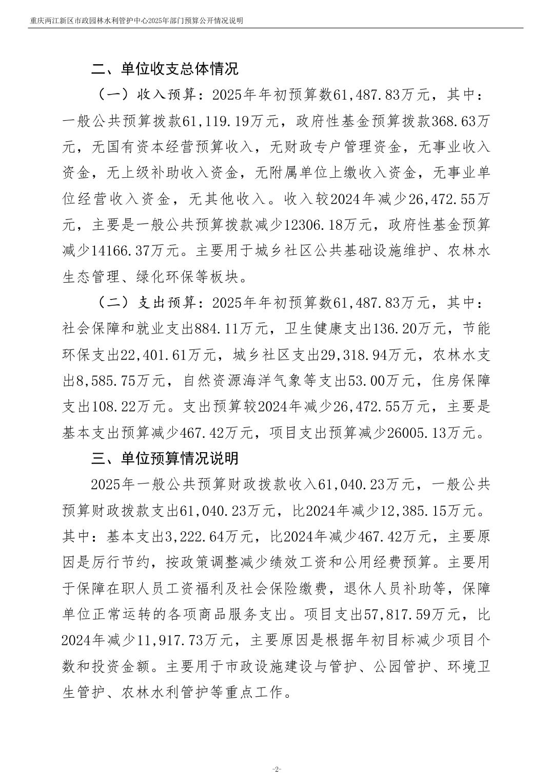 重庆两江新区市政园林水利管护中心2025年单位预算情况说明