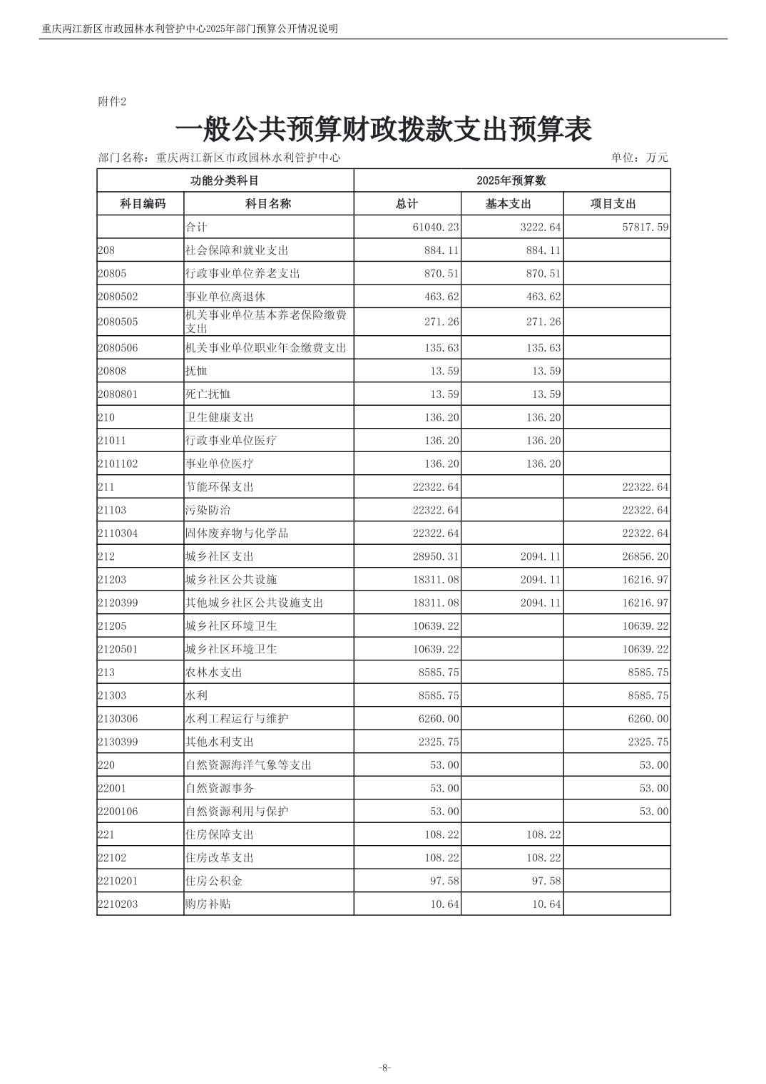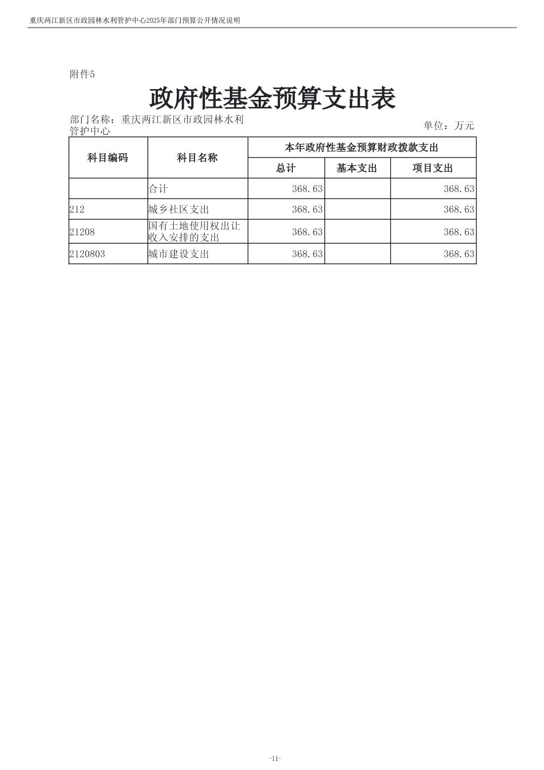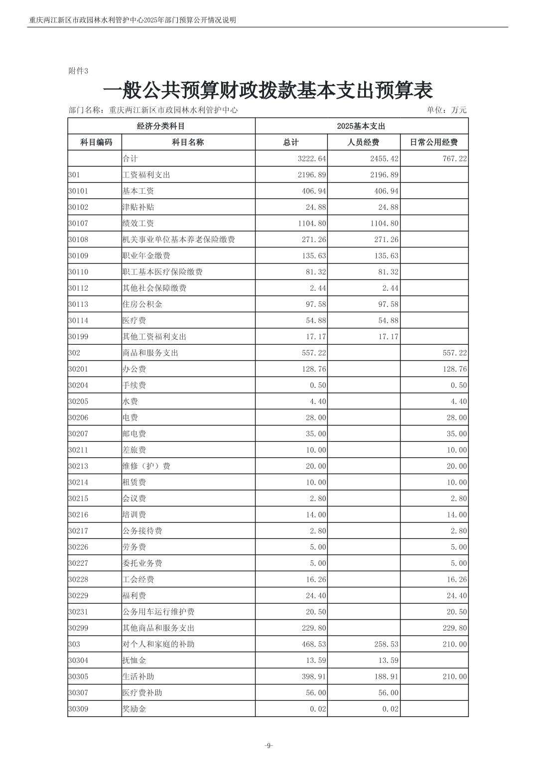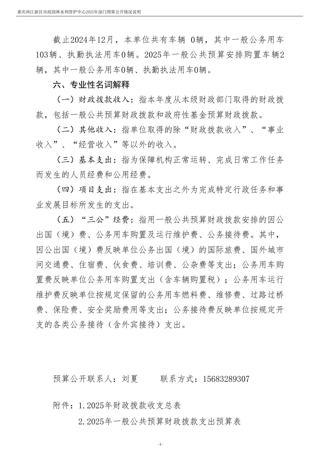 重庆两江新区市政园林水利管护中心2025年单位预算情况说明