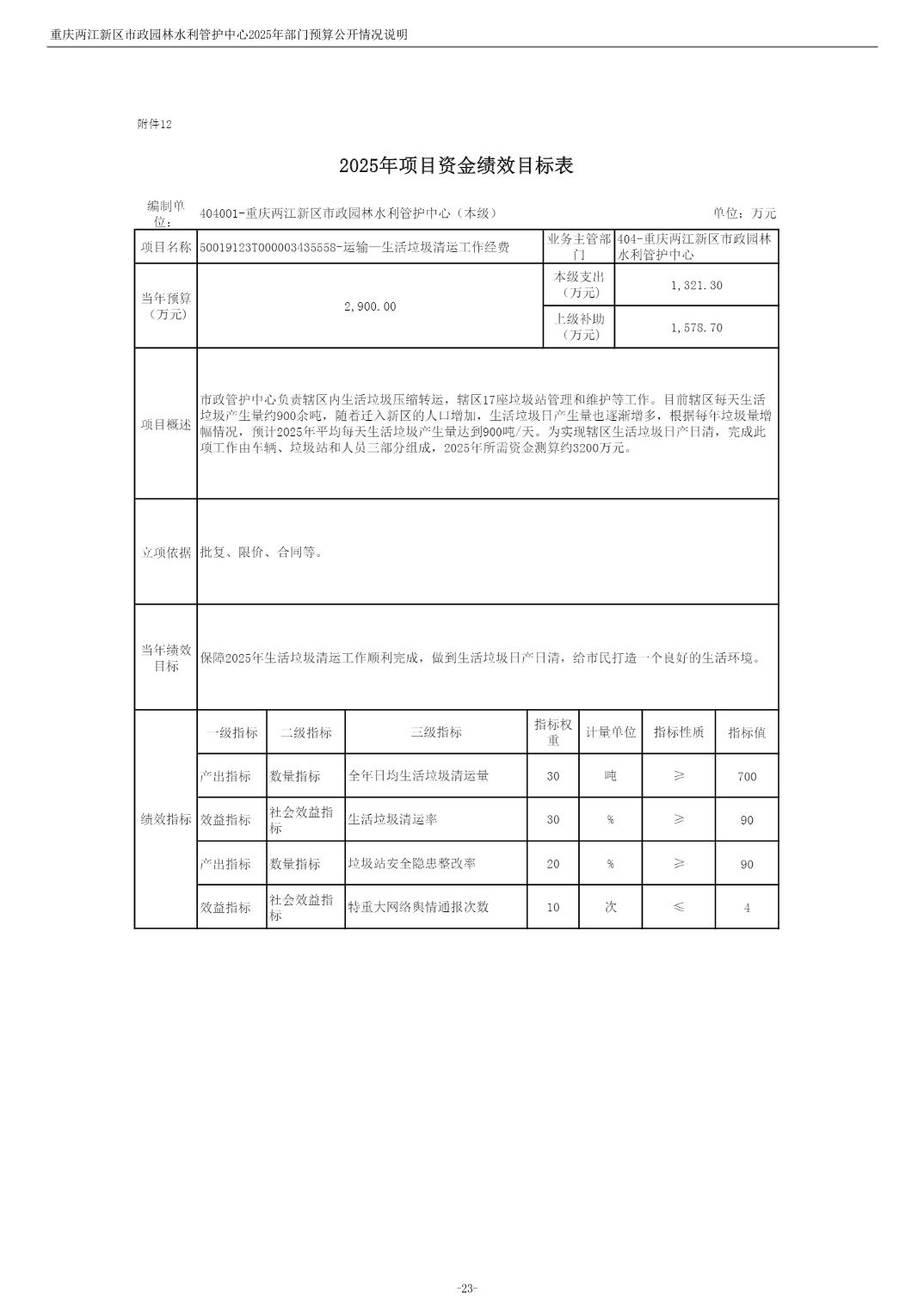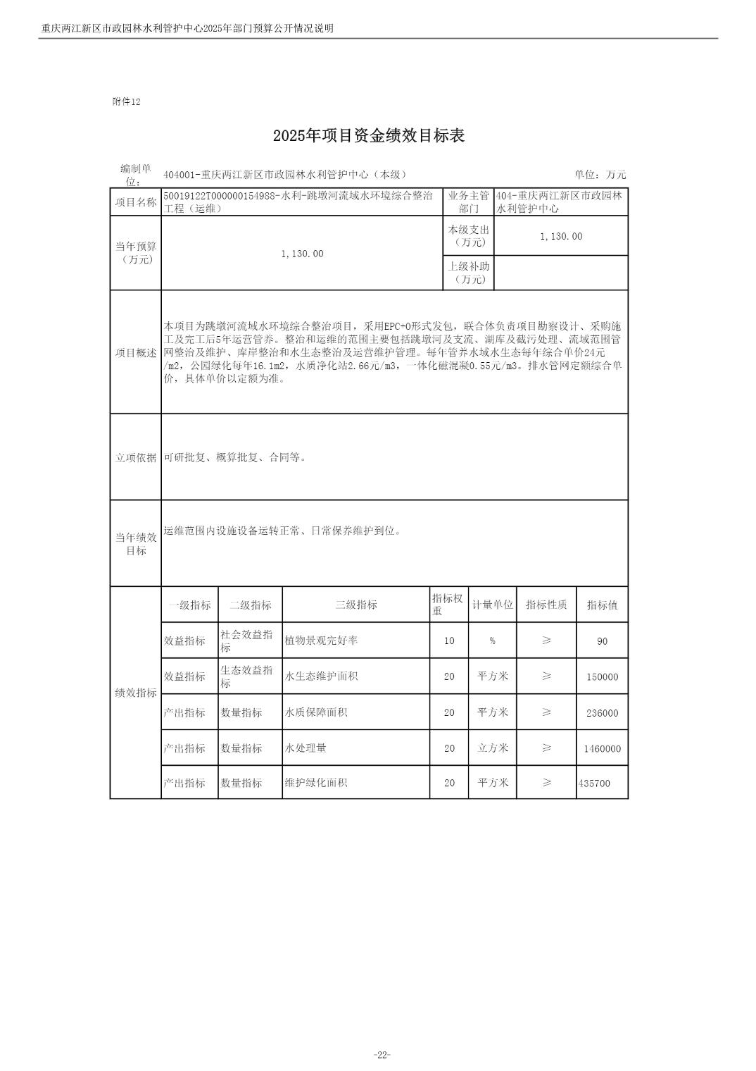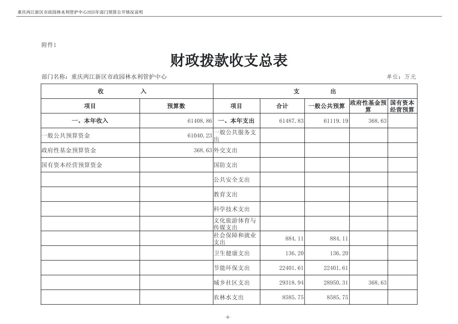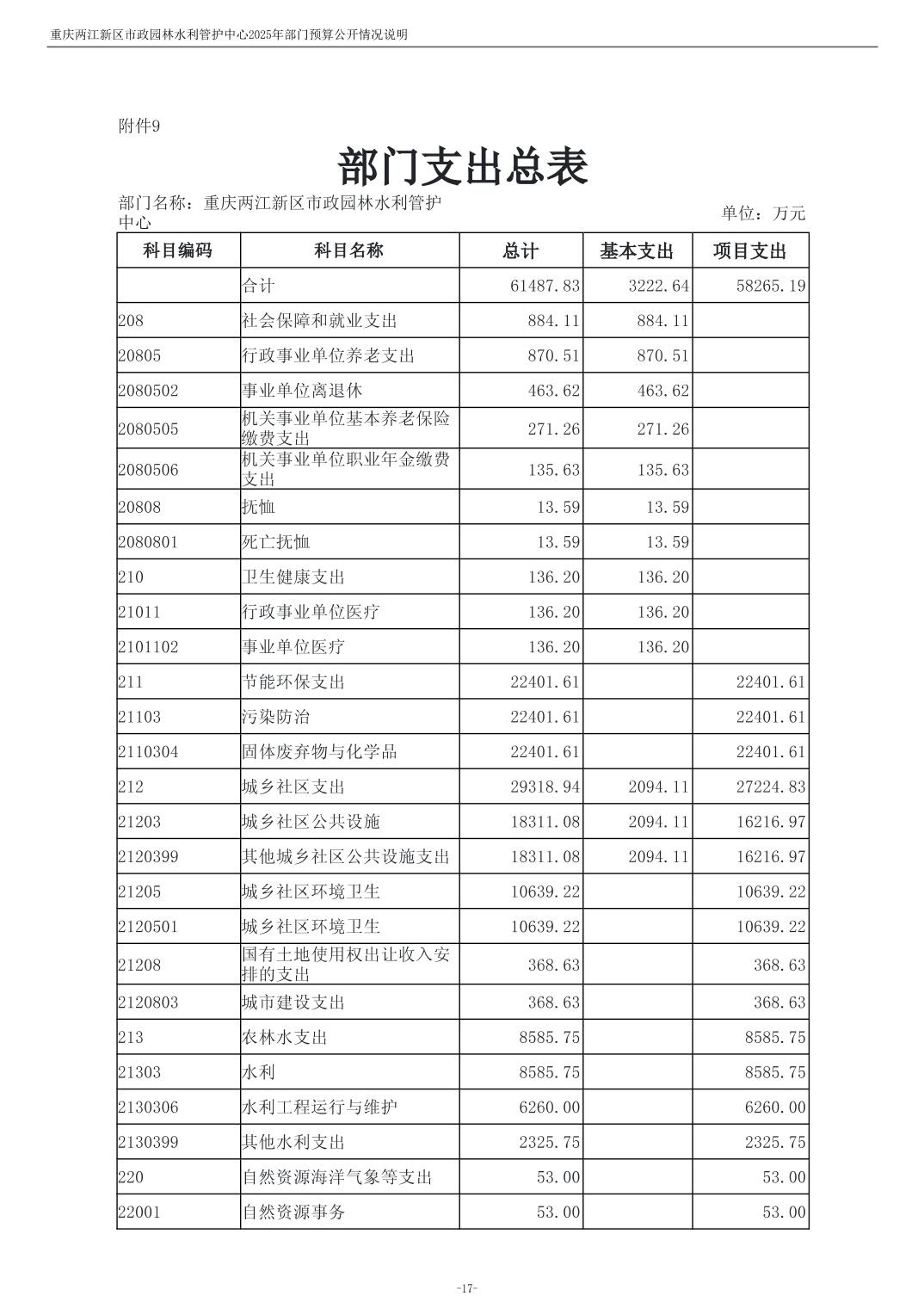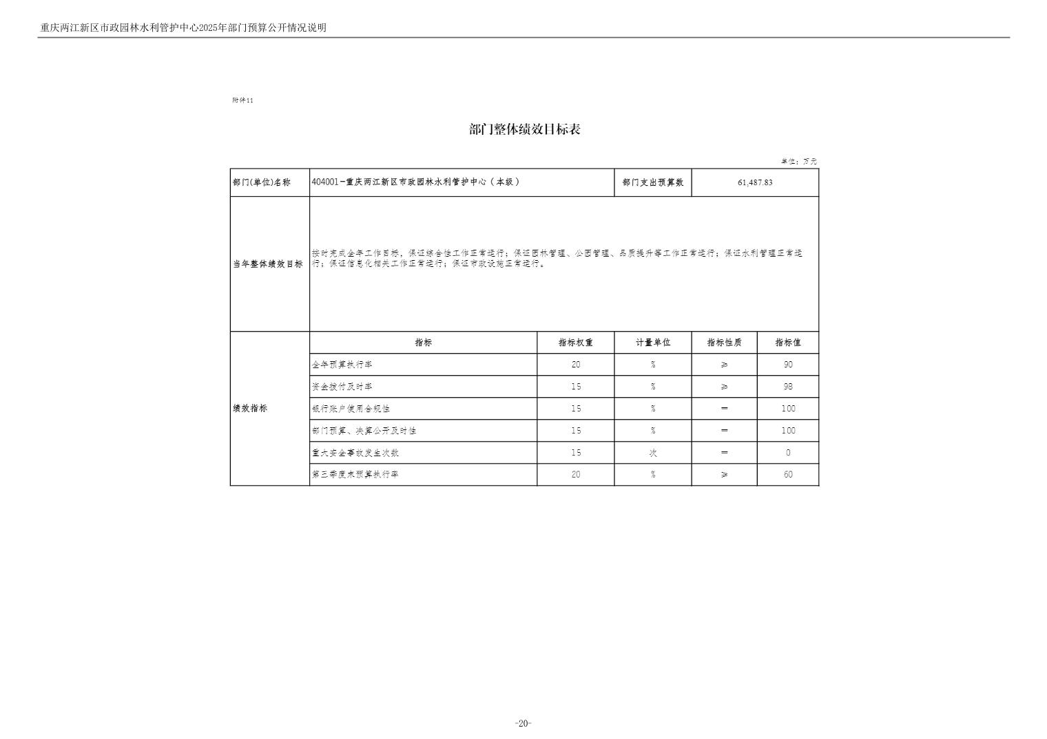 重庆两江新区市政园林水利管护中心2025年单位预算情况说明
