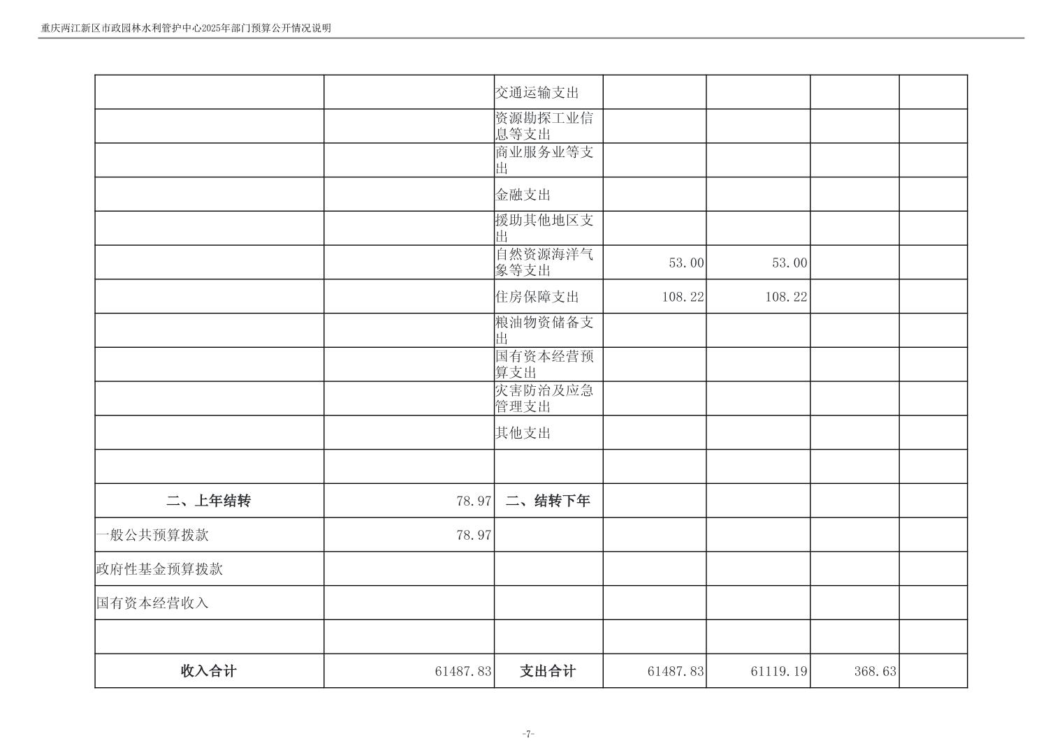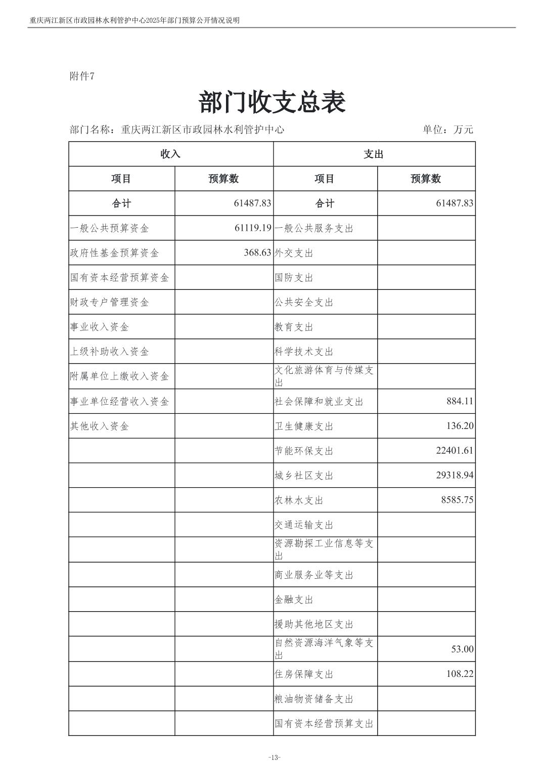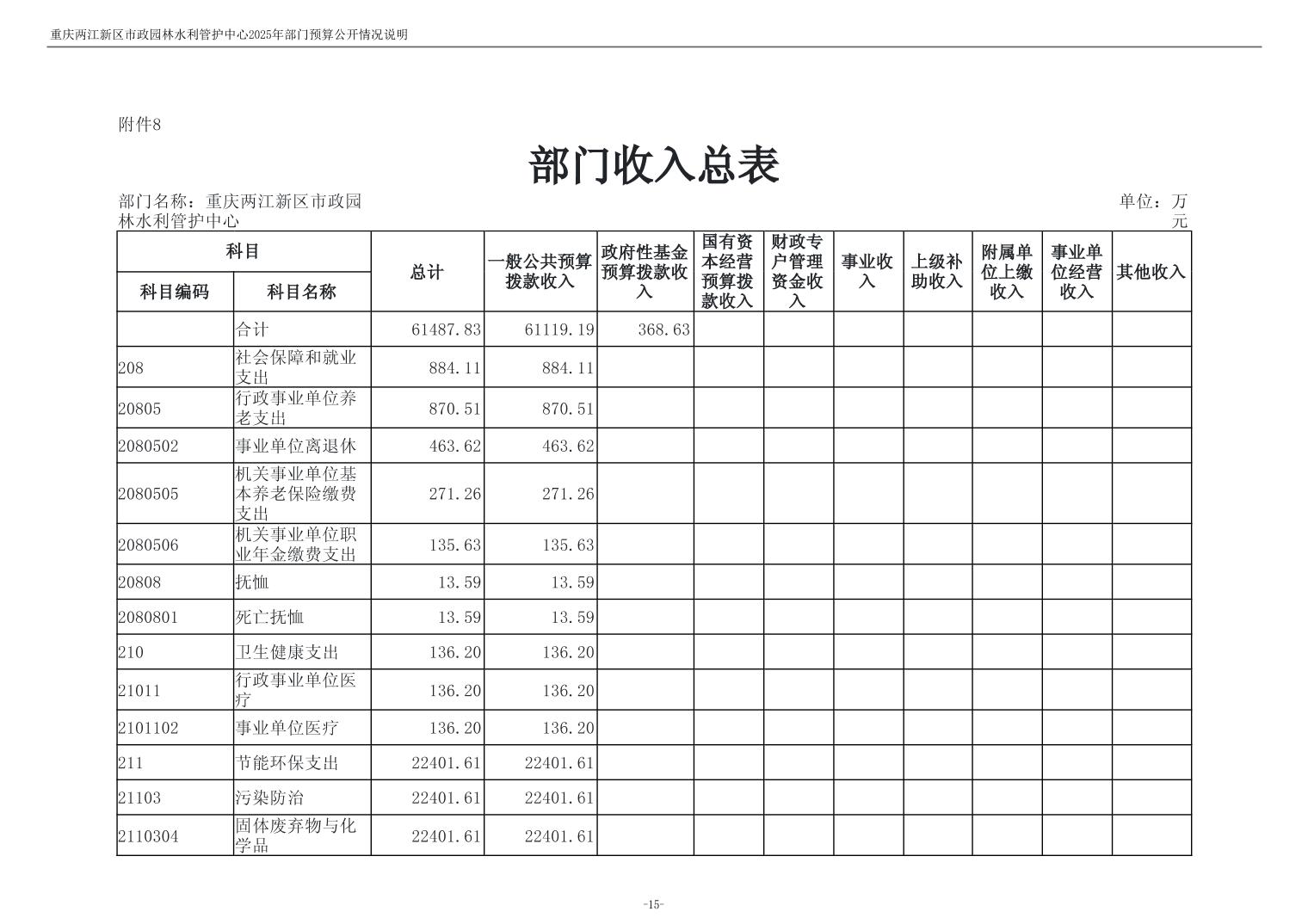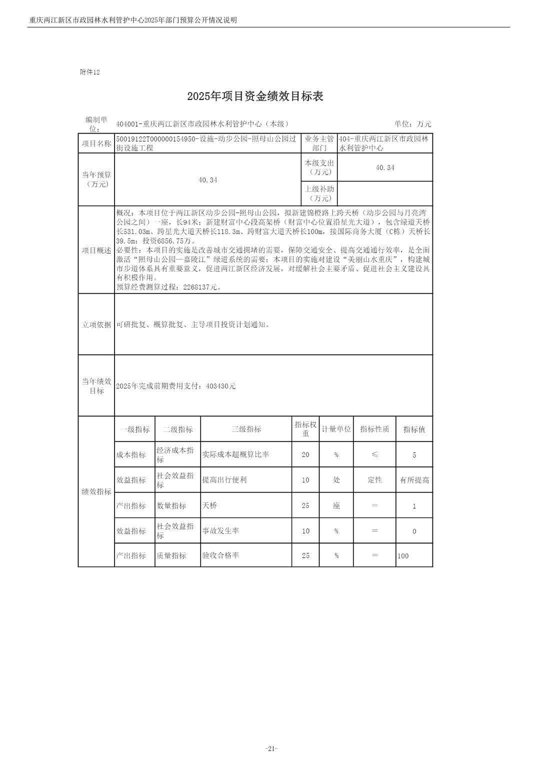 重庆两江新区市政园林水利管护中心2025年单位预算情况说明