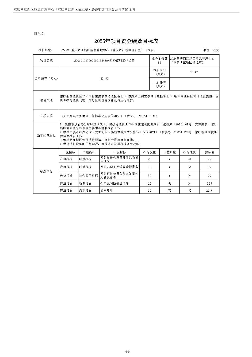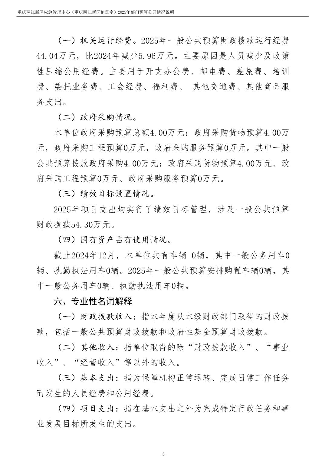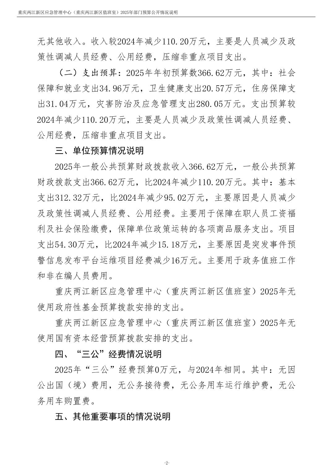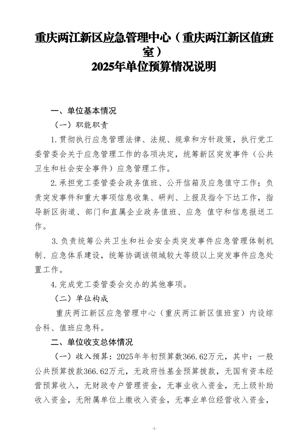 重庆两江新区应急管理中心(重庆两江新区值班室)2025年单位预算情况说明