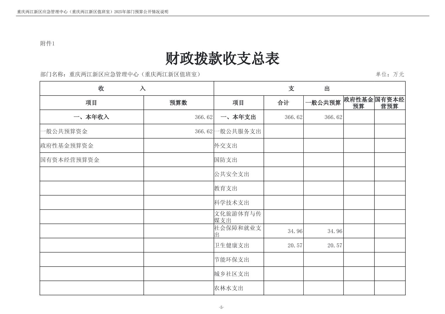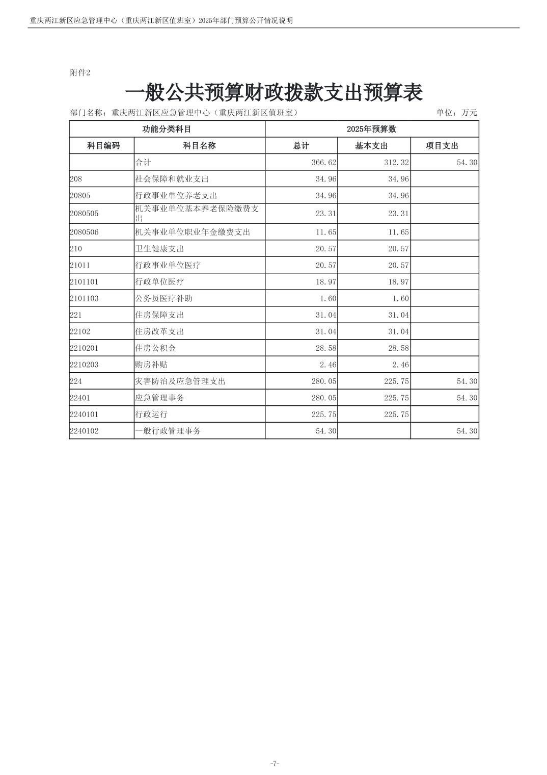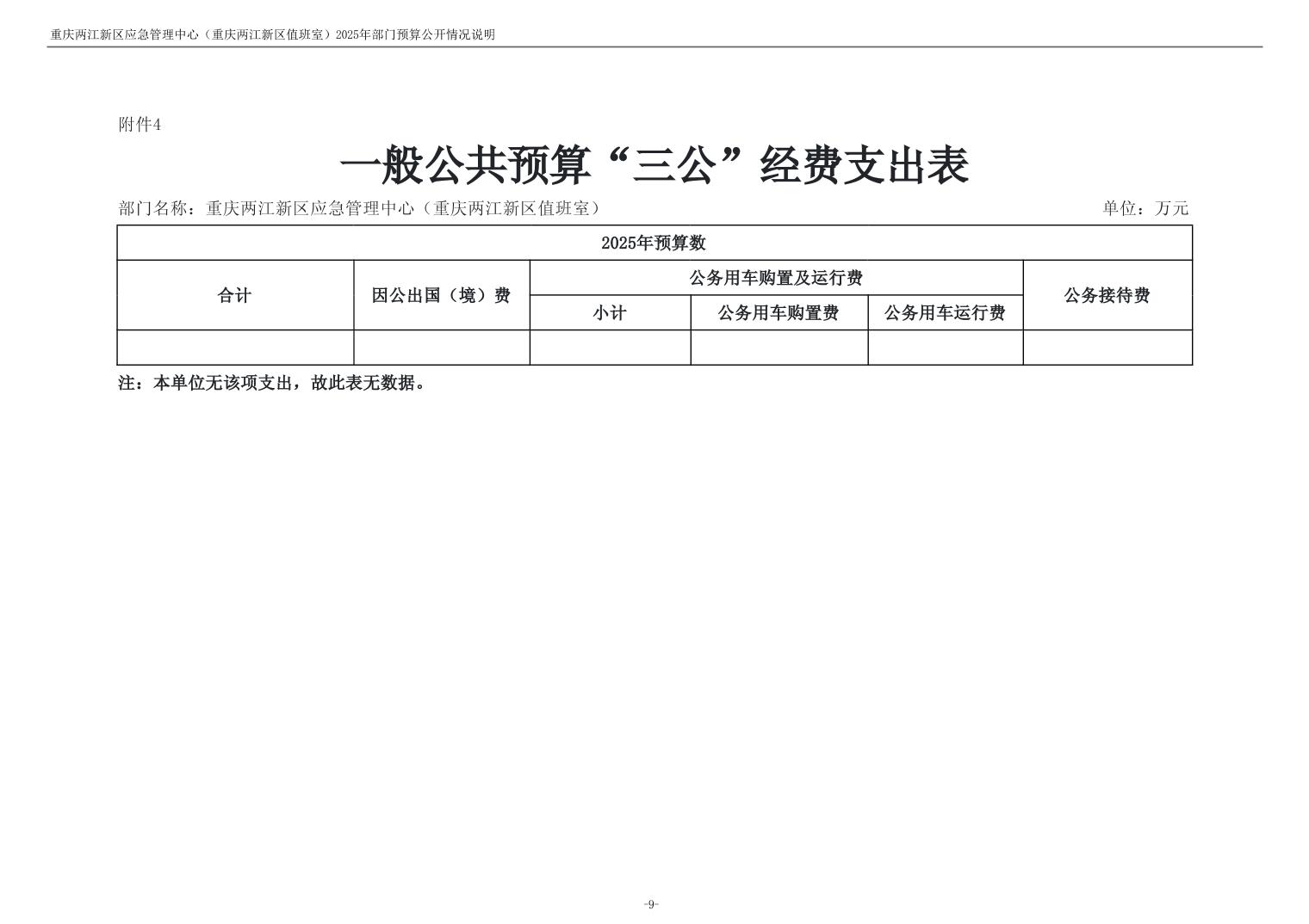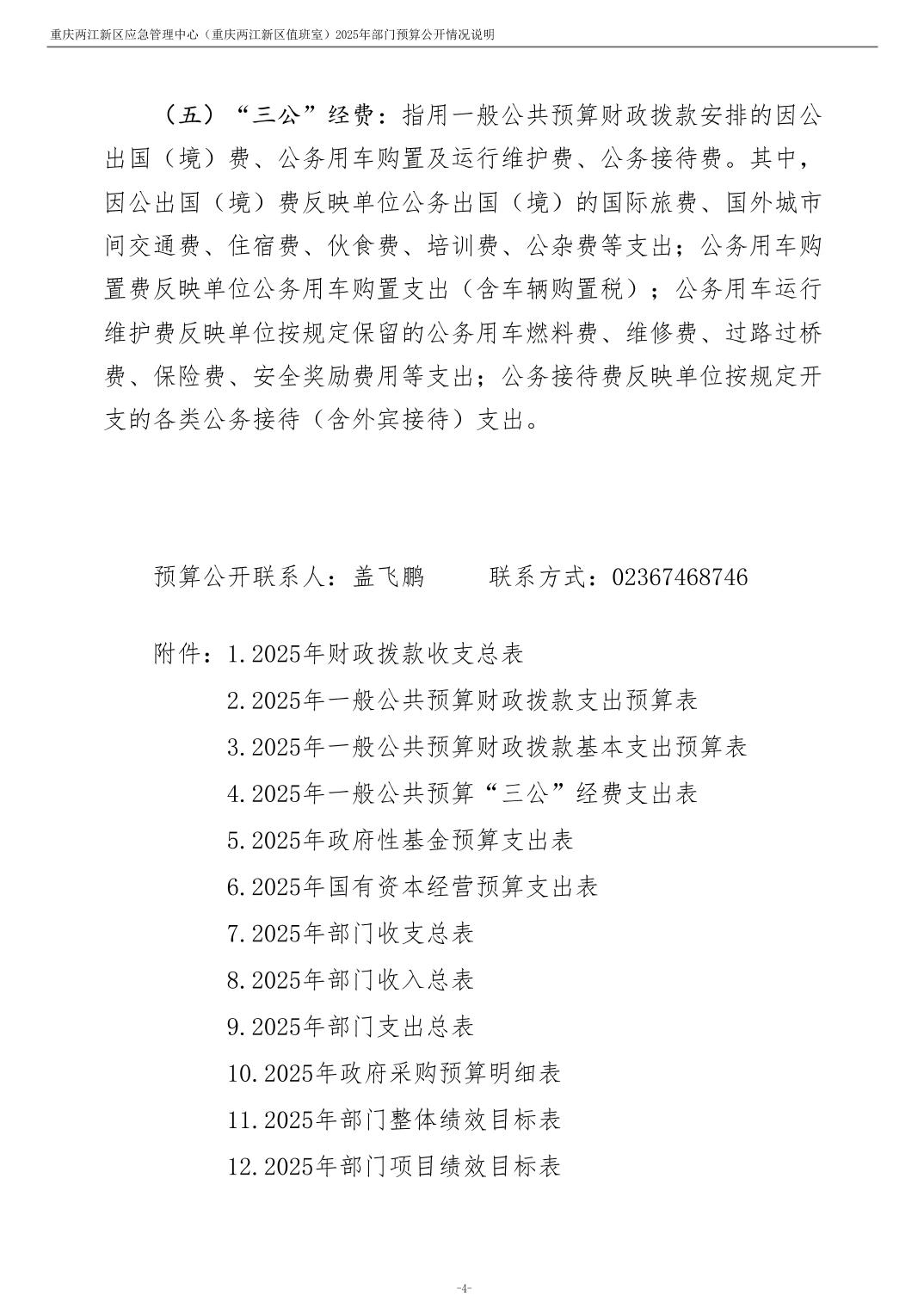 重庆两江新区应急管理中心(重庆两江新区值班室)2025年单位预算情况说明
